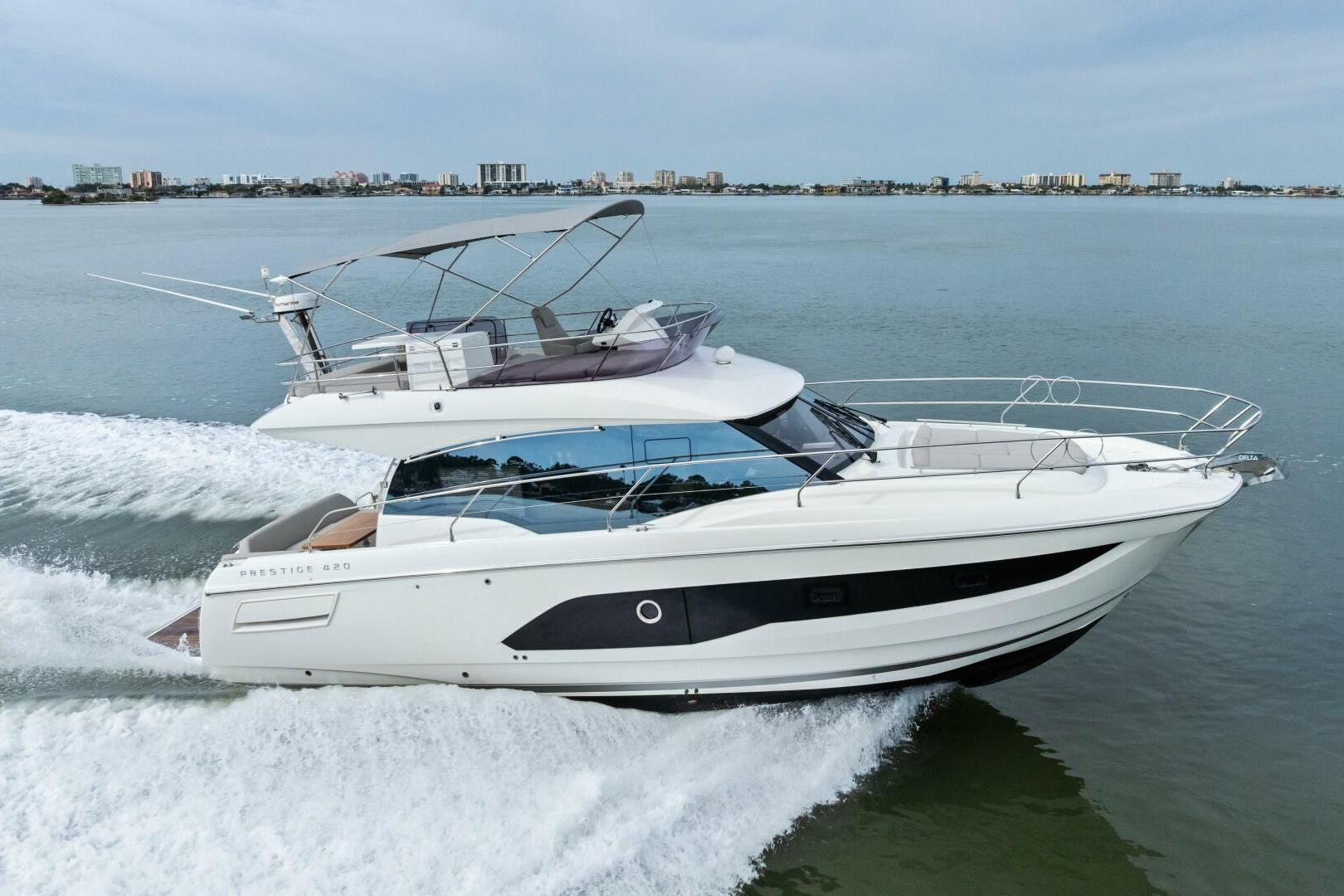 2022 Prestige 420 Fly For Sale – Starlink, Hydraulic Platform, Extended Warranties Through 2029