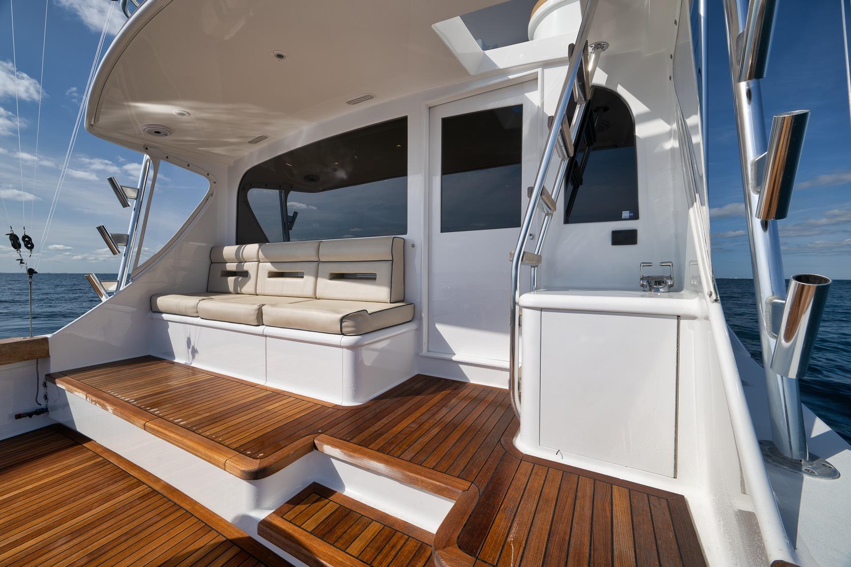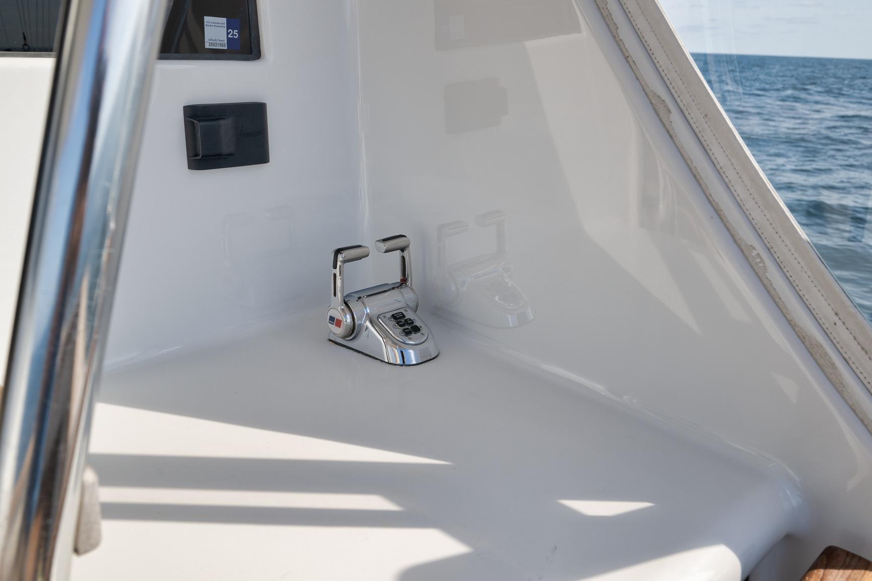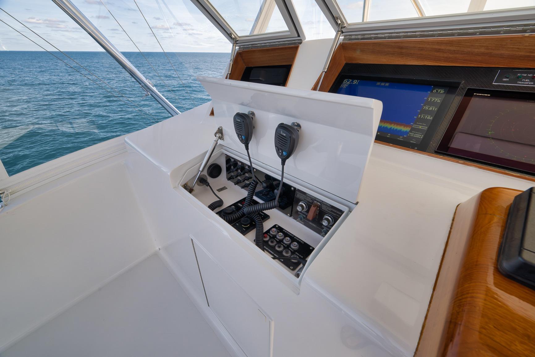 - Teak helm pod with single lever controls- MTU backup controls, Brow locker