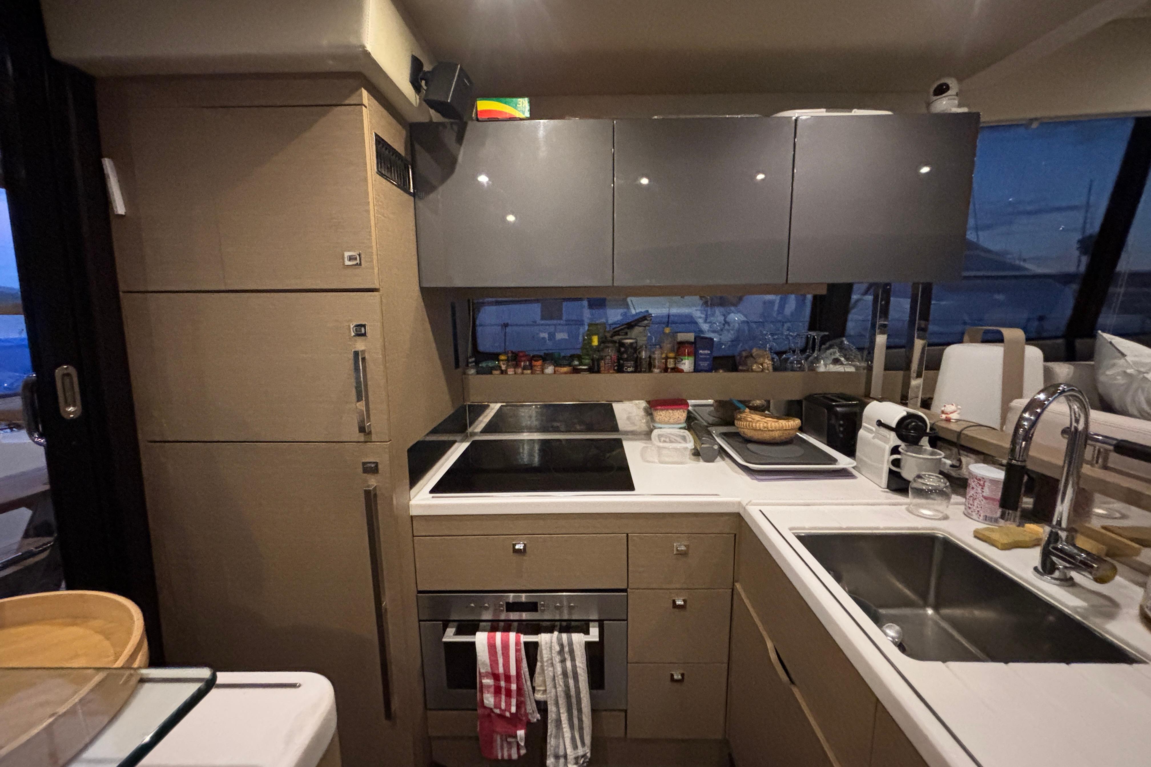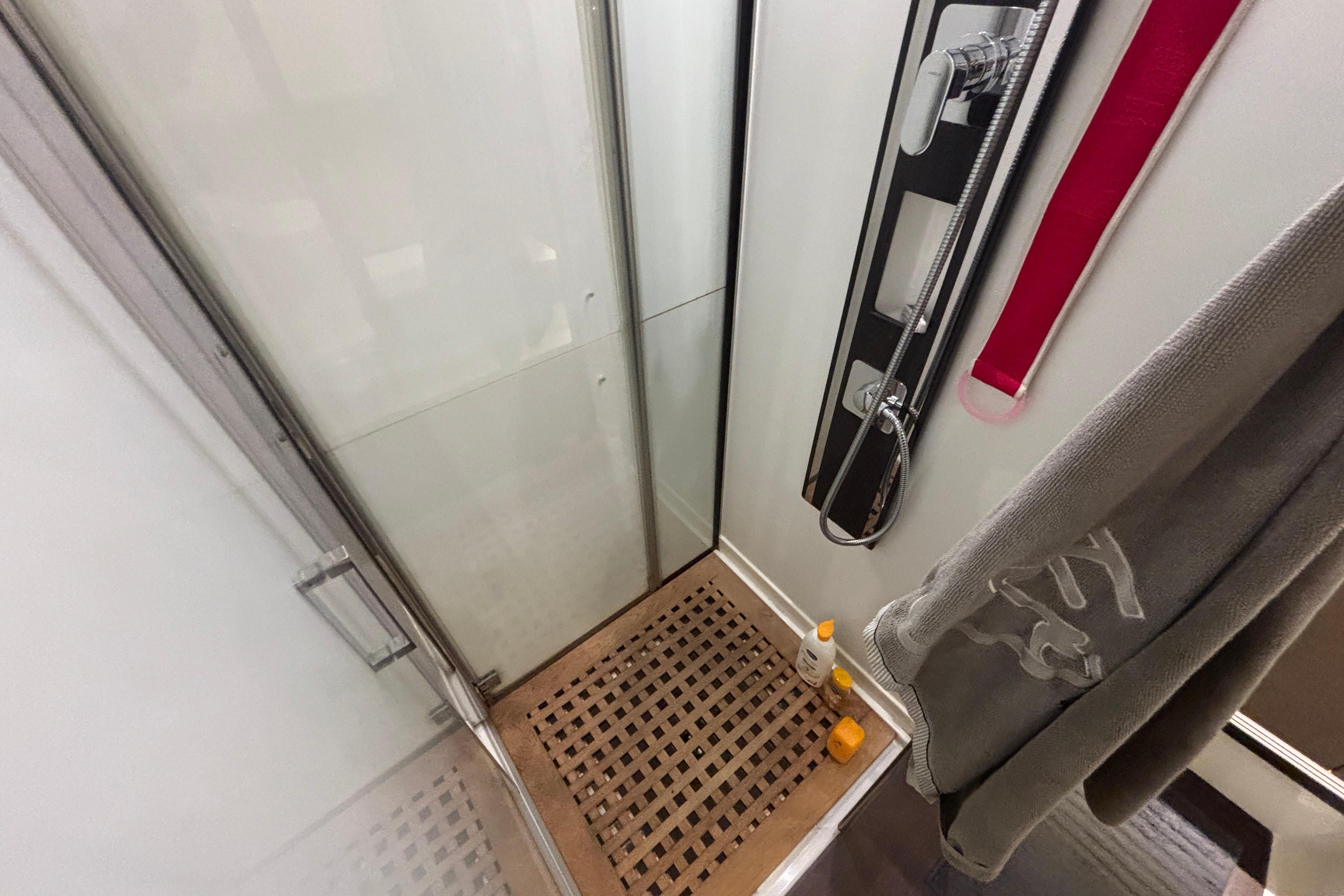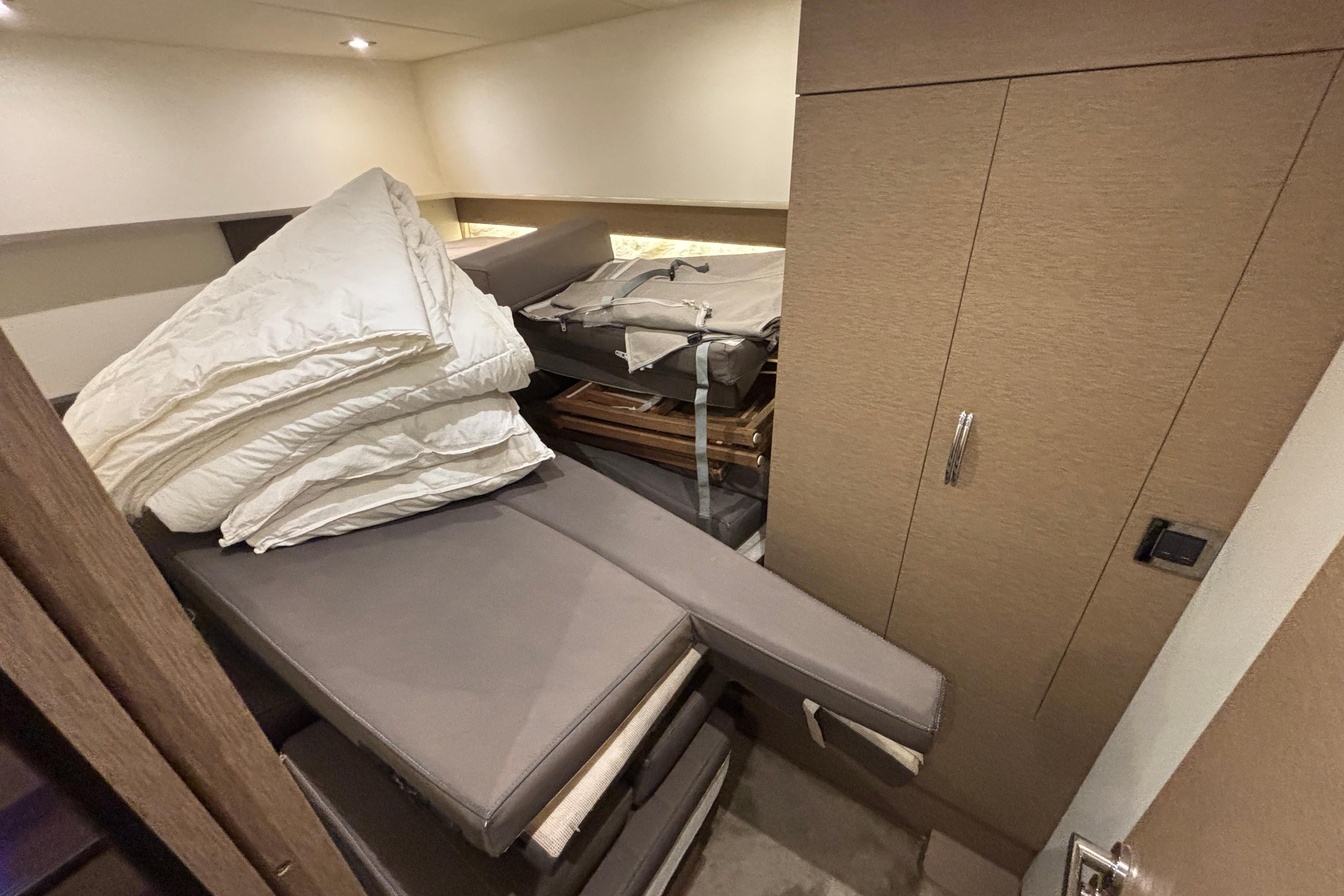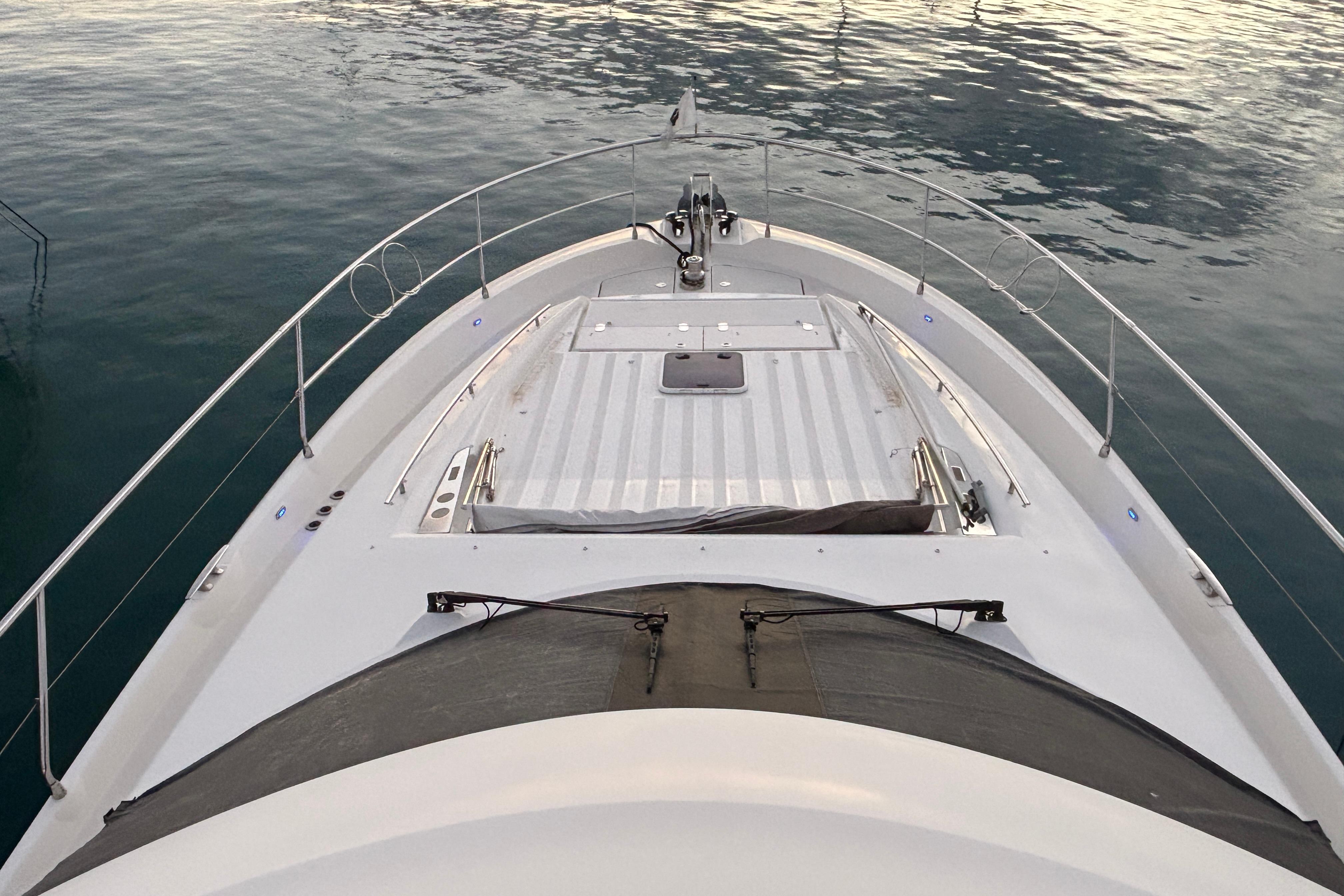The PRESTIGE 560 features the original shape of the PRESTIGE 550, yet offers additional advantages. Her swim platform is elongated and affords the same easy access developed for the Yachts range, with an automatically deploying staircase. Her interior has been modified, as well. Luxurious and bright, the layout of the PRESTIGE 560 offers even greater comfort and more clever design features. The PRESTIGE 560 is equipped with 2 Cummins Zeus pods with integrated flaps. She will also be available in Sportfly version.