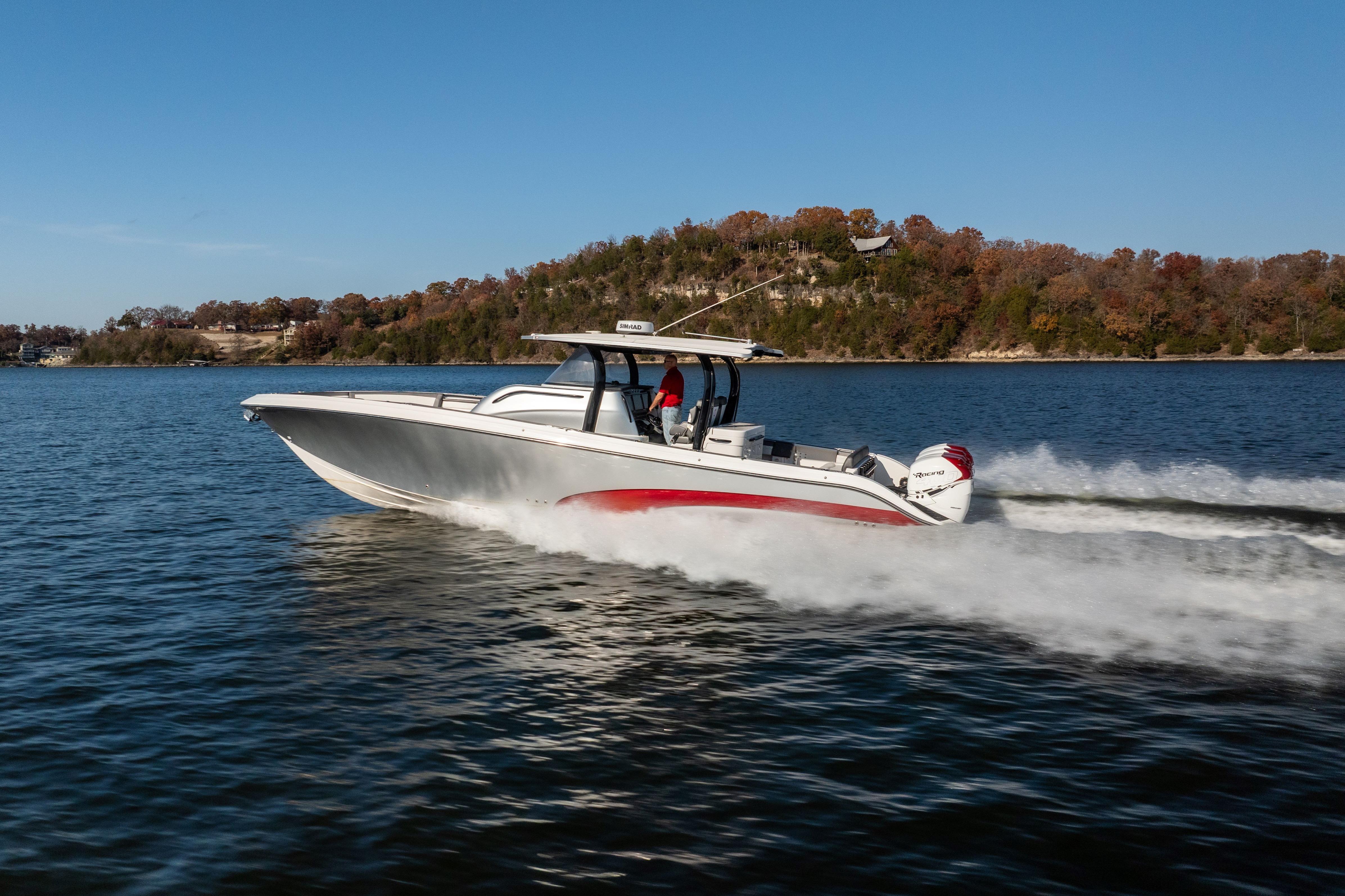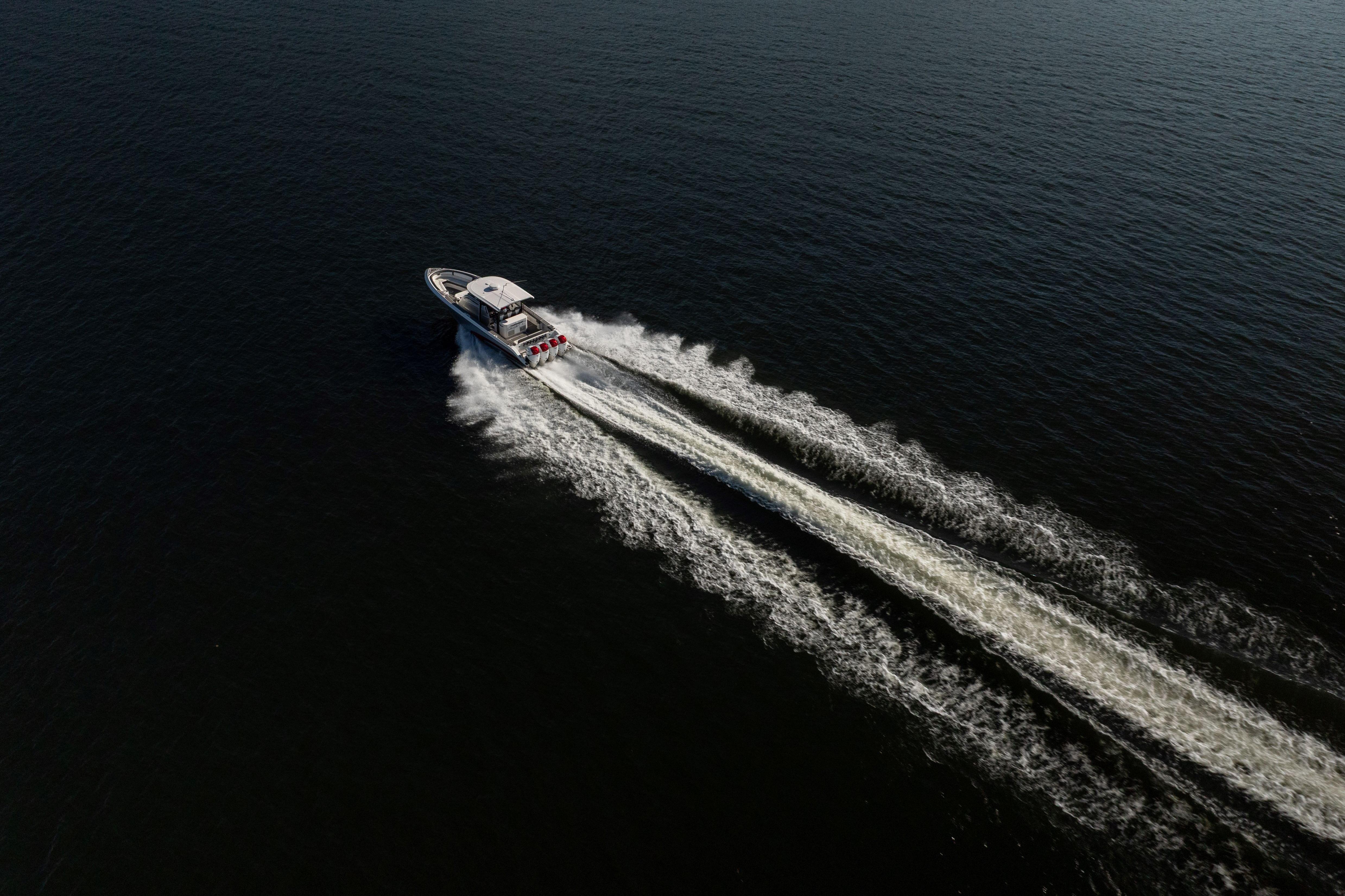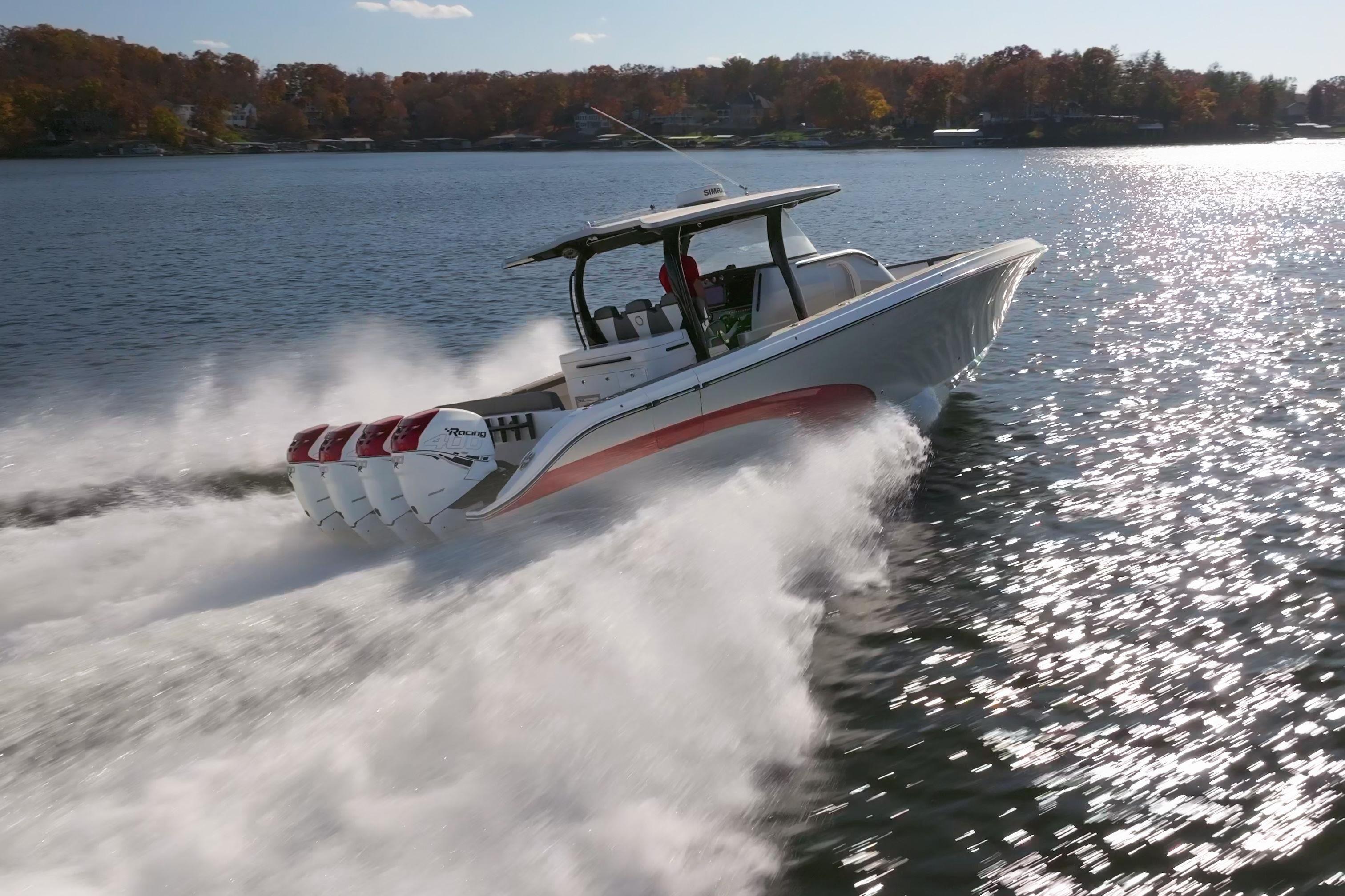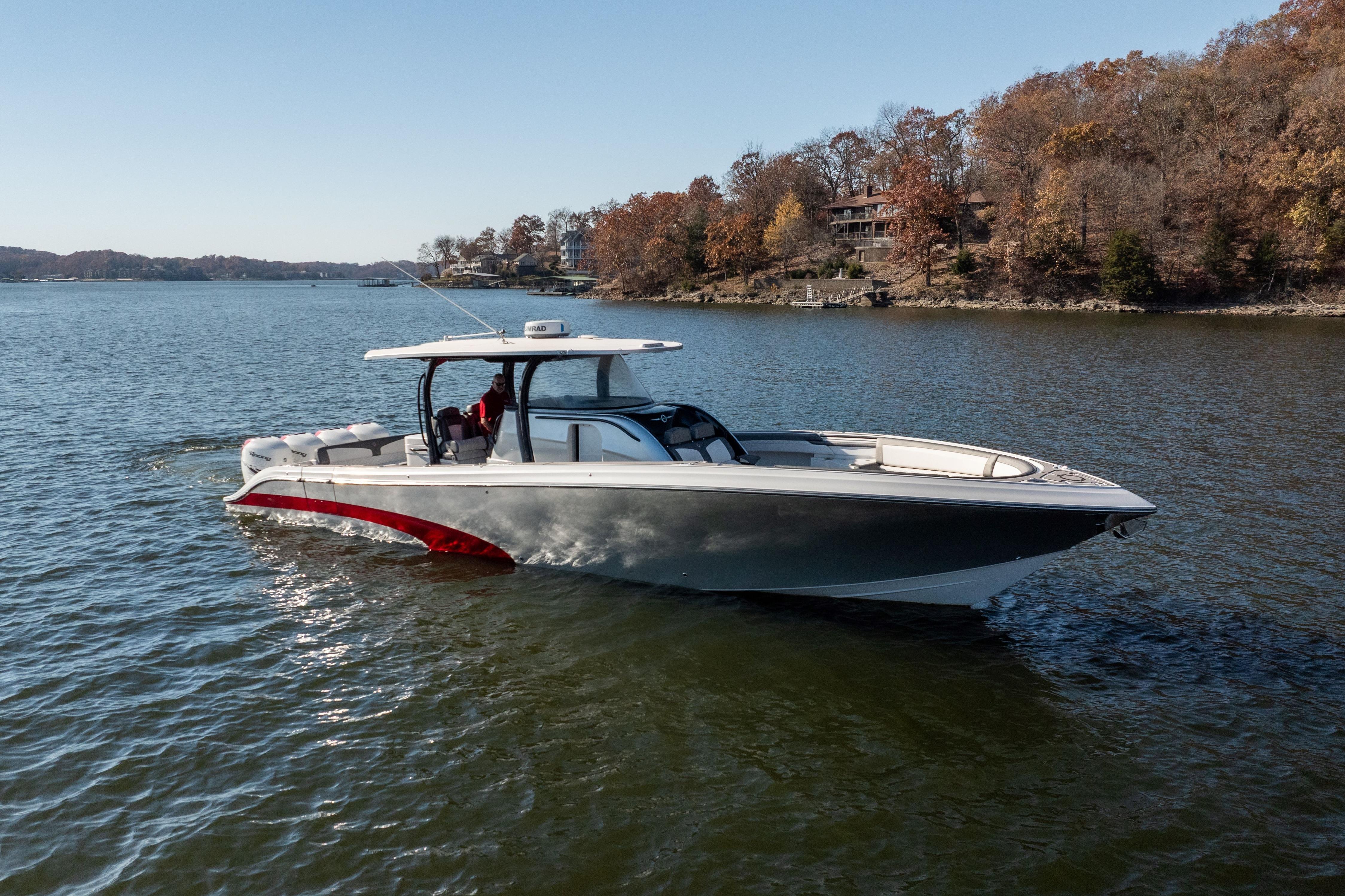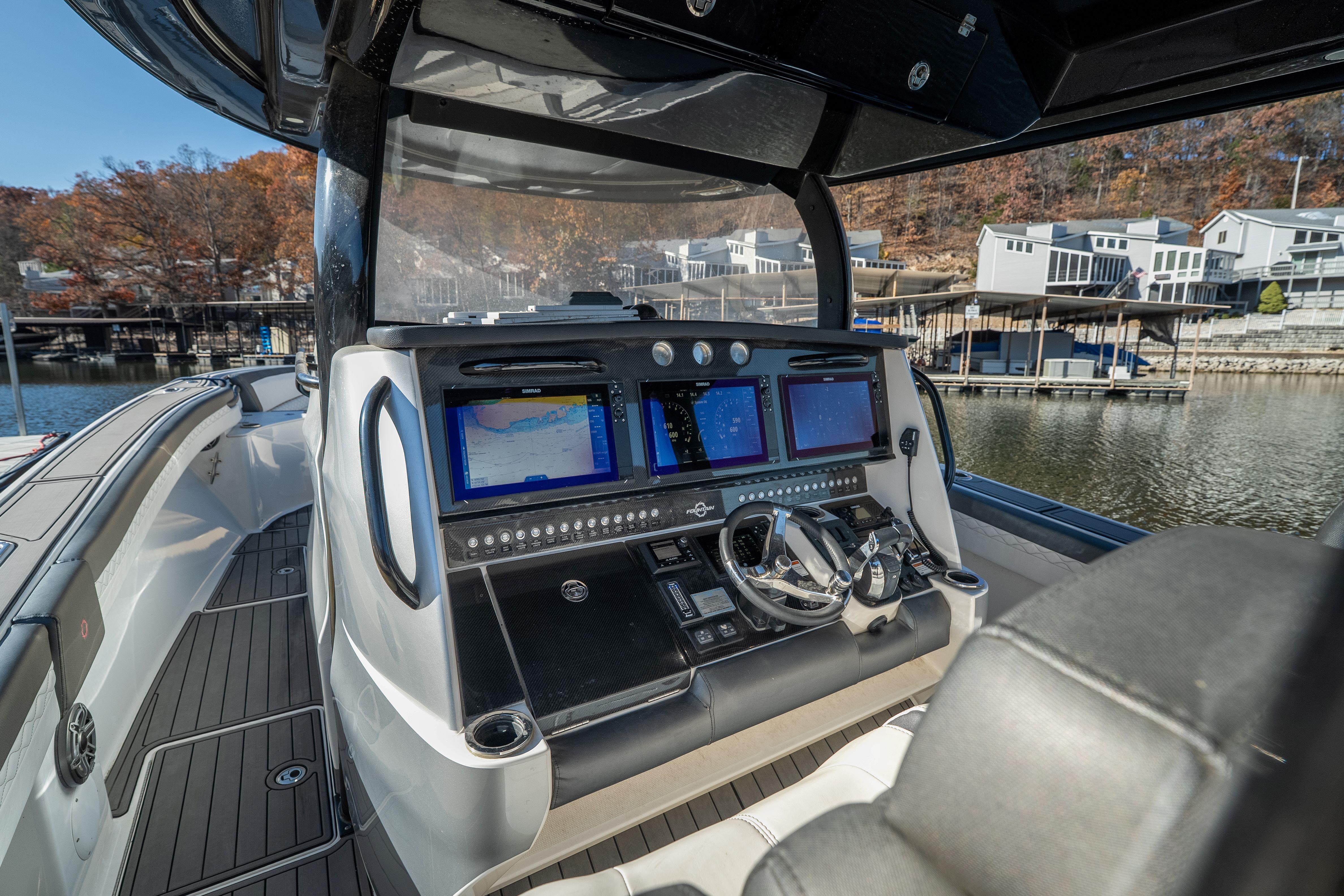 The Fountain 43 NX delivers unmatched offshore performance, luxury comfort, and premium craftsmanship in a center console built for long-range adventure. Powered by quad Mercury Verado 400Rs, this boat combines speed, efficiency, and exceptional handling with a layout designed for both entertaining and serious capability on the water. This vessel is heavily equipped with upgraded electronics, premium JL Audio, extensive custom features, and a fully appointed cabin — making it one of the most desirable 43 NX builds available.