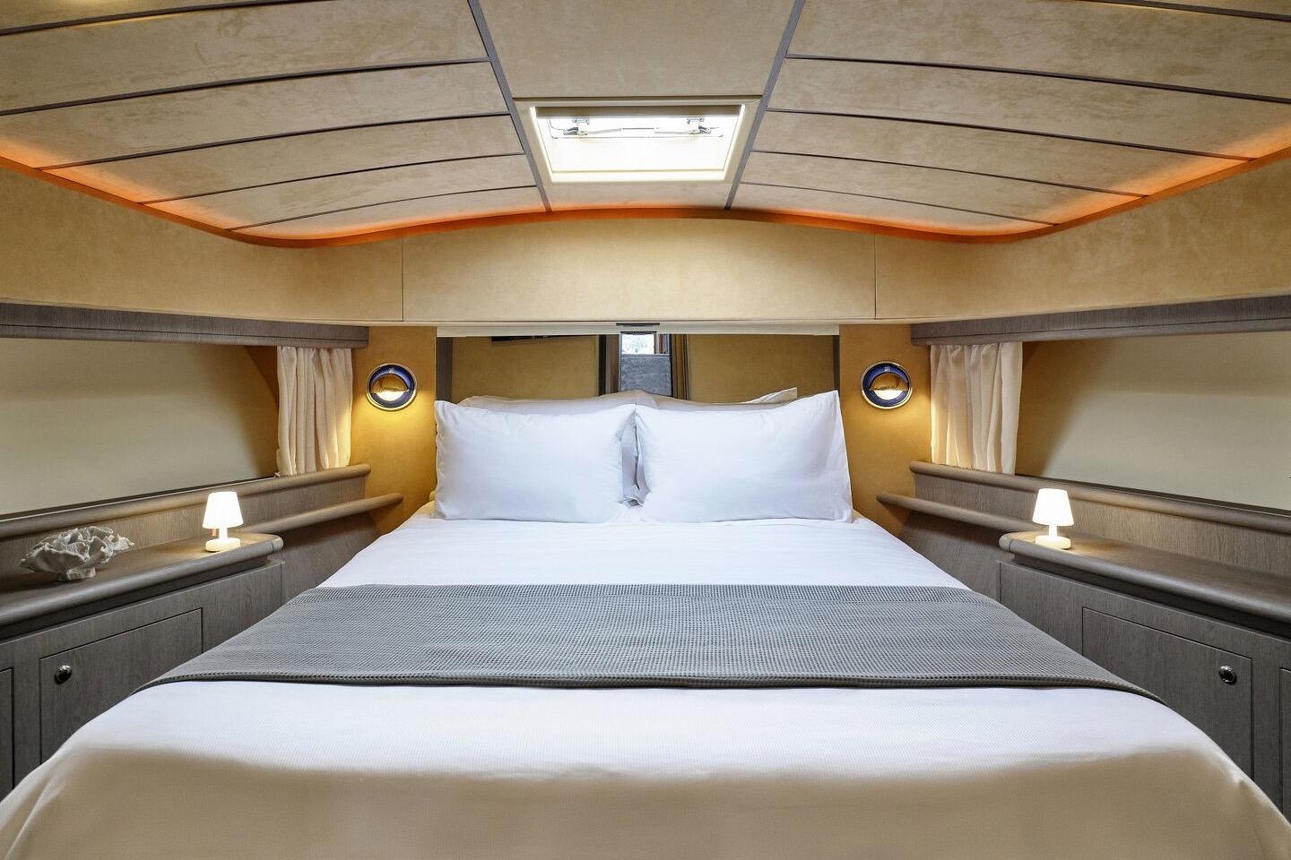 MiRen offers the classic Ferretti 68 four-cabin layout with generous volume, bright interiors, and a full soft-goods renewal completed in 2022.