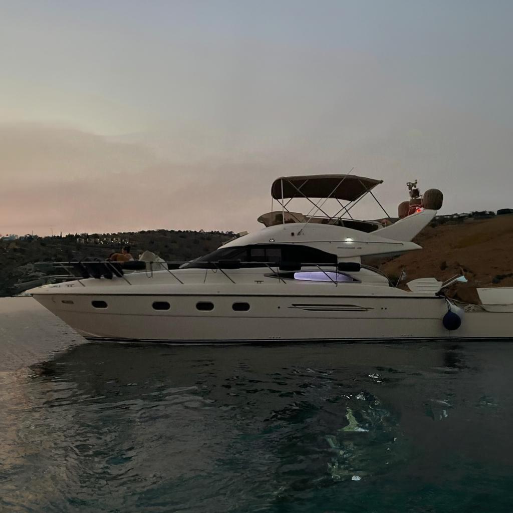 Princess 45 Flybridge for Sale – REF1744 - Offered by Alvea Yachts, this Princess 45 Flybridge (2003) is an exceptional example of meticulous ownership and outstanding maintenance. Powered by Volvo Penta TAMD75 – 2 × 480HP engines with only 815 operating hours, always serviced by authorised Volvo agents, she delivers reliable performance, excellent fuel efficiency and the renowned seaworthiness of the Princess brand. This yacht has undergone extensive upgrades and service works, keeping her condition far above average for her age. Major works include general engine service in 2021 with turbo replacement, water-maker service (2021), generator extensive service (2022), serviced shafts and propellers (2022), anti-osmosis treatment (2022), new windlass (2024) and many other important maintenance items. She features an extensive equipment list, including new navigational LED lights, inox roll-bar, new beamer (2021), washing/dryer machine with WiFi/BT (2021), new cockpit upholstery (2020), new cockpit fridge/freezer (2021), new touch cooking stoves, weather station with remote forecast (2021), new UHF & VHF antennas (2021), VHF & GPS in tender, alarm system with cameras in cockpit and saloon, alarm for motion of the boat, extra GPS for reefs with audio alarm, new anti-allergic and soundproof interior carpets, biological cleaning of mattresses and saloon, foredeck portable saloon with fridge/table and many other accessories and upgrades. She has been exceptionally preserved, having stayed in the water only four weeks per year, making her overall condition remarkable and rarely found in similar yachts. For more information or to arrange an inspection on this Princess 45 for sale, please contact Alvea Yachts, your trusted Greek yacht broker specialising in premium used motor yachts.