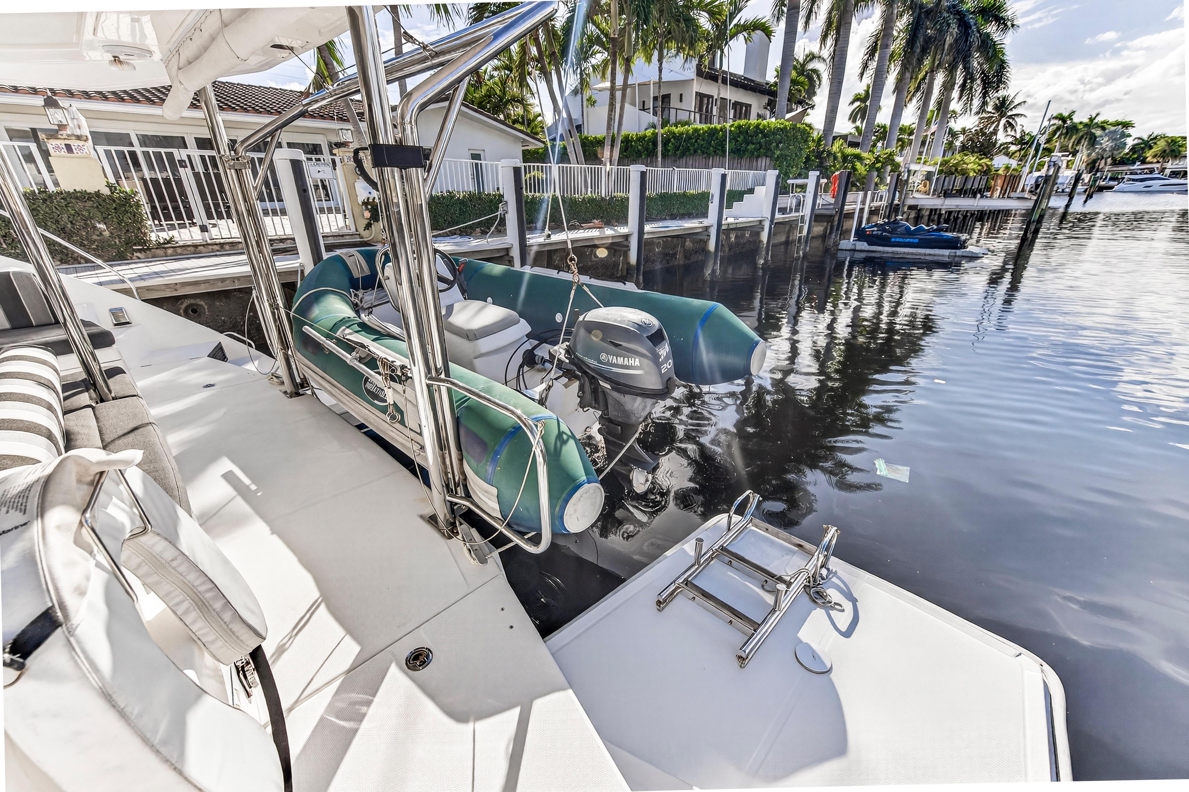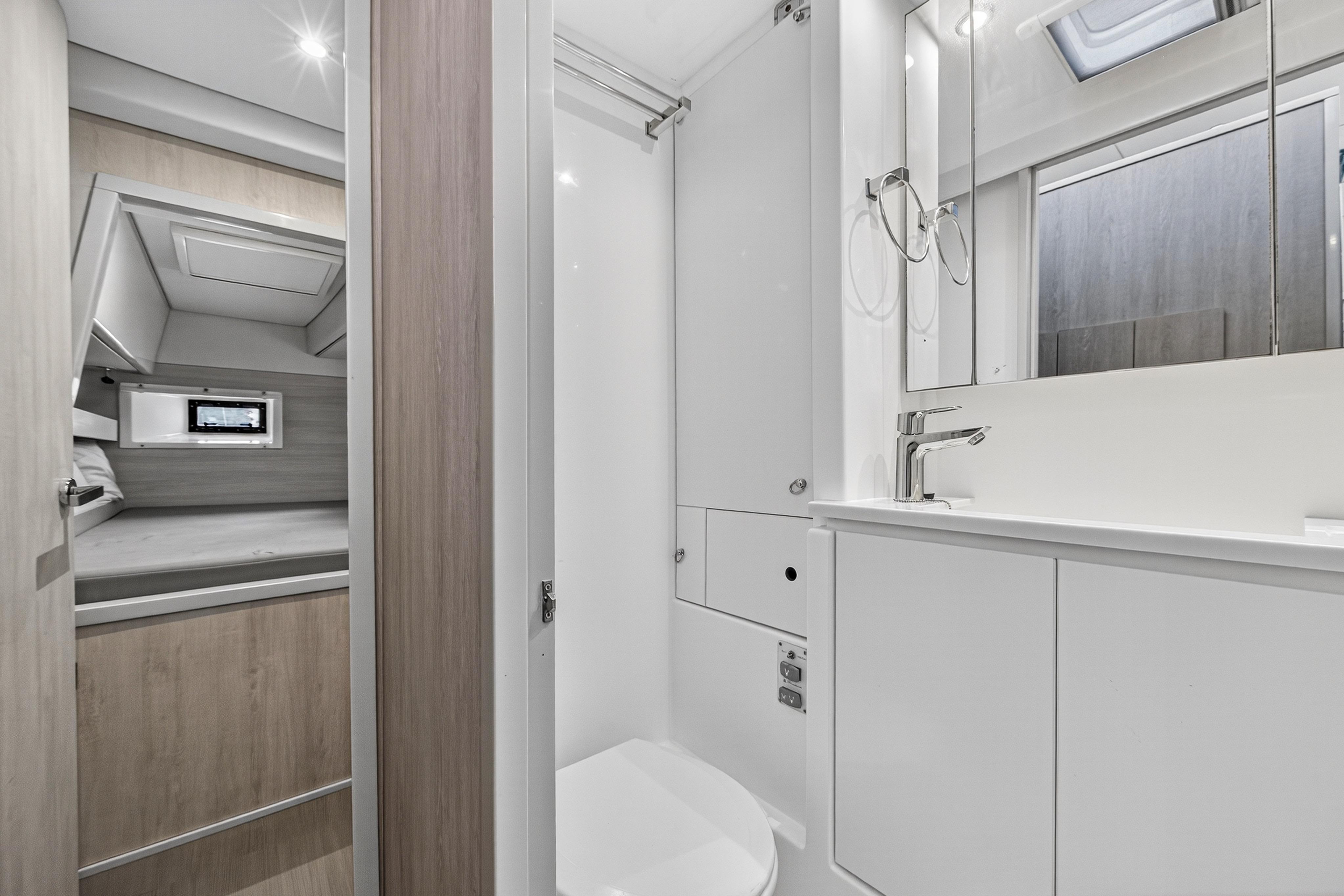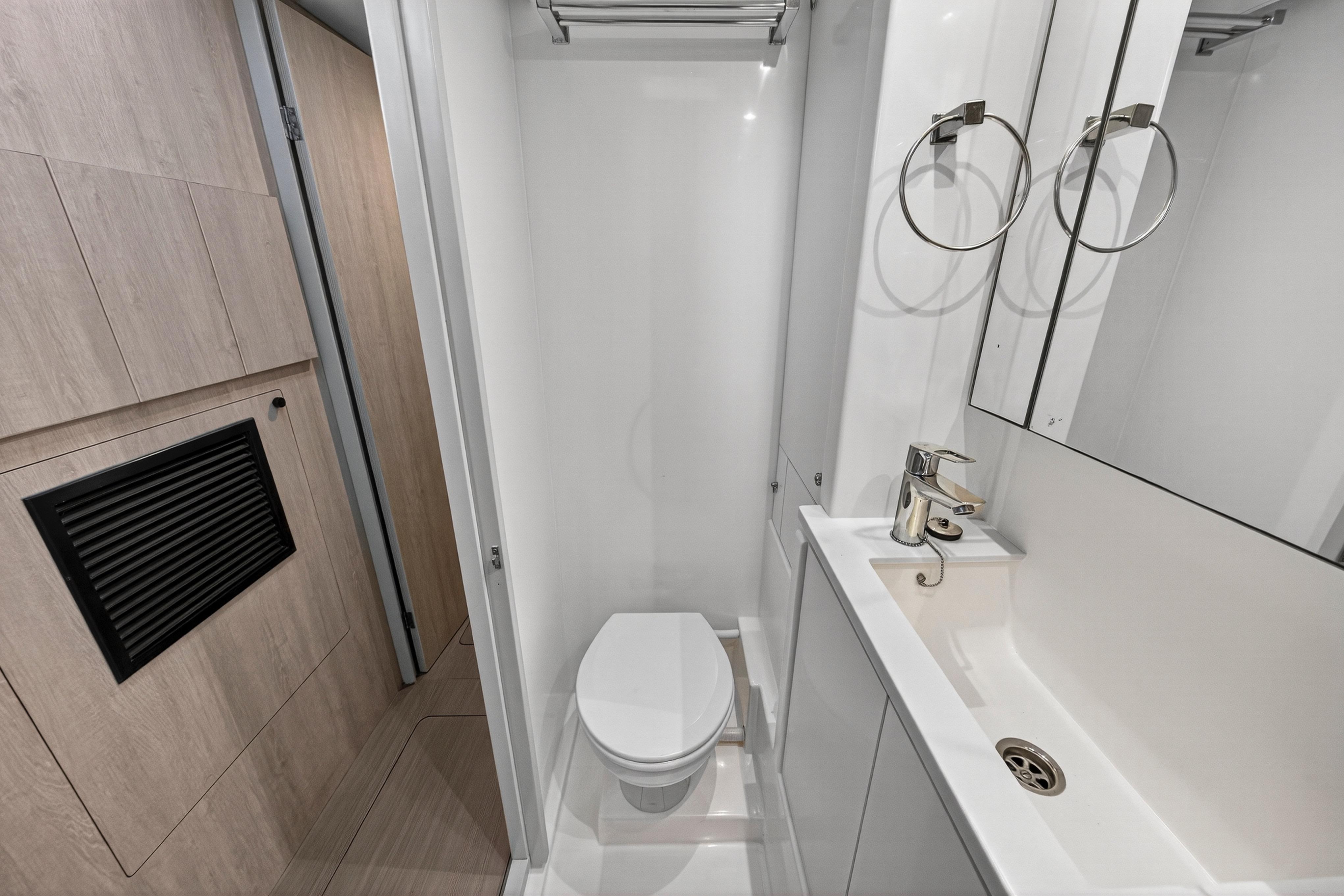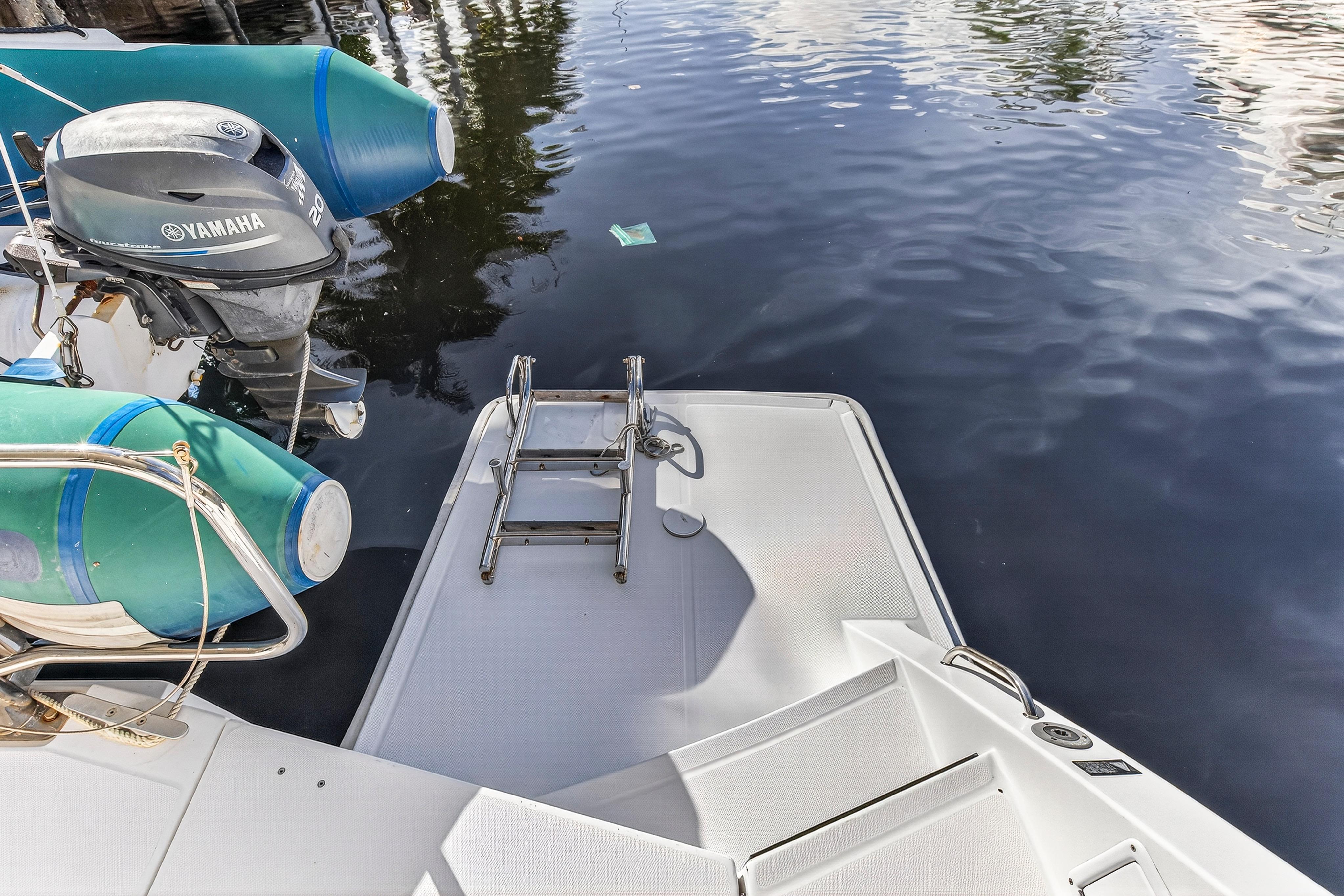 Custom fabricated steps from sunpad to front deck, 2nd lock on dinghy davits, x2 Red LED lights in salon with dedicated switch, Freshwater flush selectable heads, Freshwater Quick connect on Flrybridge