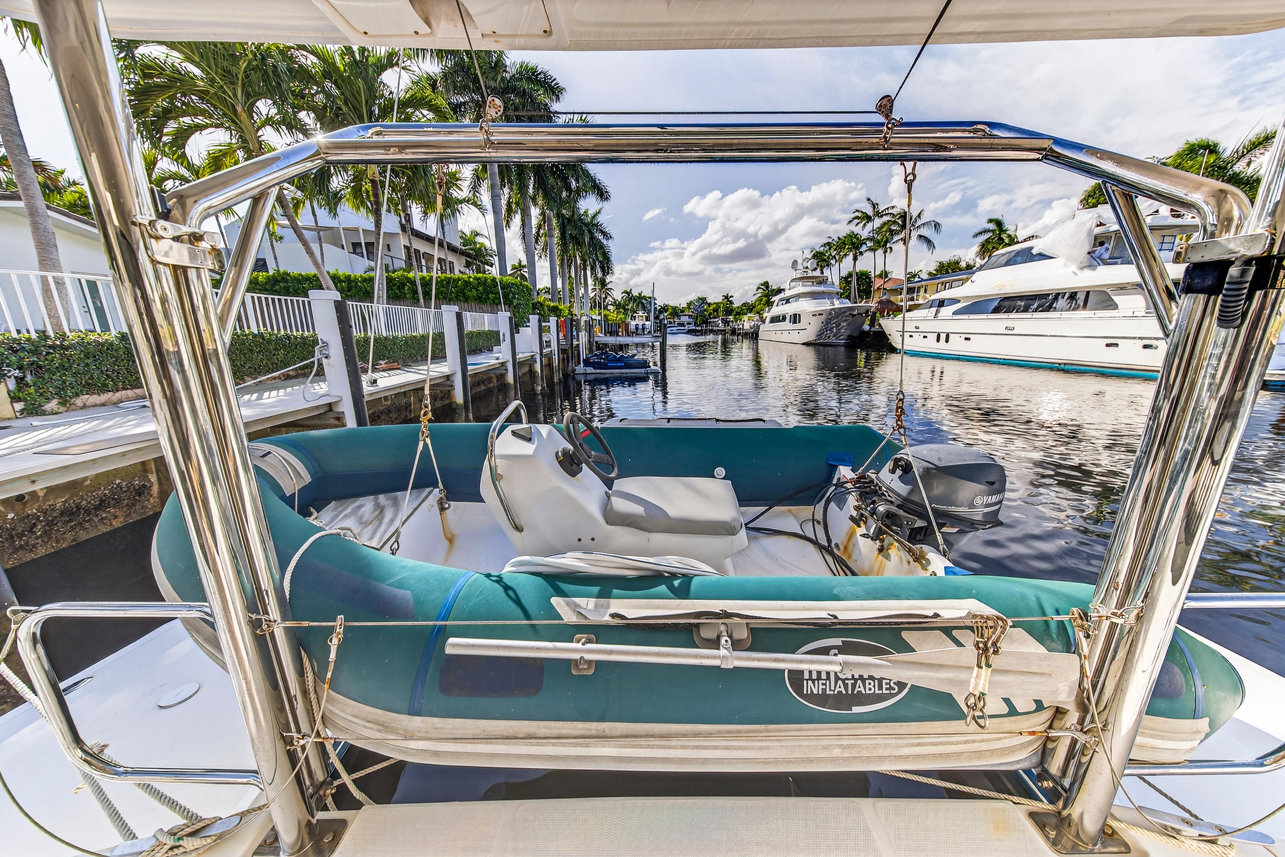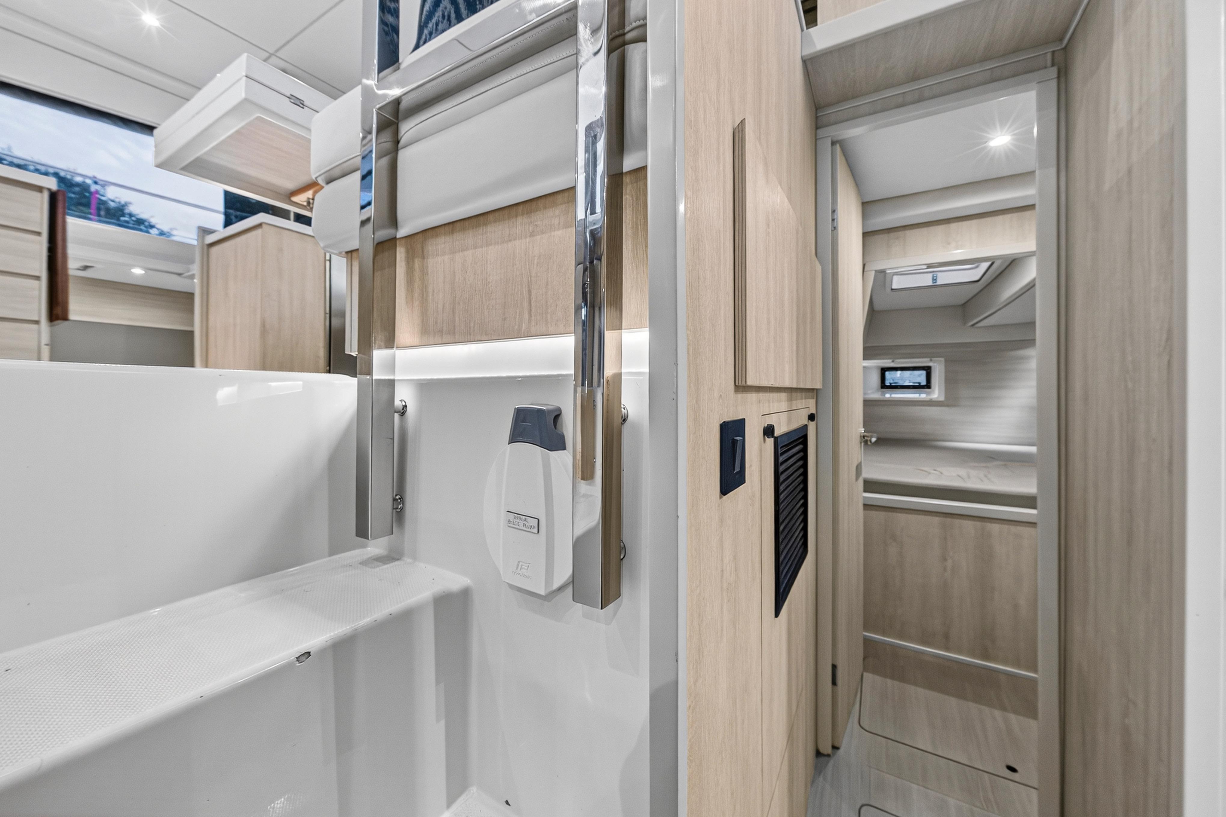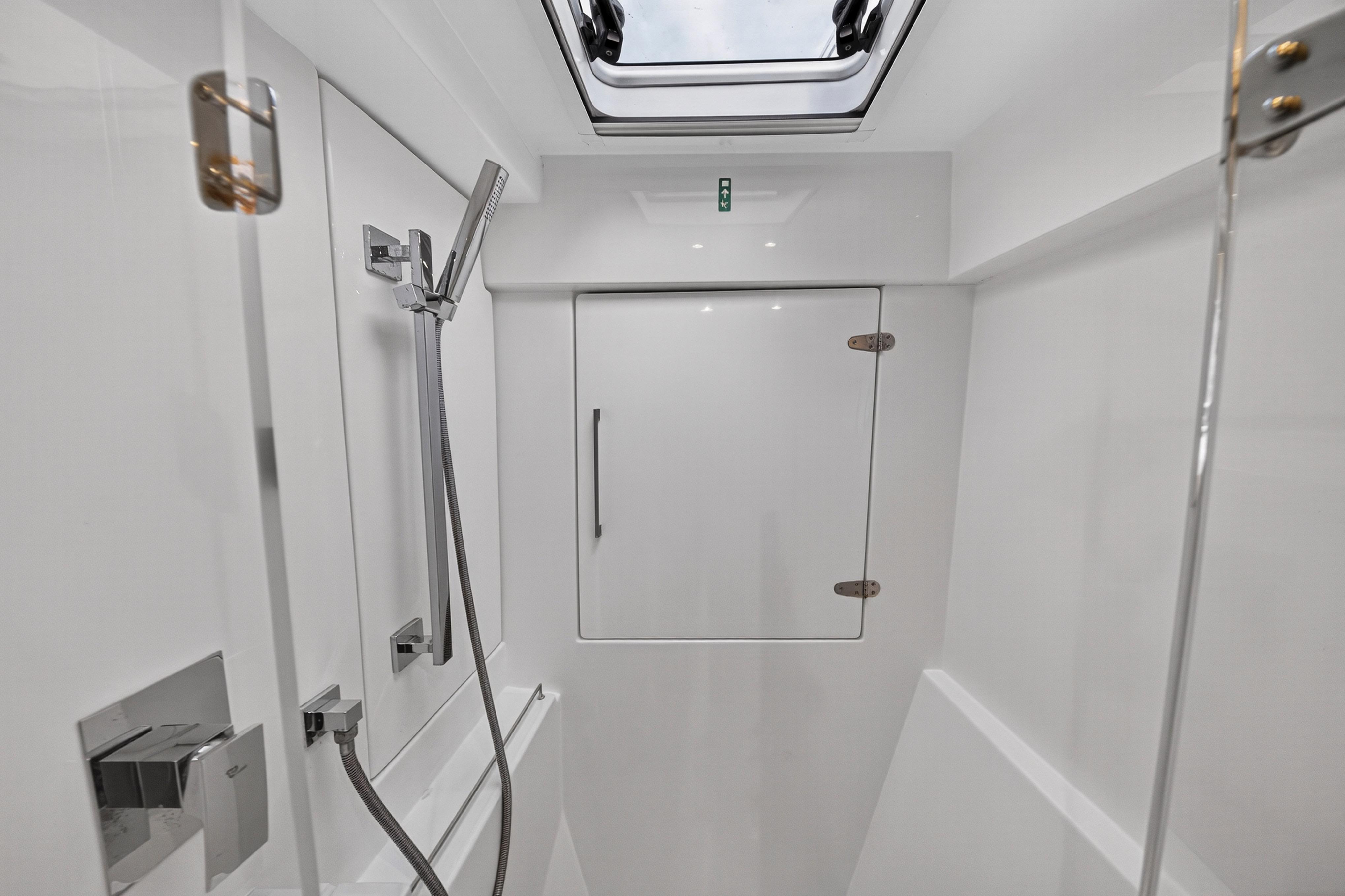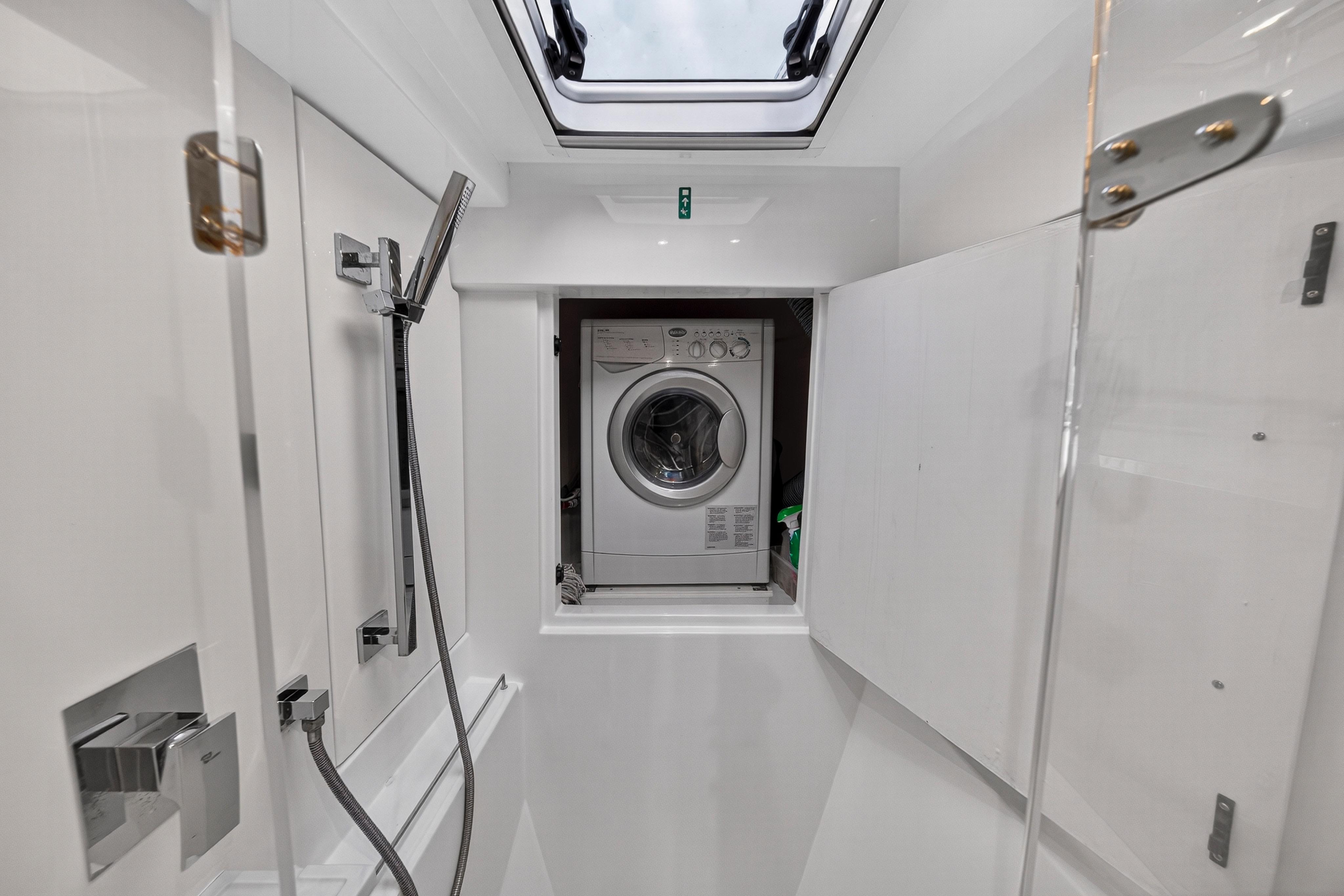 Custom fabricated steps from sunpad to front deck, 2nd lock on dinghy davits, x2 Red LED lights in salon with dedicated switch, Freshwater flush selectable heads, Freshwater Quick connect on Flrybridge