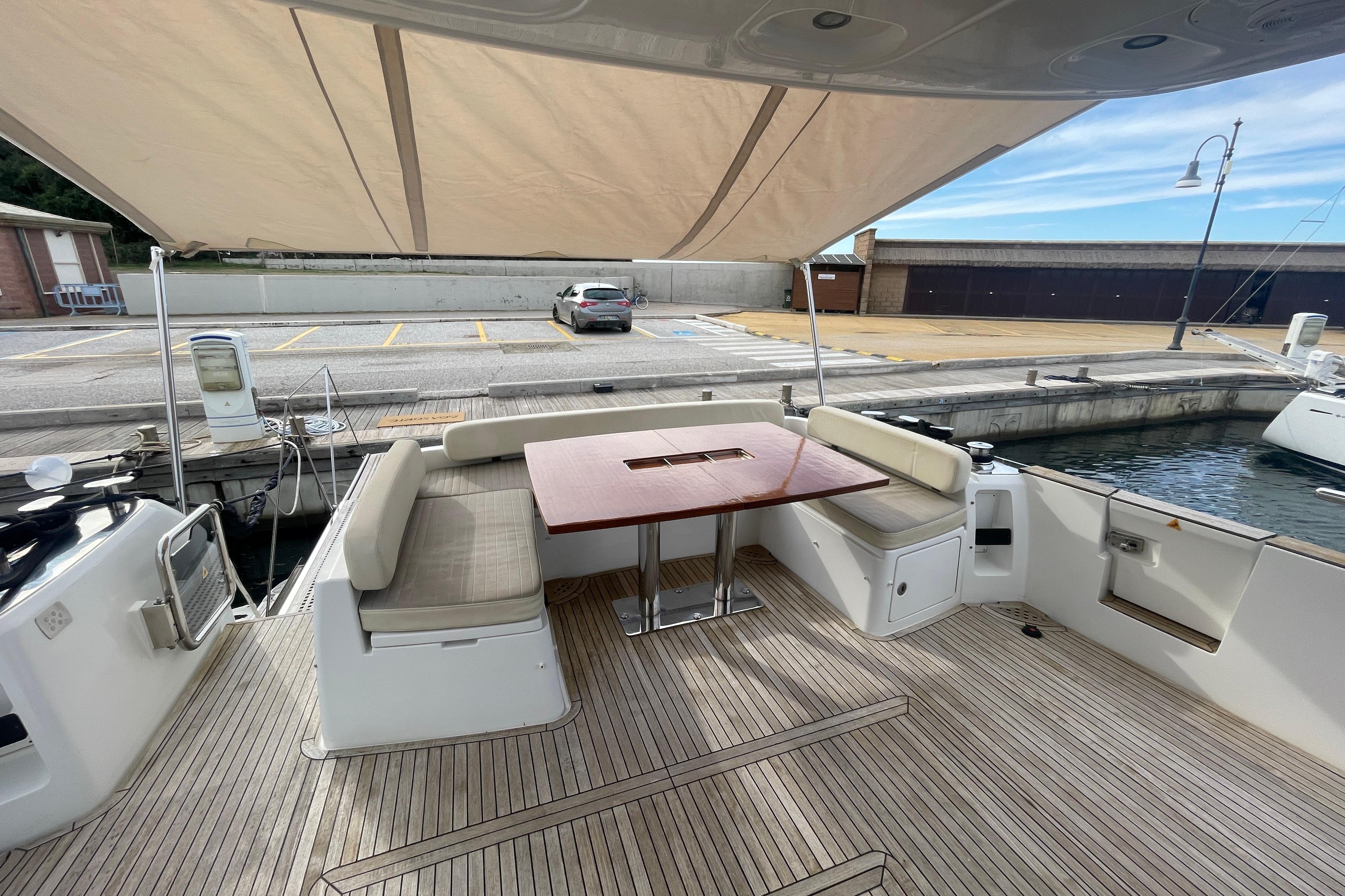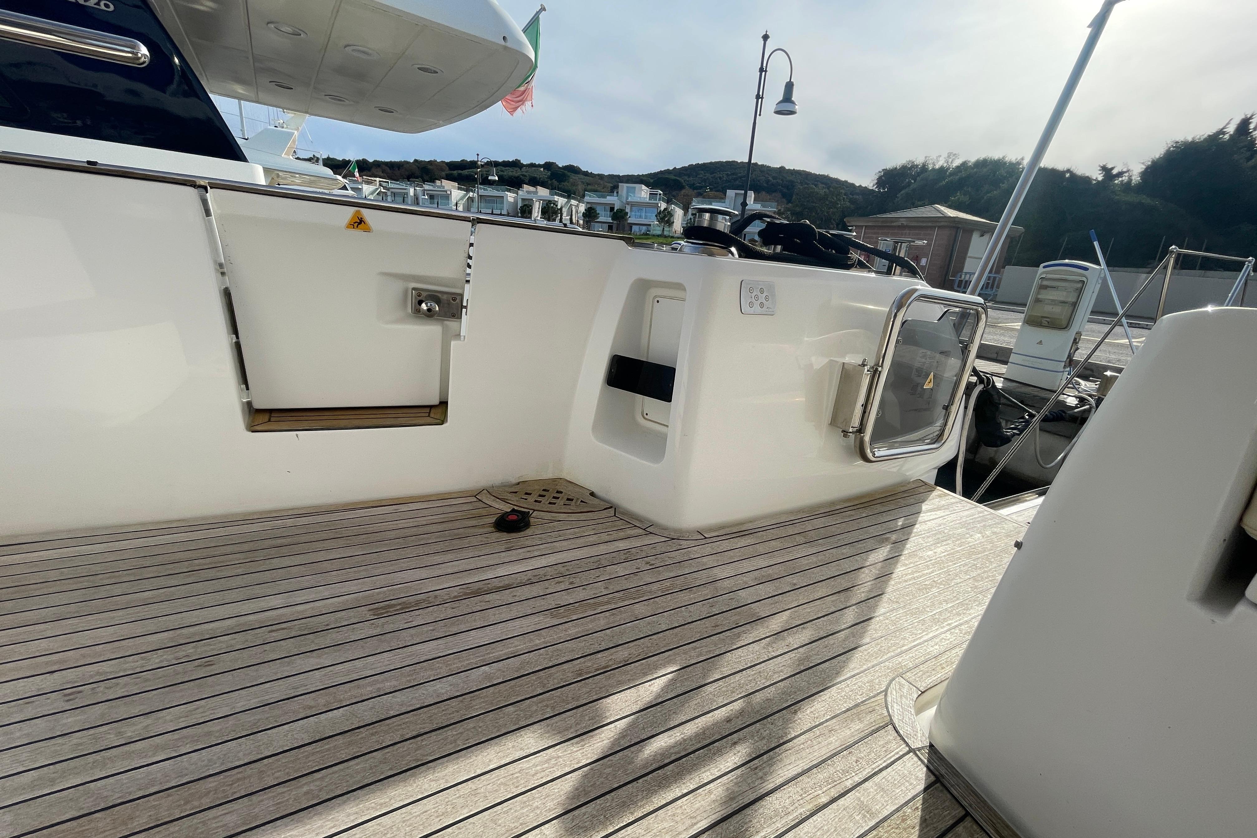 Teak su plancetta, pozzetto, camminamenti laterali e prua