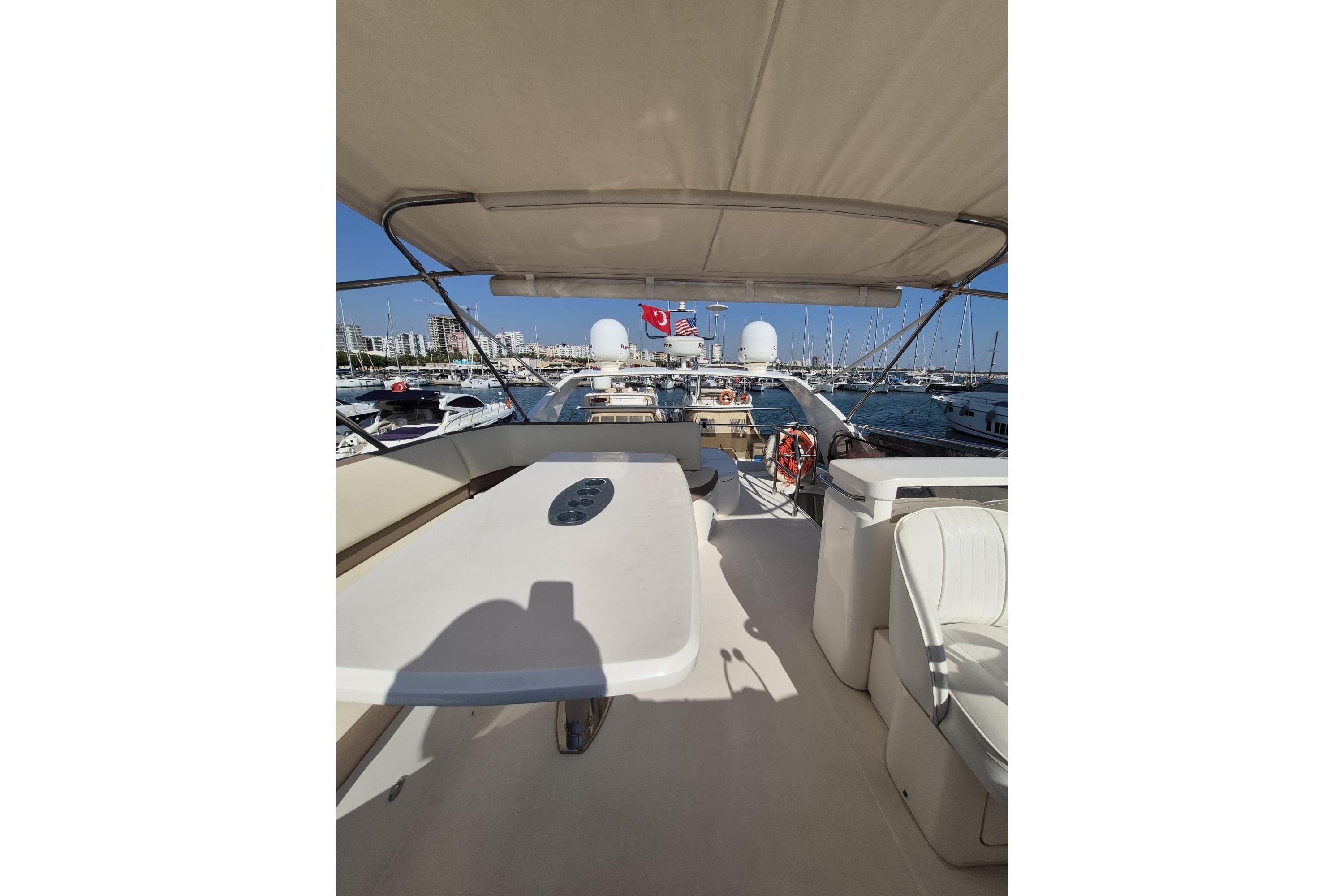 Powered by twin VOLVO D12-800 inboard engines, each delivering an impressive 775 horsepower, this yacht boasts a cruising speed of 25 knots and a maximum hull speed of 34 knots, making it perfect for exhilarating journeys.