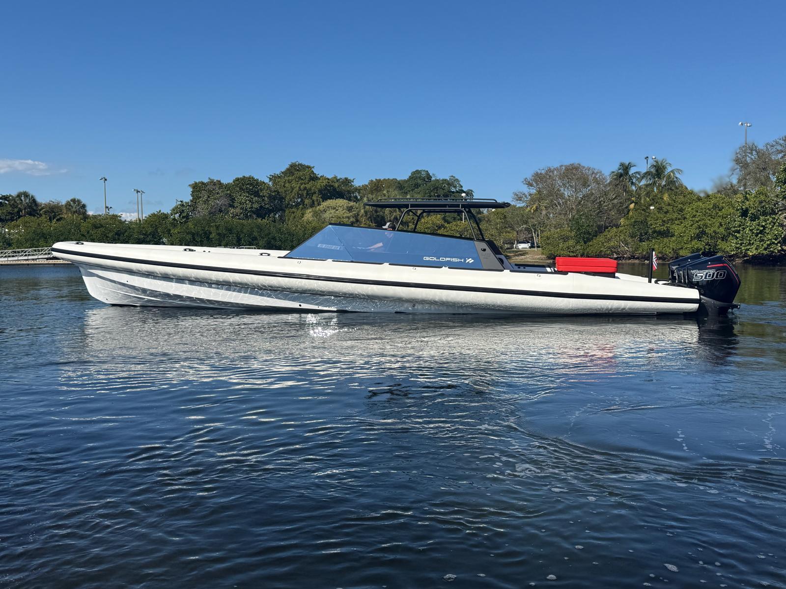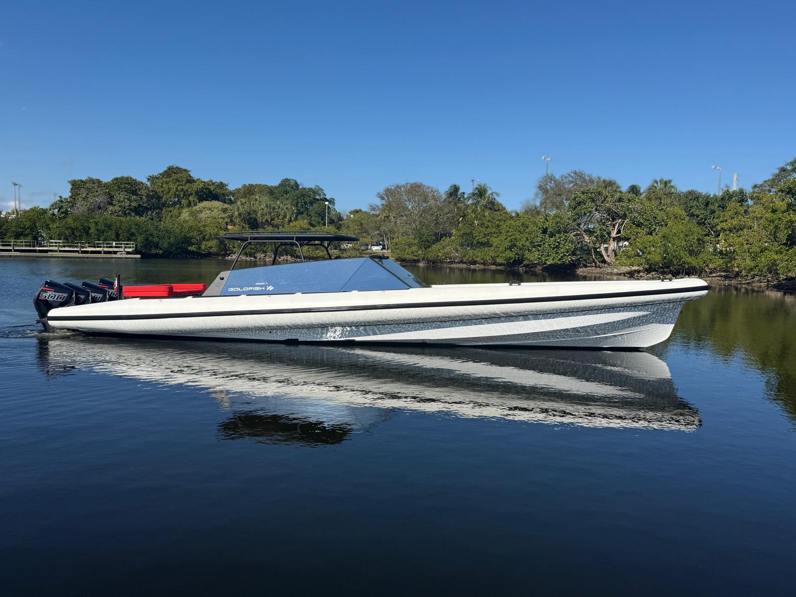 The Goldfish 46 Open is the ultimate combination of performance, luxury, and award-winning design, powered by quad Mercury 500 Racing engines for unmatched speed and agility. Named the "Best Key West Poker Run Boat of 2024," this 46-foot masterpiece delivers thrilling performance with sleek Scandinavian styling and an open deck layout perfect for high-speed runs or leisurely coastal cruising.