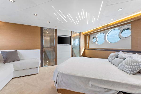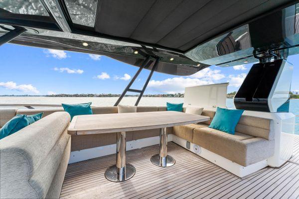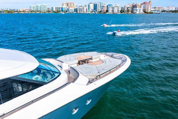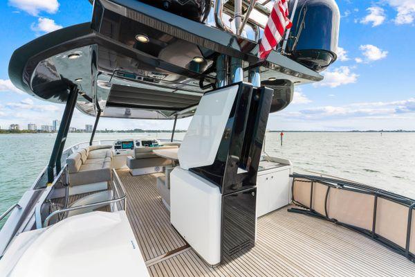 External FeaturesThe MCY 70 features all the form and function the range is known for. The spacious aft area is fully sheltered by the extended flybridge and the ingenious usage of steel and glass fashion plates, a signature Monte Carlo Yachts trait, further increases the feeling of onboard privacy.