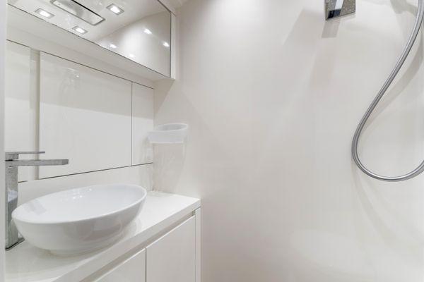 Port side guest bathroom (both 3 and 4 cabins versions) - Tecma WC - Sink - Mirror - Cabinet under the sink