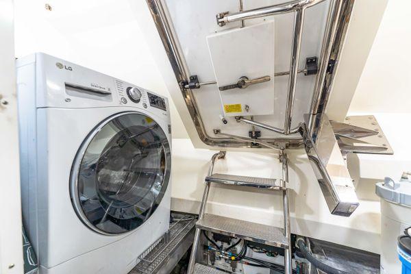 - Water proof access hatch to engine room and crew cabin - Stern stairs to aft cockpit, with stainless steel handrails and hatches for shore power connection and stern platform shower (cold and hot supply) - Electro-hydraulic concealed stainless steel gangway, with teak grating, automatic stanchions and courtesy LED lights