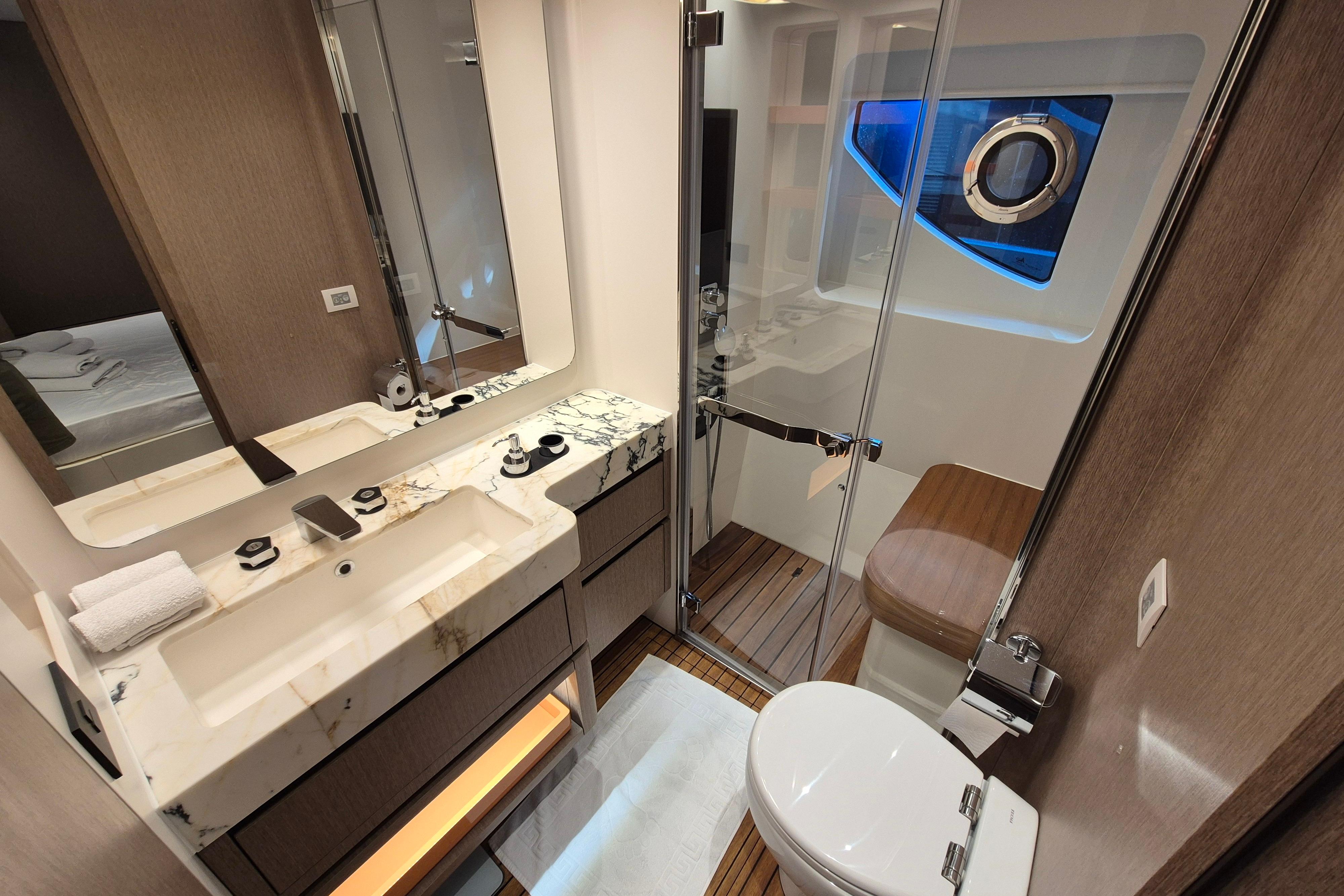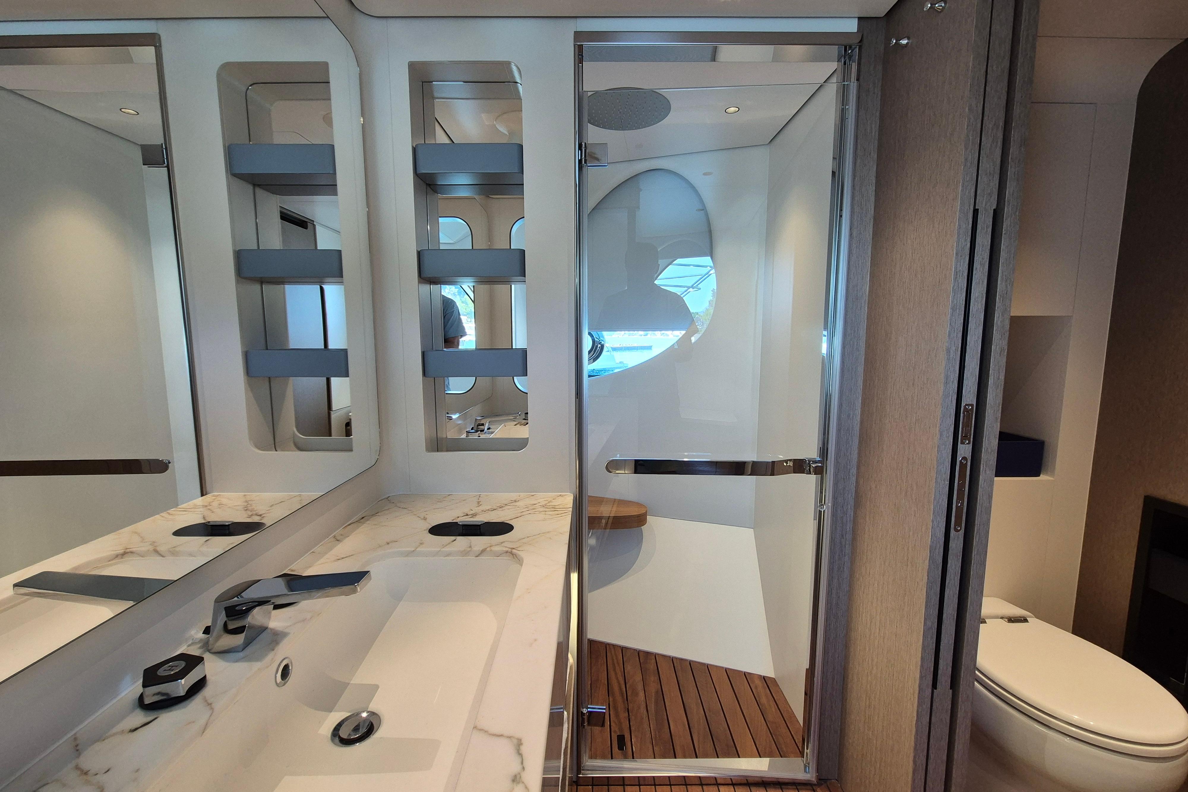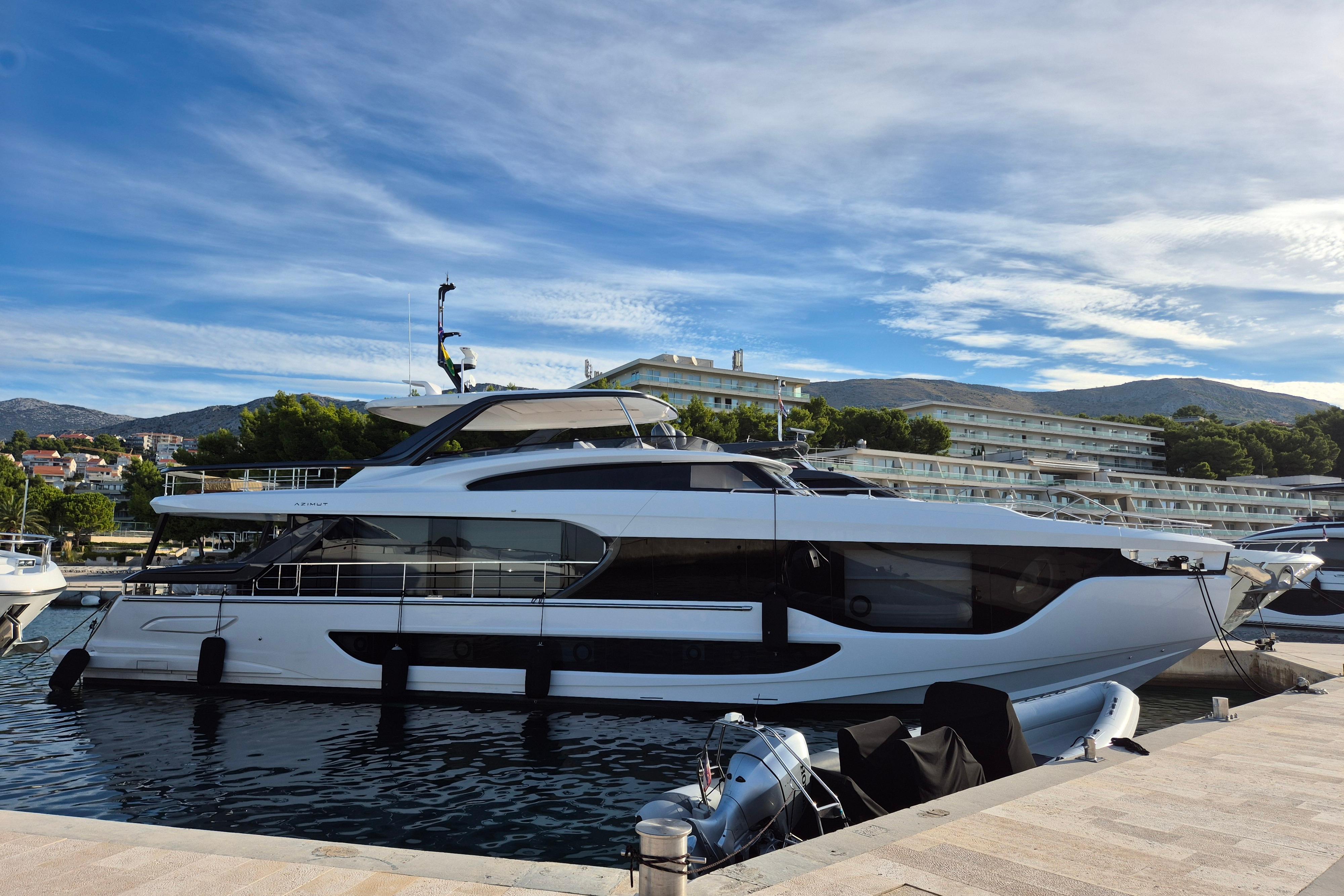 • Teak on Bow, Flybridge, Main deck, Sides and Swimming platform