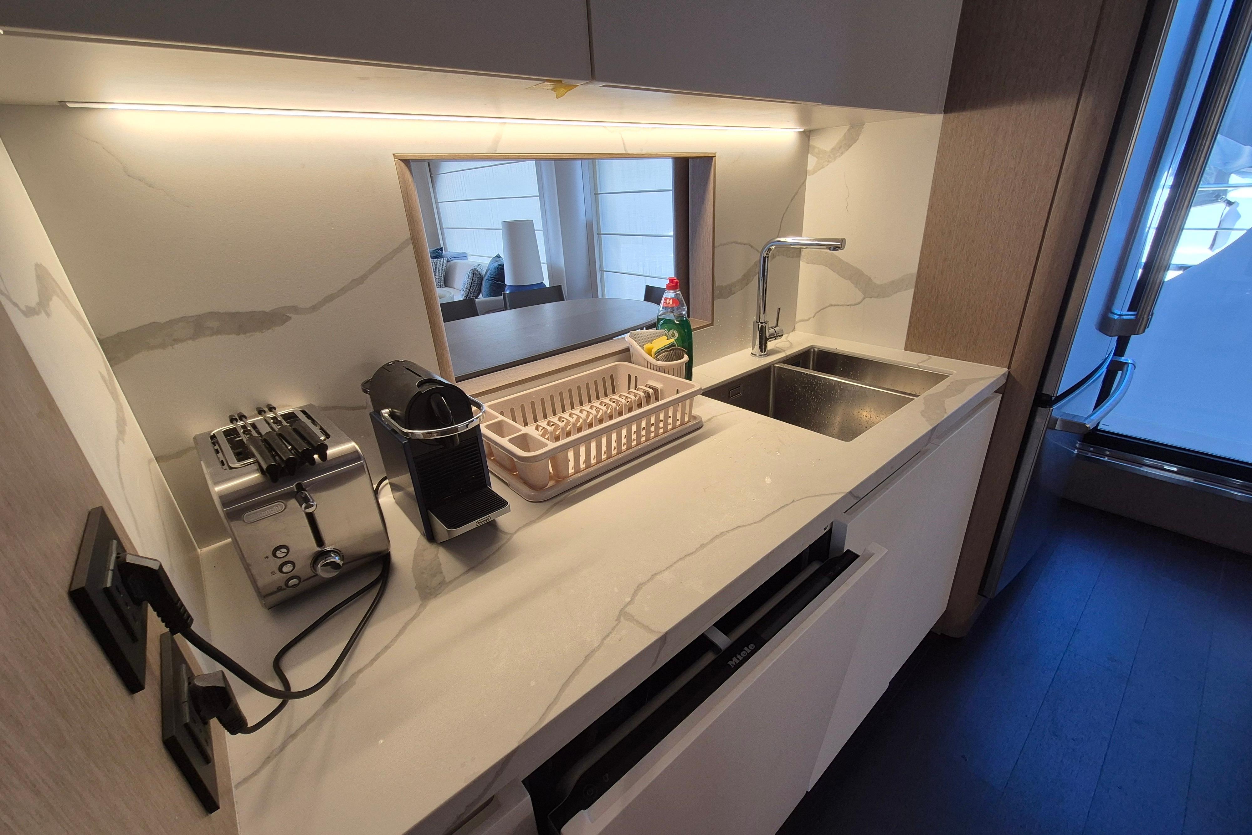 • Aft separate cabinet with teak top and "BBQ KENYON B70400 (Teaxan Grill)