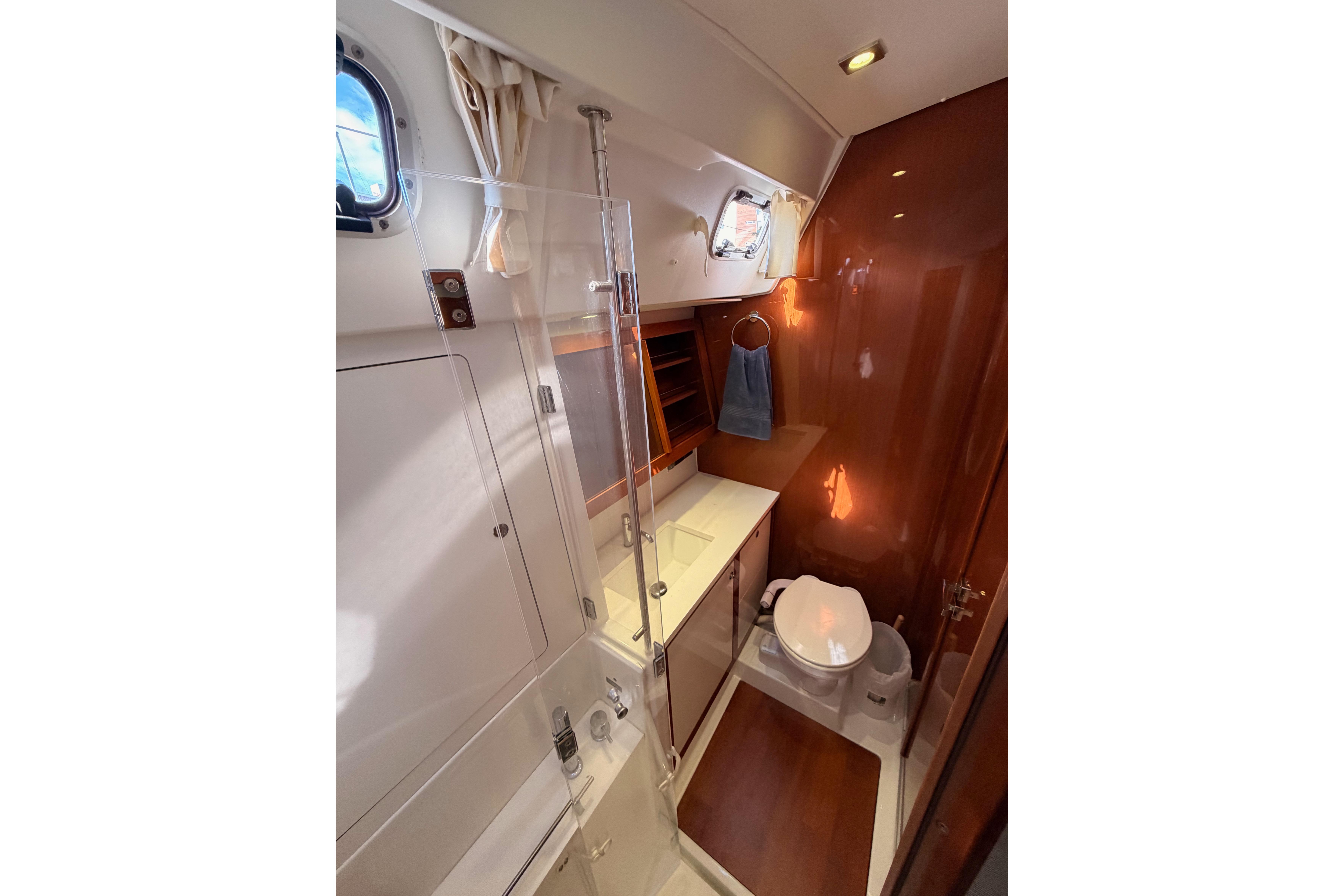 - Docking: With a standard bow thruster, it is manageable in close quarters, with the thruster being effective for both bow and stern control.