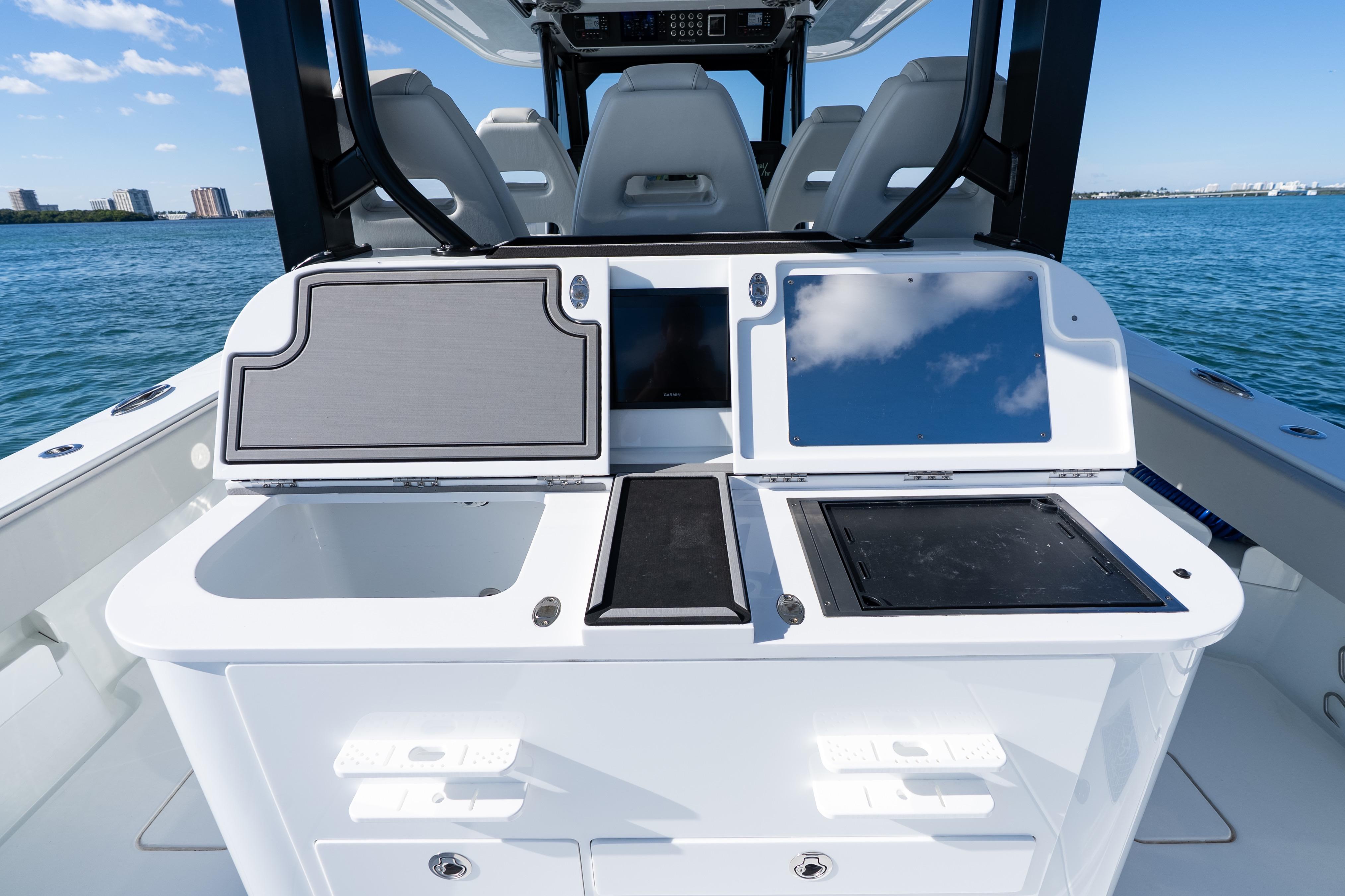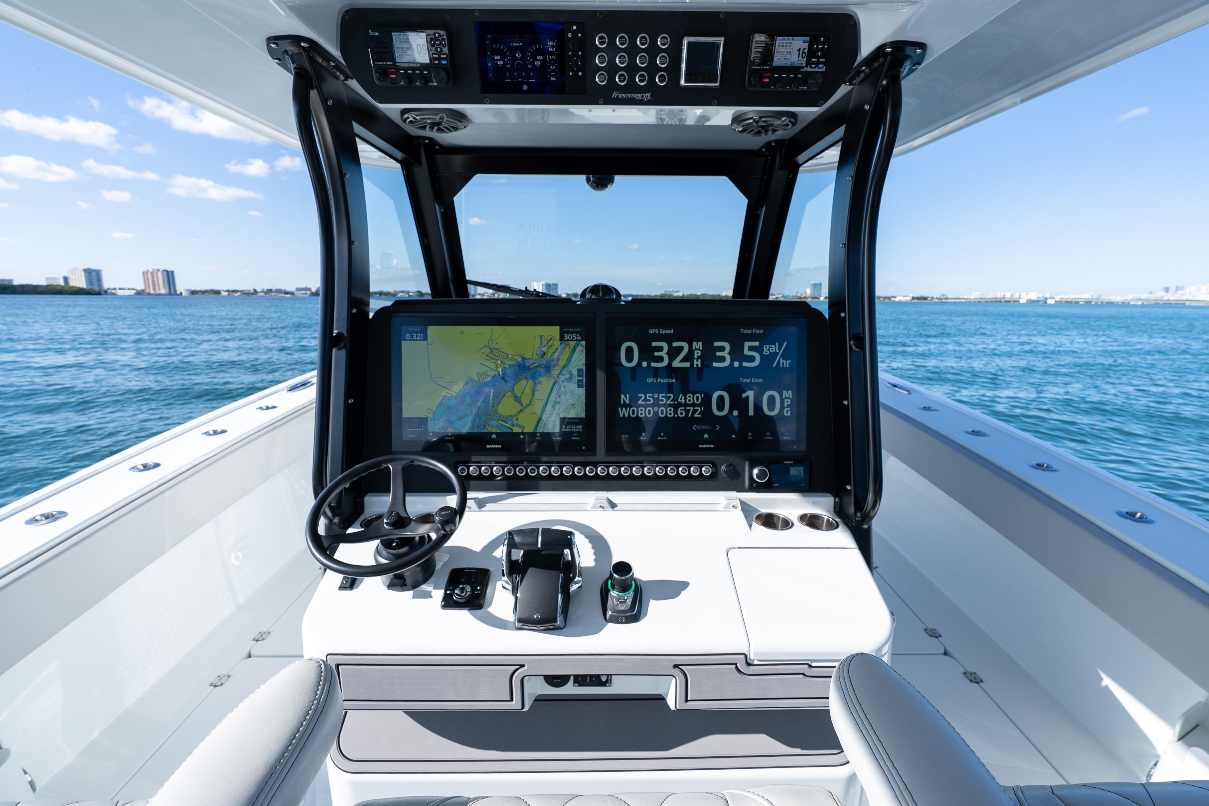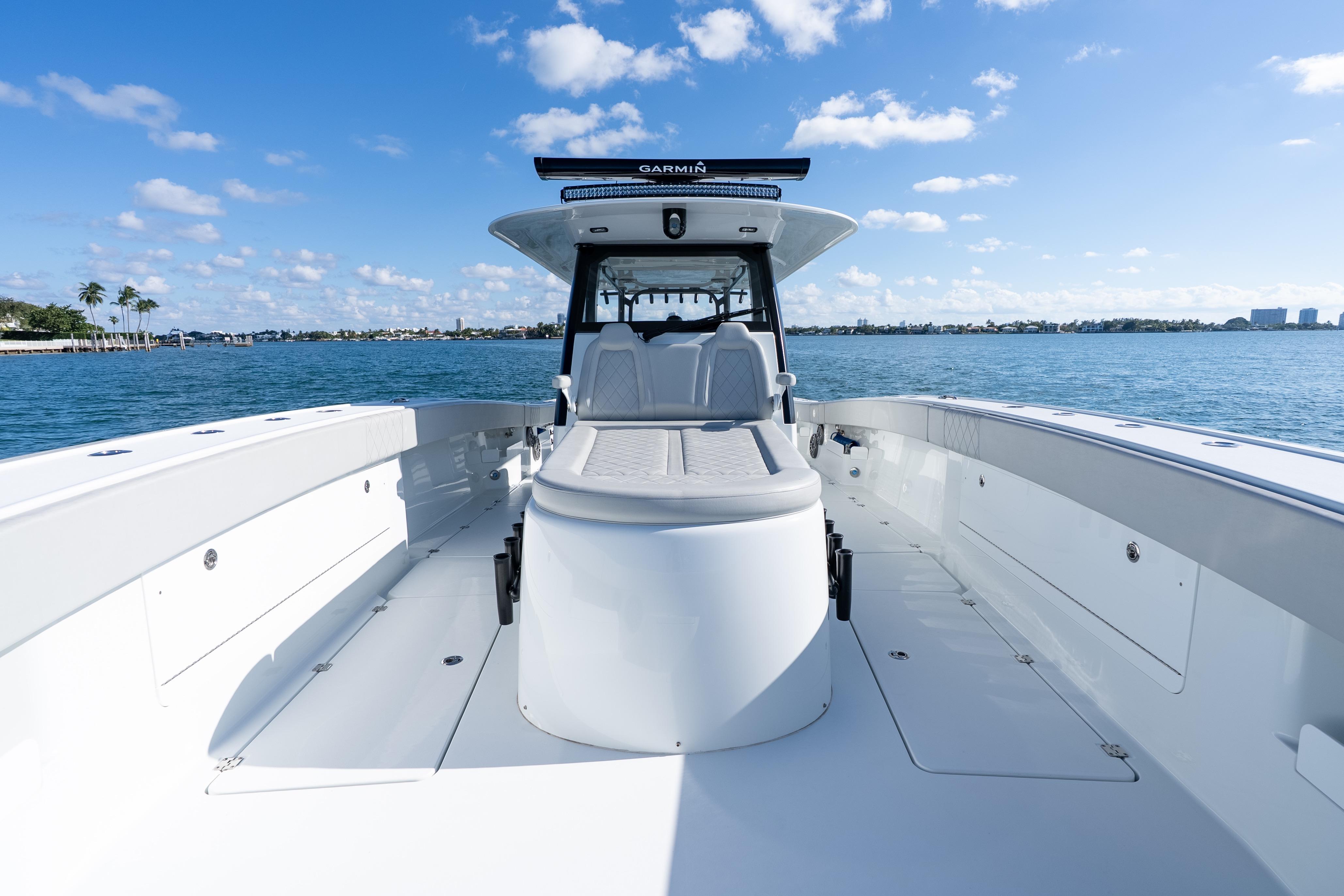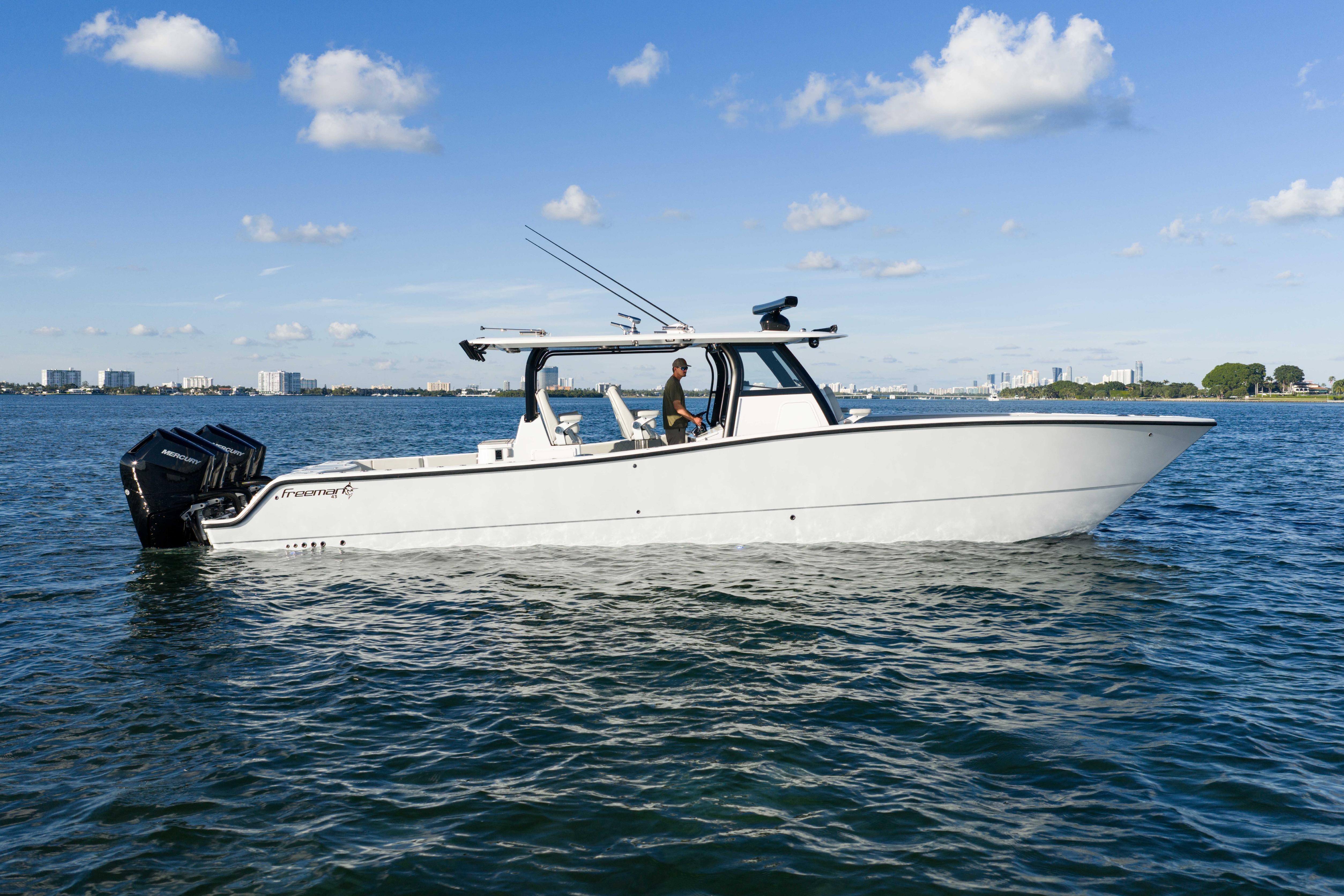 This 2023 43’ Freeman Boatworks is an elite offshore performer finished in the highly desirable Whisper Gray. Powered by quad Mercury V10 400s with 620 hours, paired with factory Mercury electric steering and Mercury Joystick Piloting, this boat delivers effortless control, precision docking, and world-class ride quality. Backed by Platinum Mercury Warranty until 2029, it’s fully protected and turn-key.