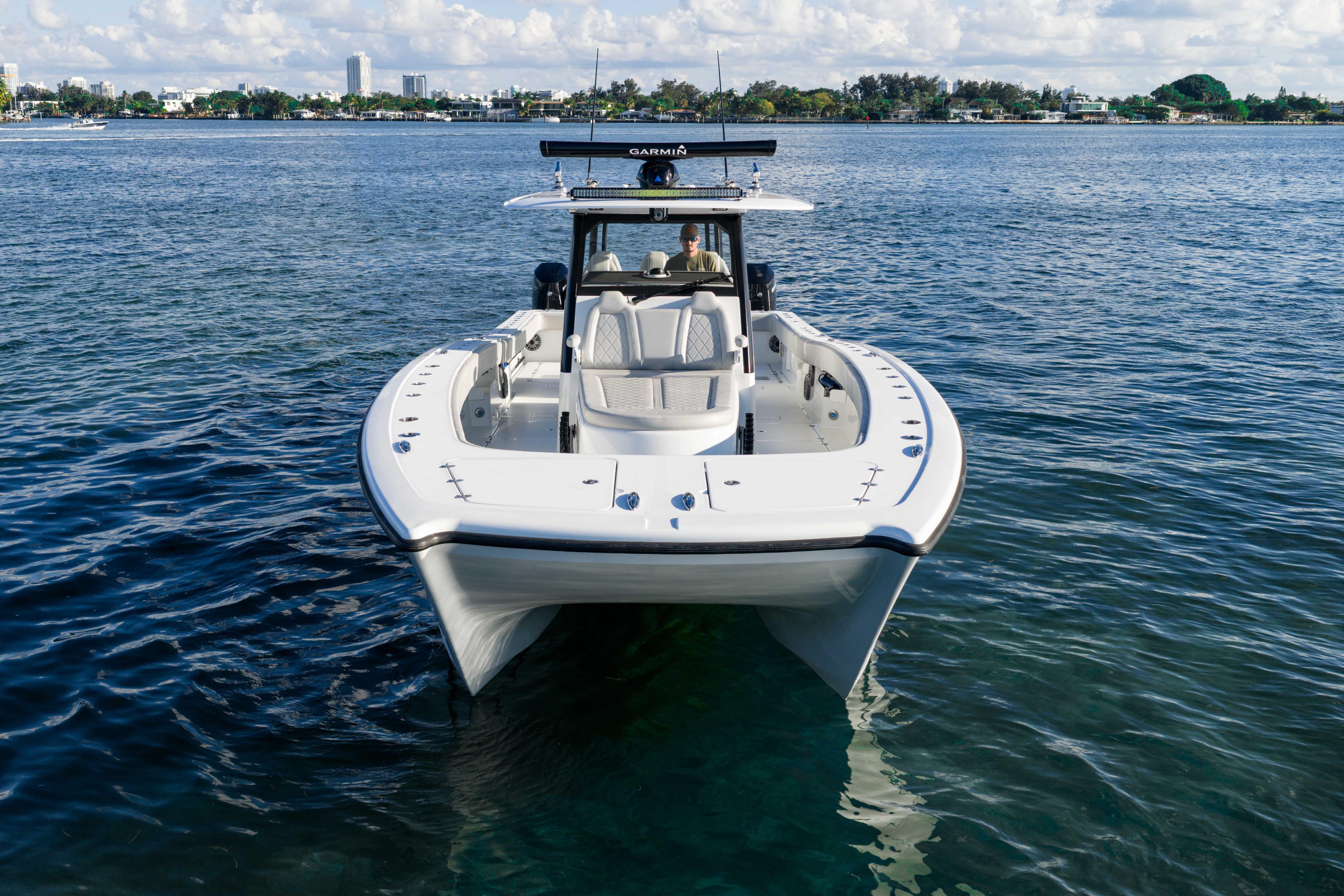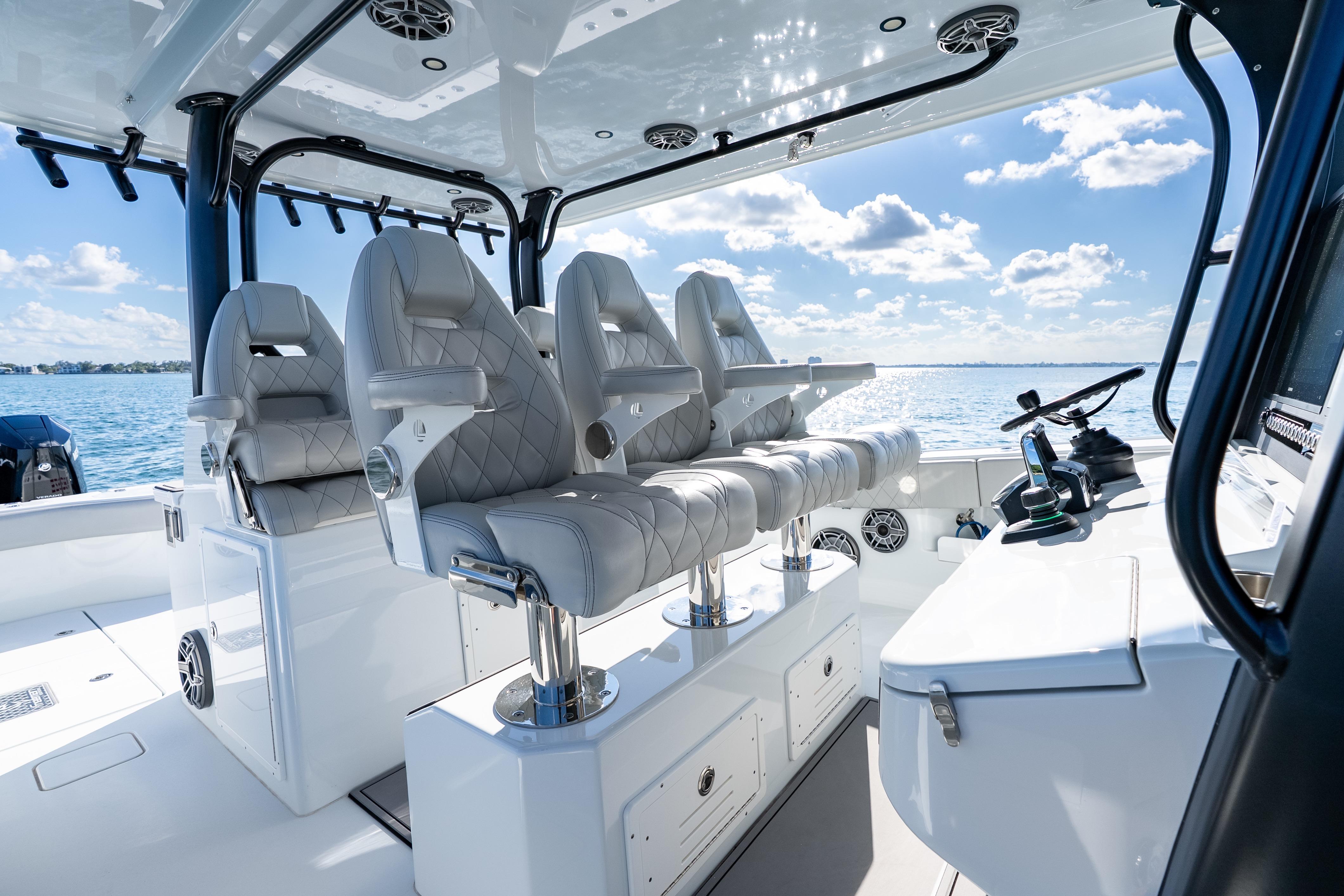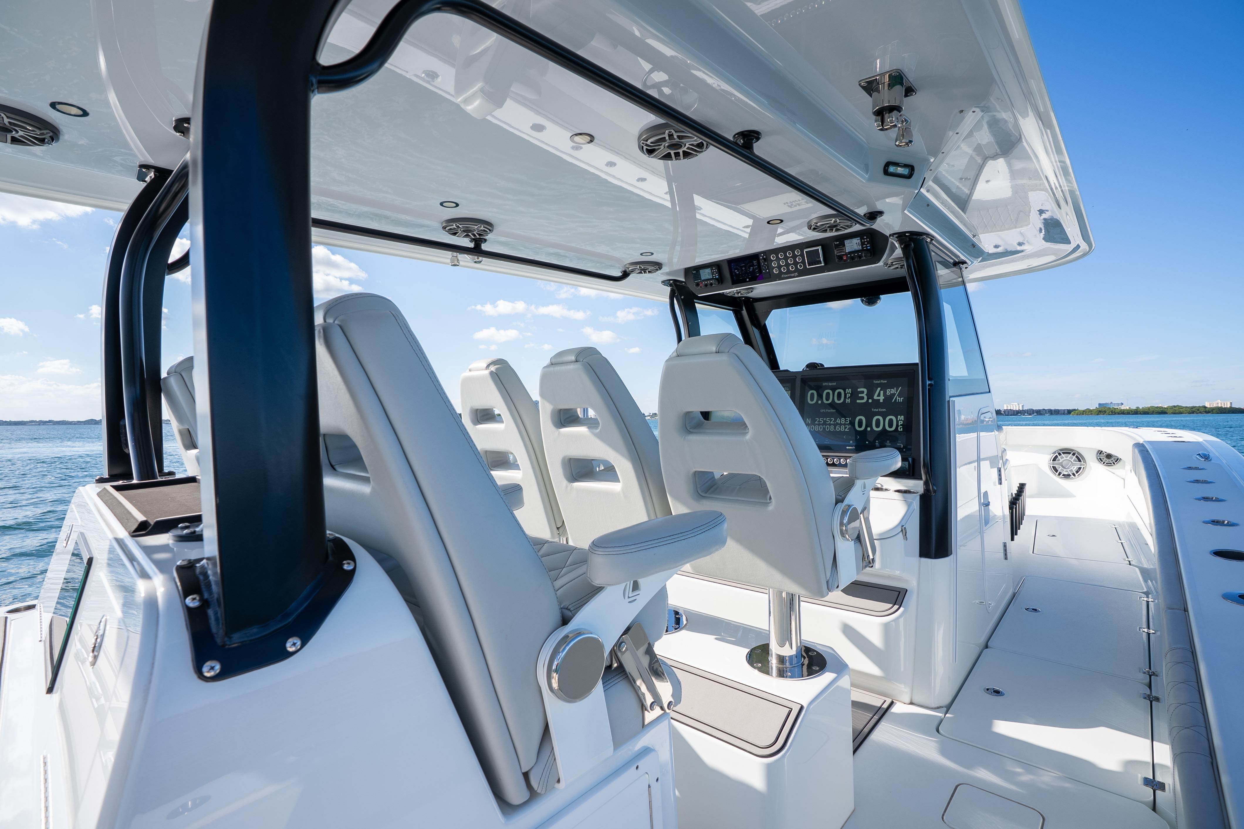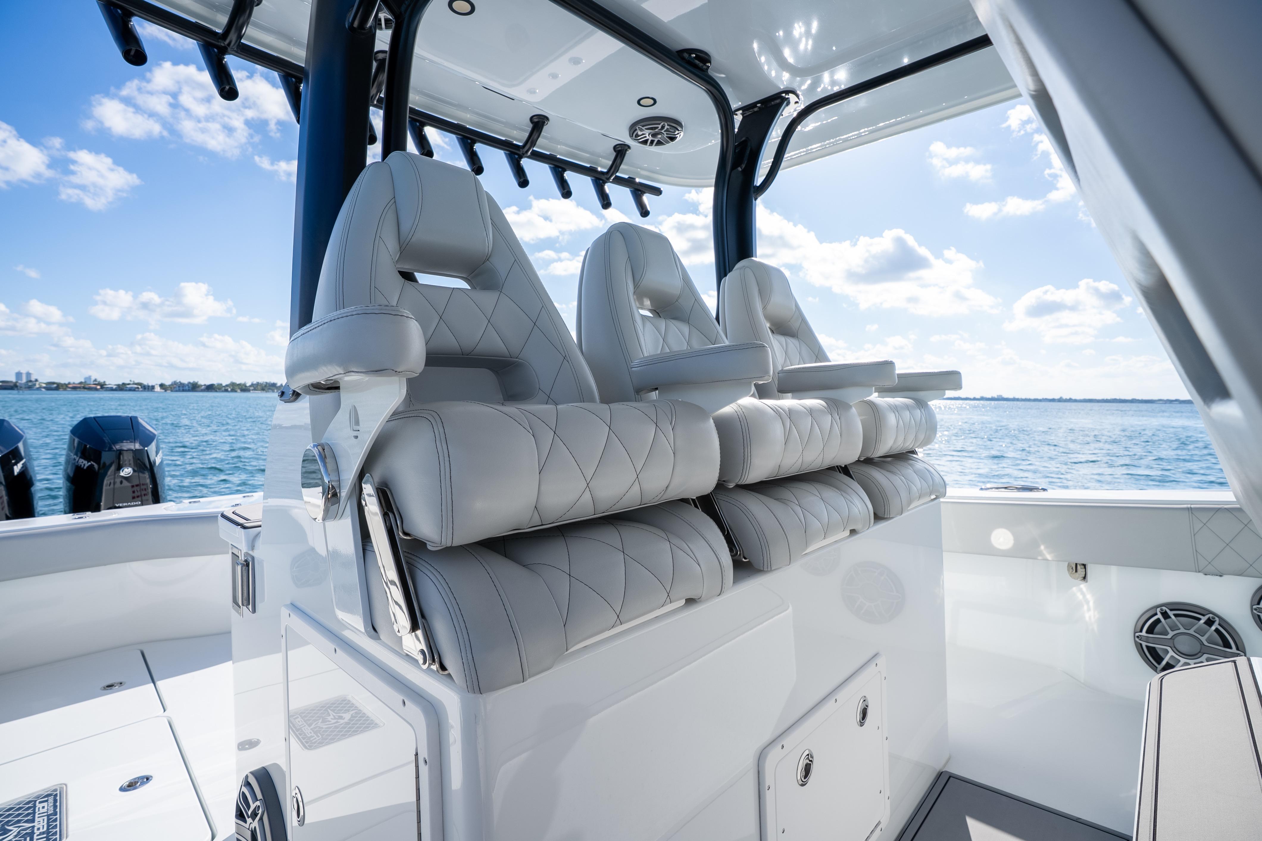 This 2023 43’ Freeman Boatworks is an elite offshore performer finished in the highly desirable Whisper Gray. Powered by quad Mercury V10 400s with 620 hours, paired with factory Mercury electric steering and Mercury Joystick Piloting, this boat delivers effortless control, precision docking, and world-class ride quality. Backed by Platinum Mercury Warranty until 2029, it’s fully protected and turn-key.