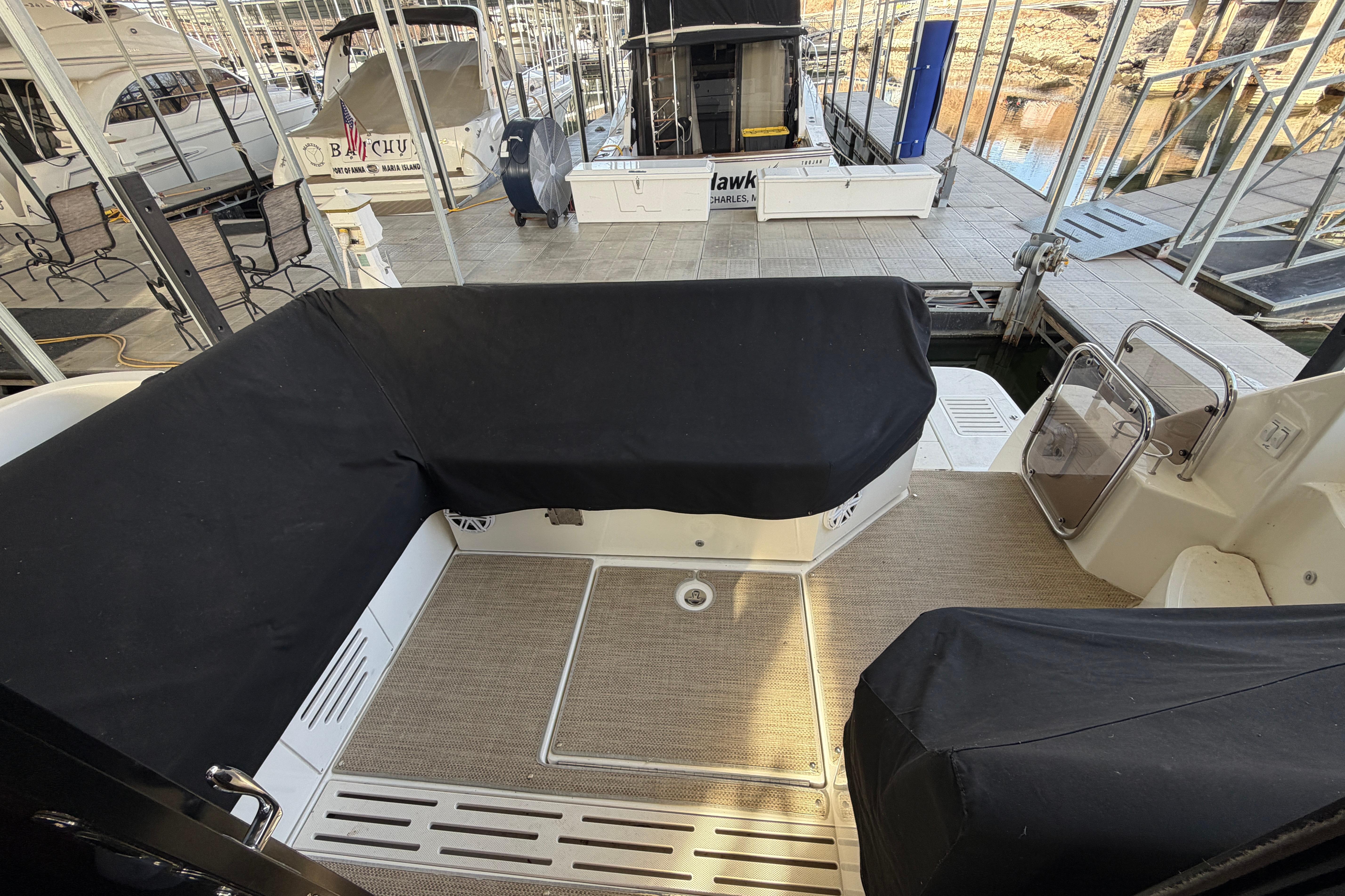 WILL LOOK AT ALL TRADES. SOLD NEW HERE AT LAKE OF THE OZARKS, MISSOURI. UNDERCOVER. OWNERS WANT TO MOVE UP IN SIZE. V-DRIVES WITH CUMMINS JOYSTICK. PWC LIFT. Designed for cruising and entertaining, the open floorplan and