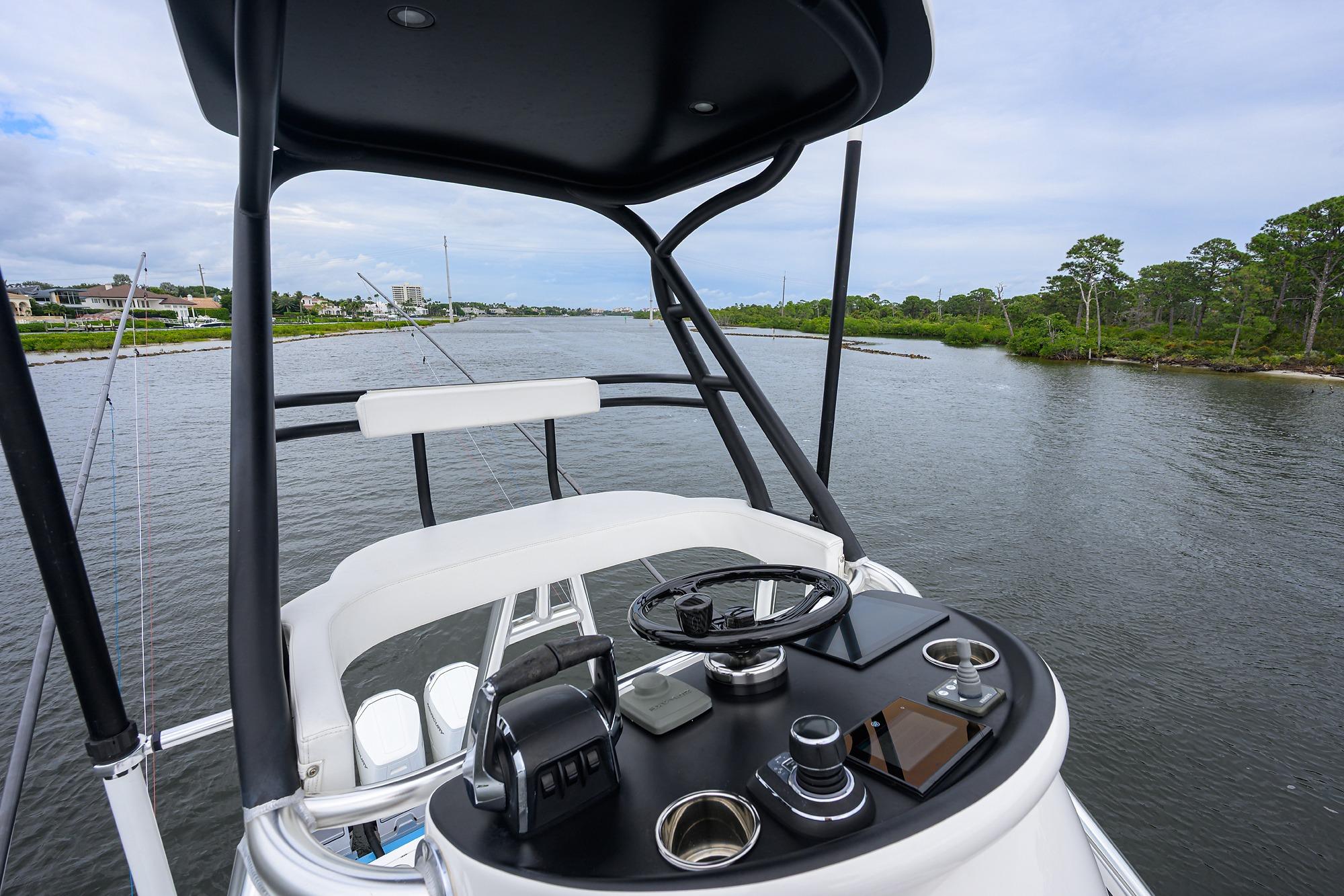 - Teak deck for raised helm platform area, mezzanine step, and forward step