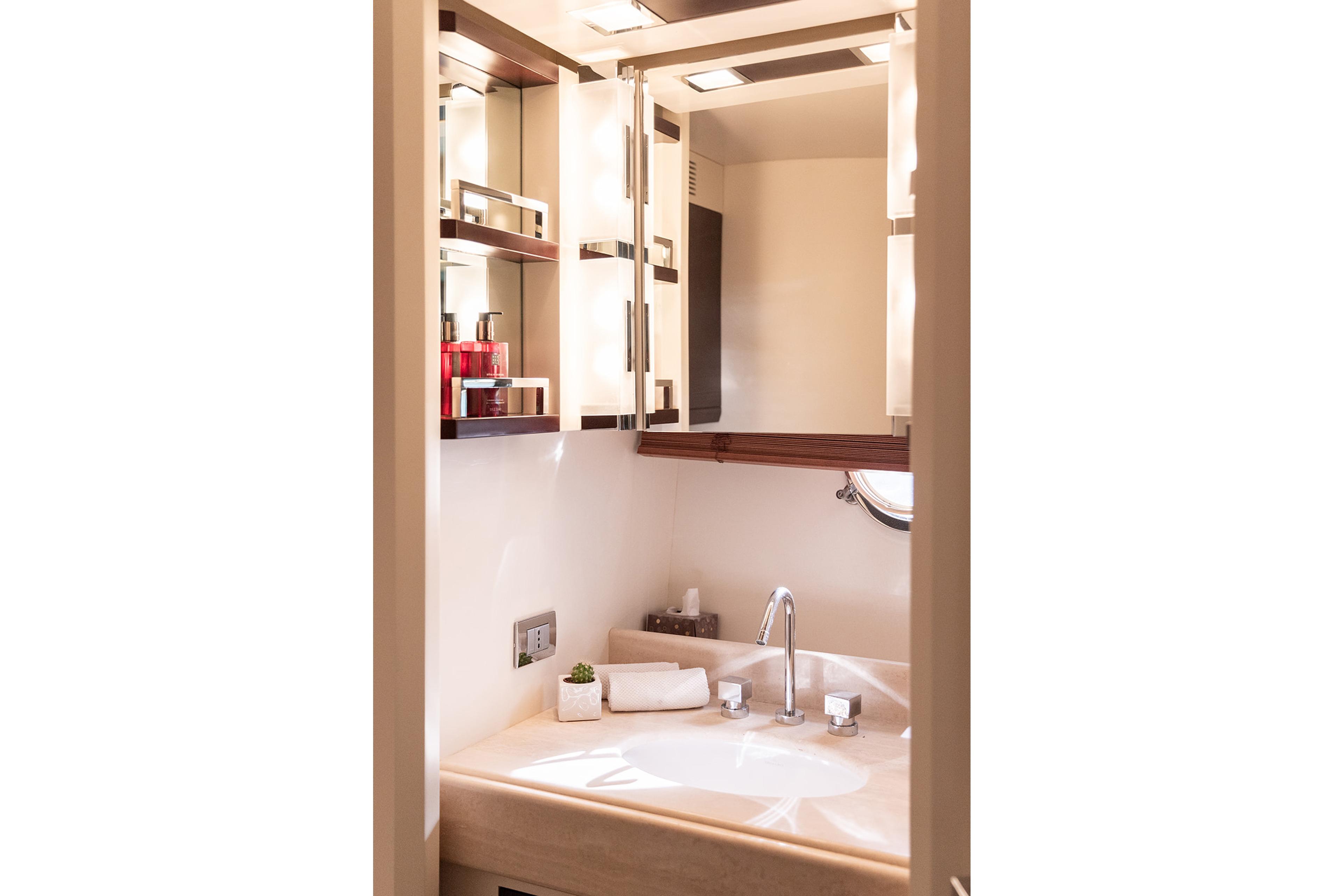 - Full-beam master stateroom amidships with walk-in wardrobe
