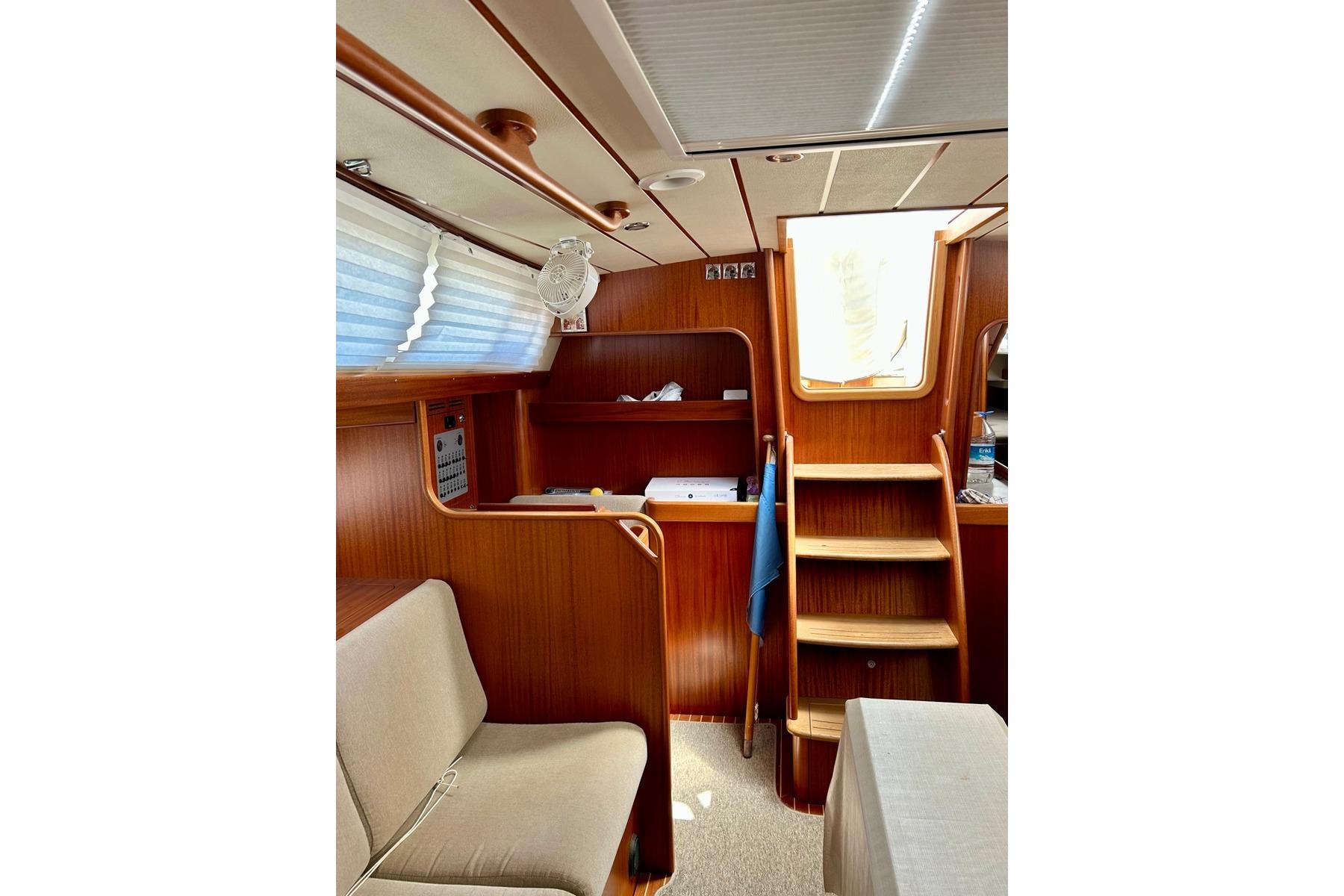 Two sofas in saloon on the starboard