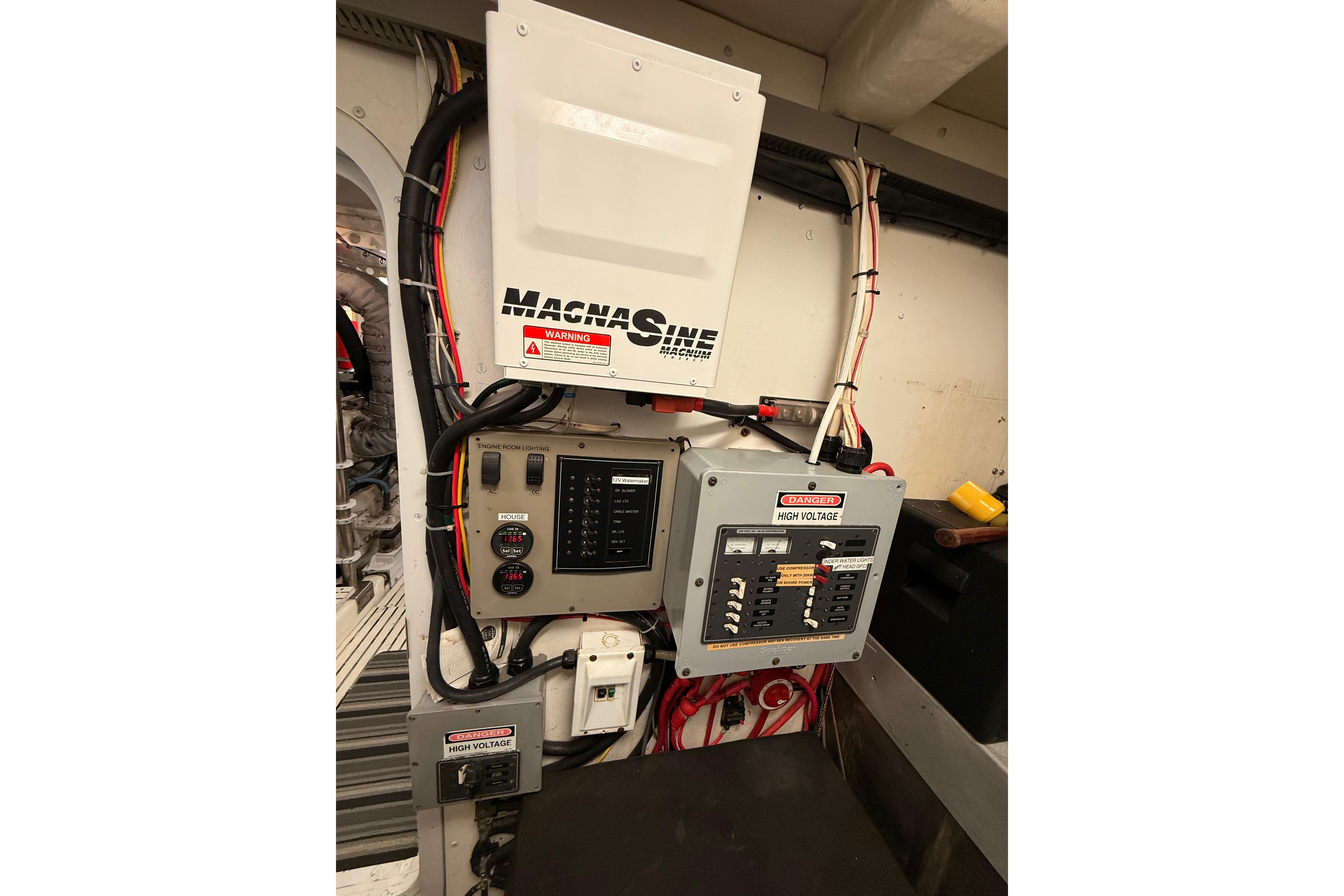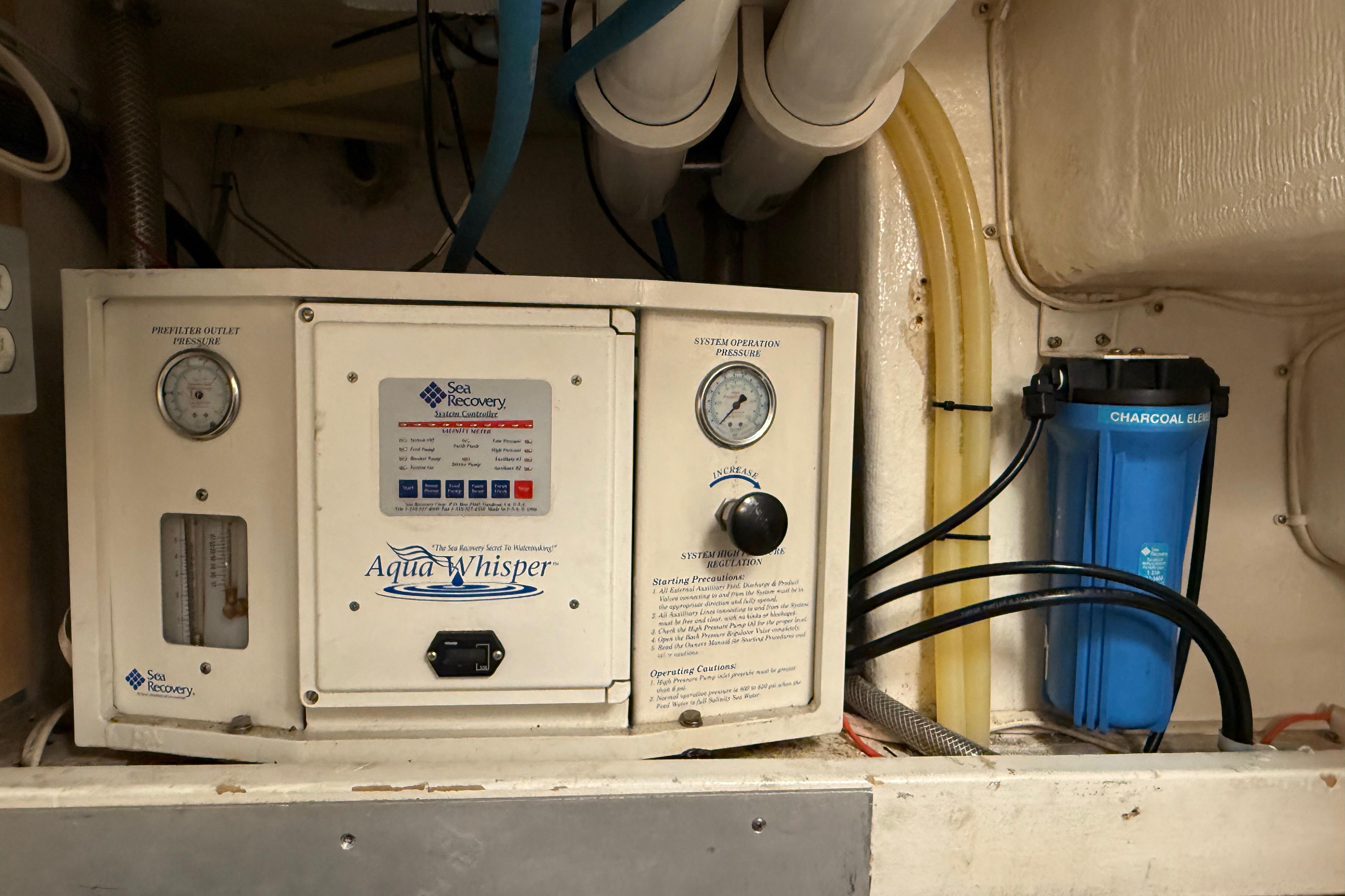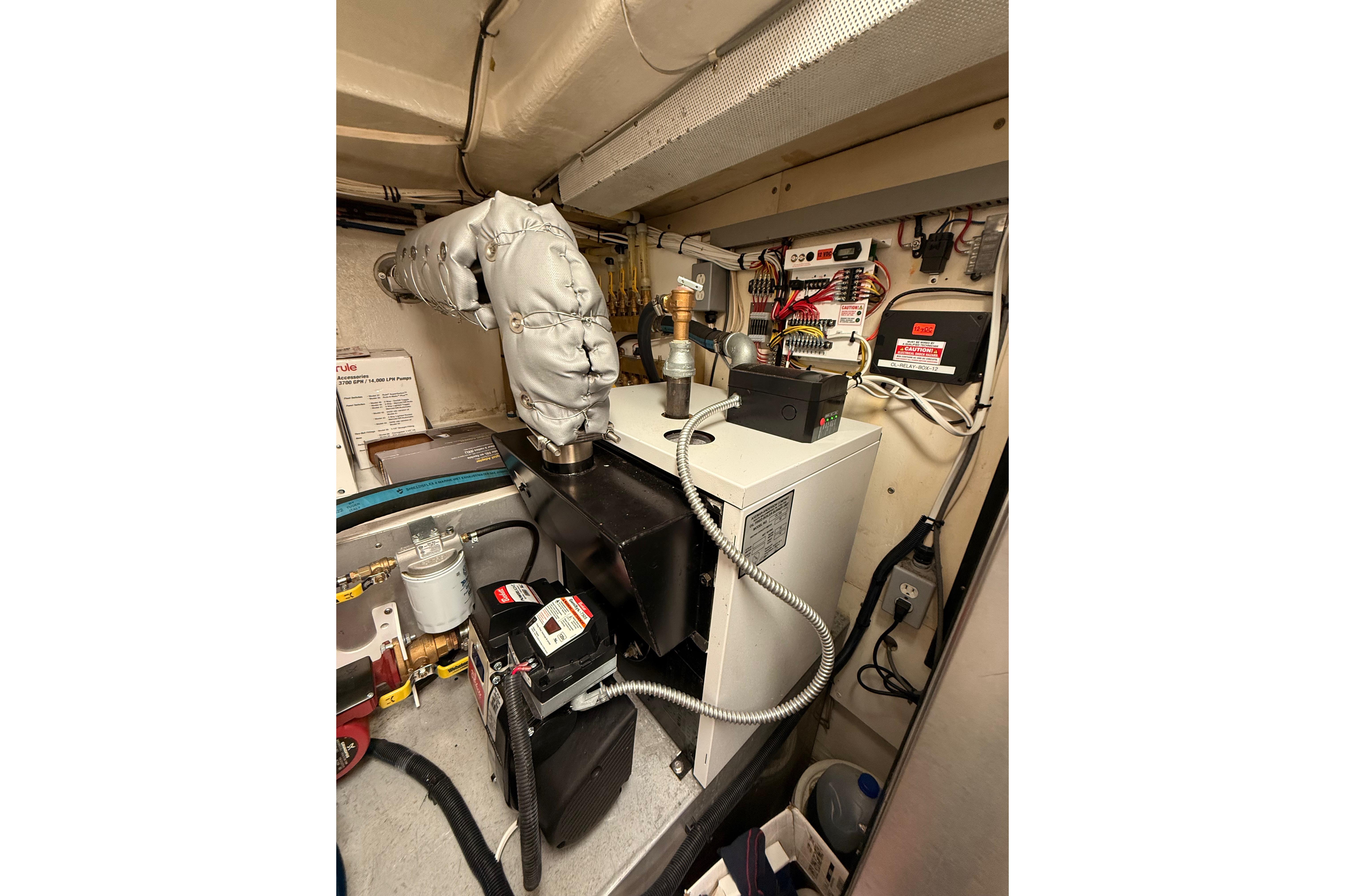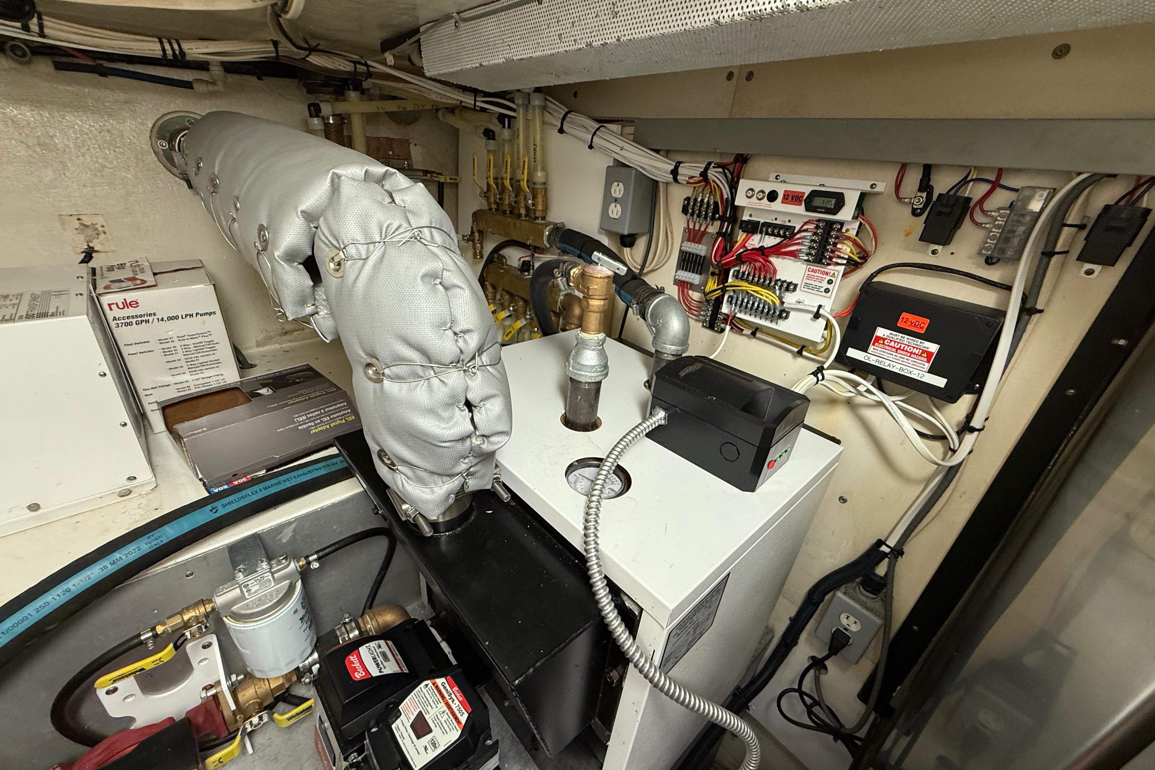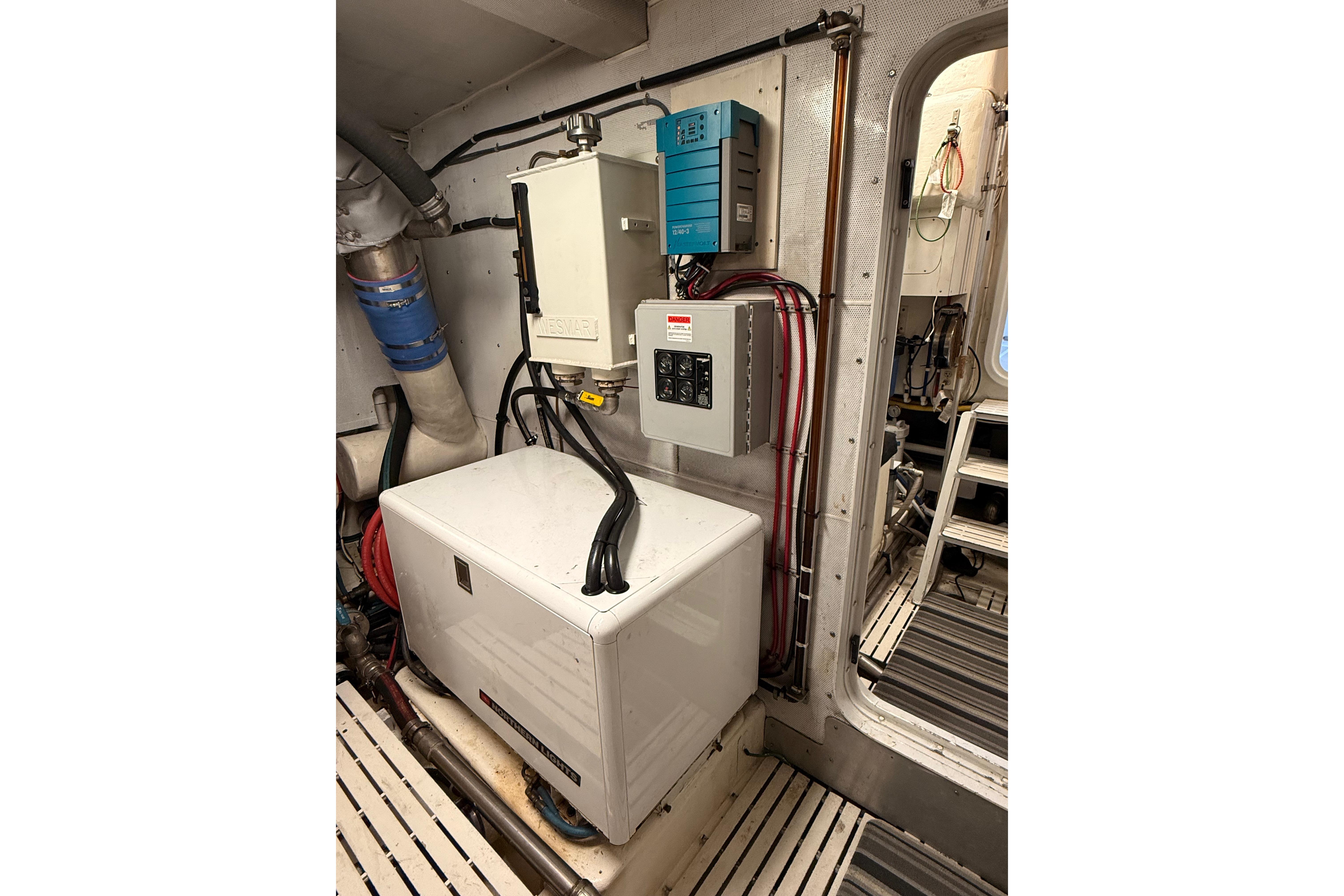 FULL WALK-IN STANDUP ENGINE ROOM WITH GREAT ACCESS AROUND THE TWIN 800HP 3406 CATERPILLER MAINS. WELL EQUIPPED MECHANICAL AREAS WITH 2 GENERATORS, 2 WATERMAKERS, NEW COMMERCIAL SIZED HOTWATER DIESEL FURNACE SYSTEM AND MANY MORE GREAT SYSTEMS.