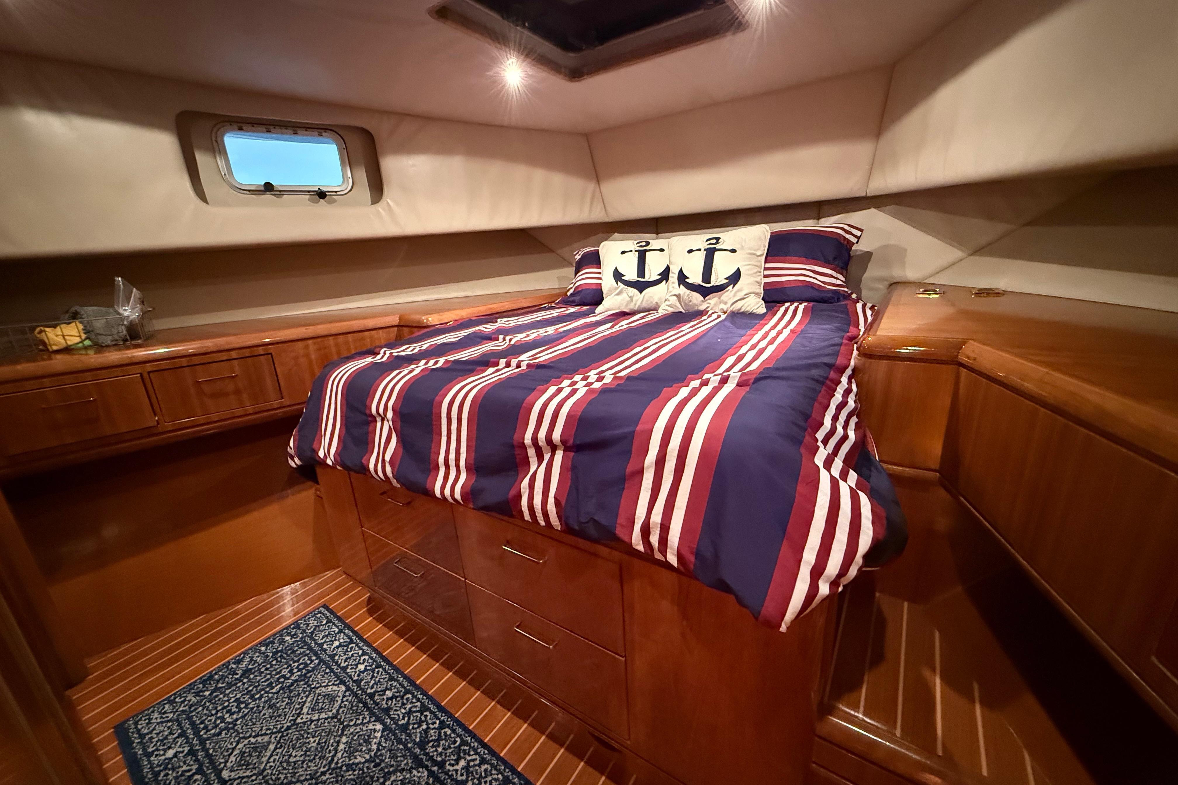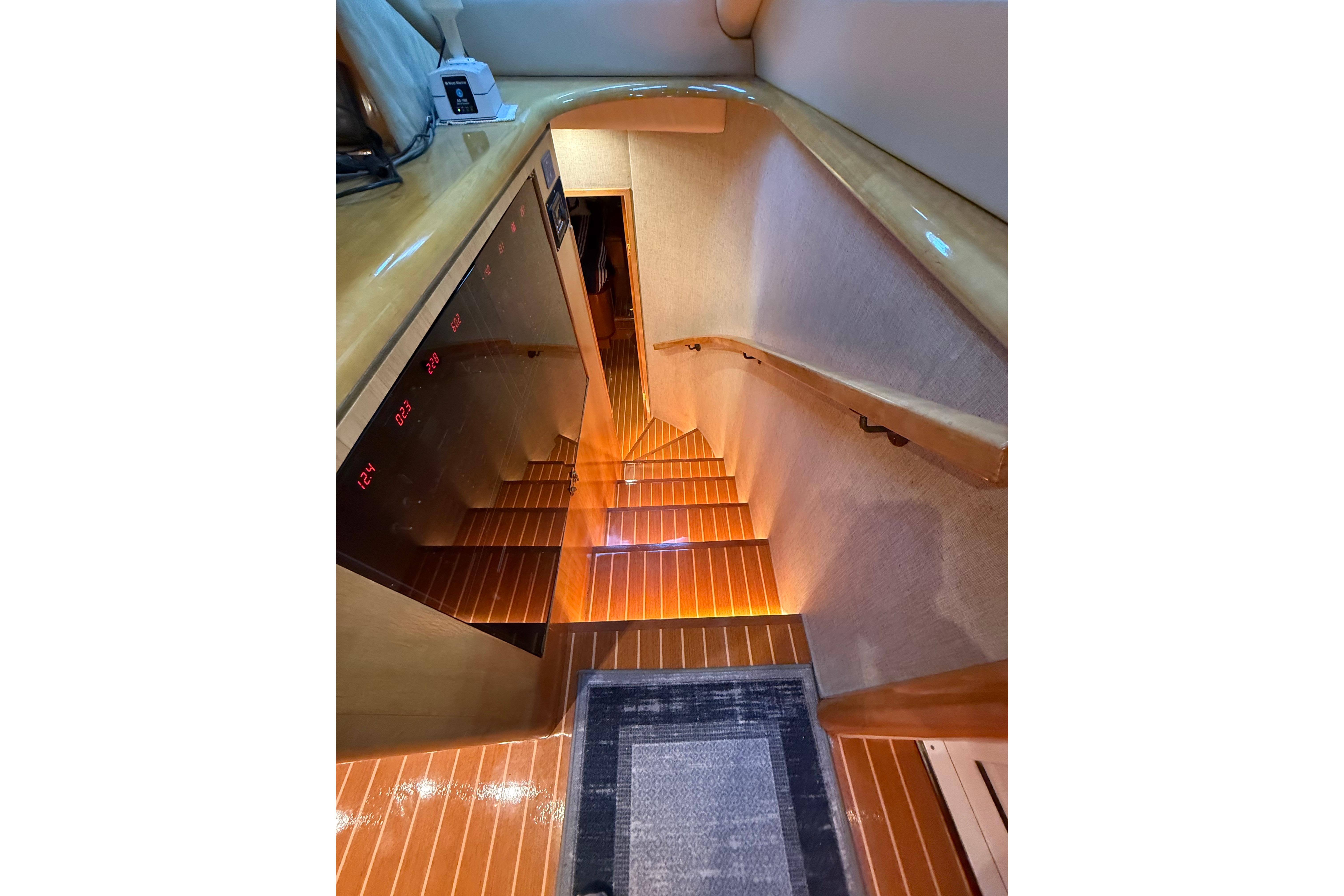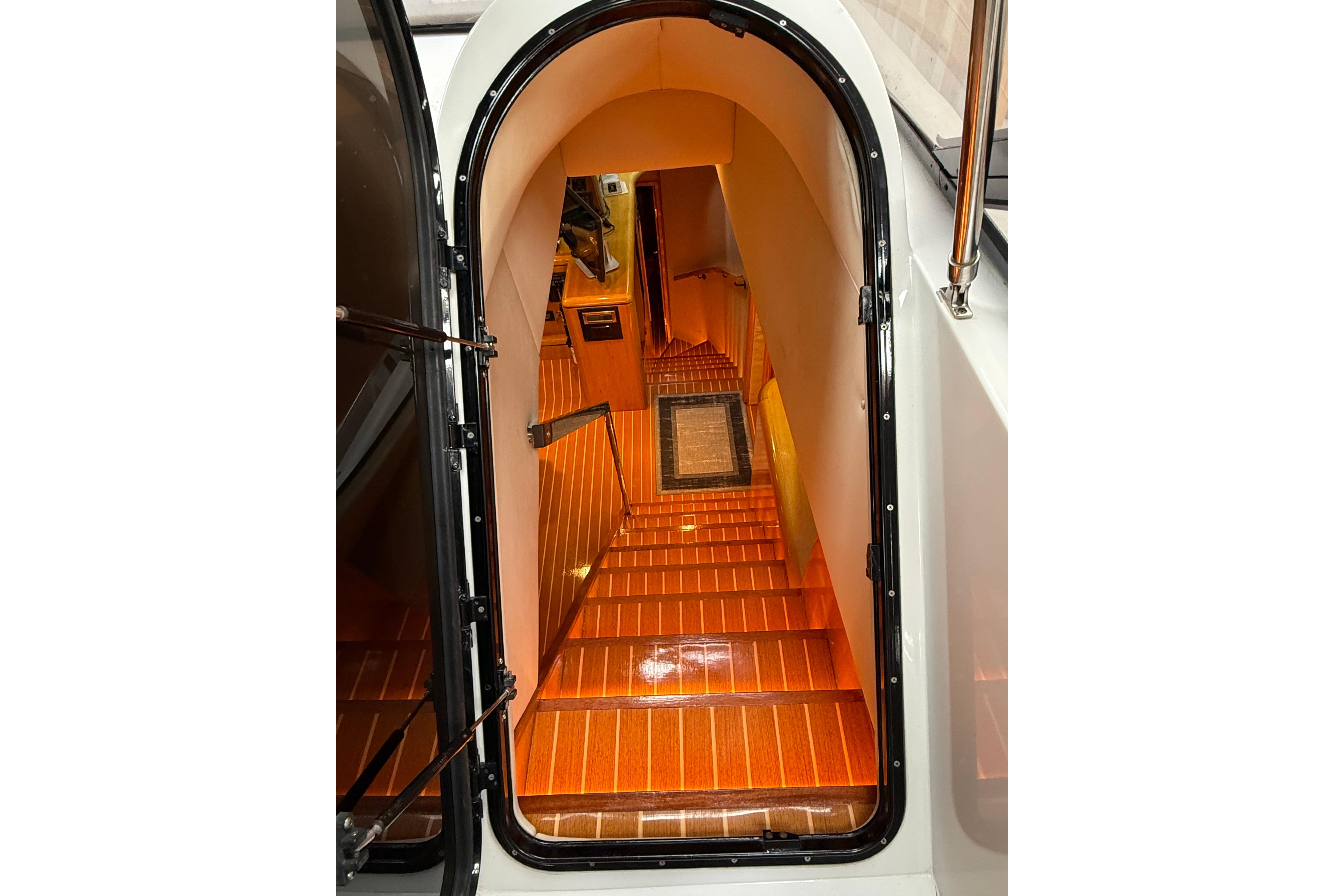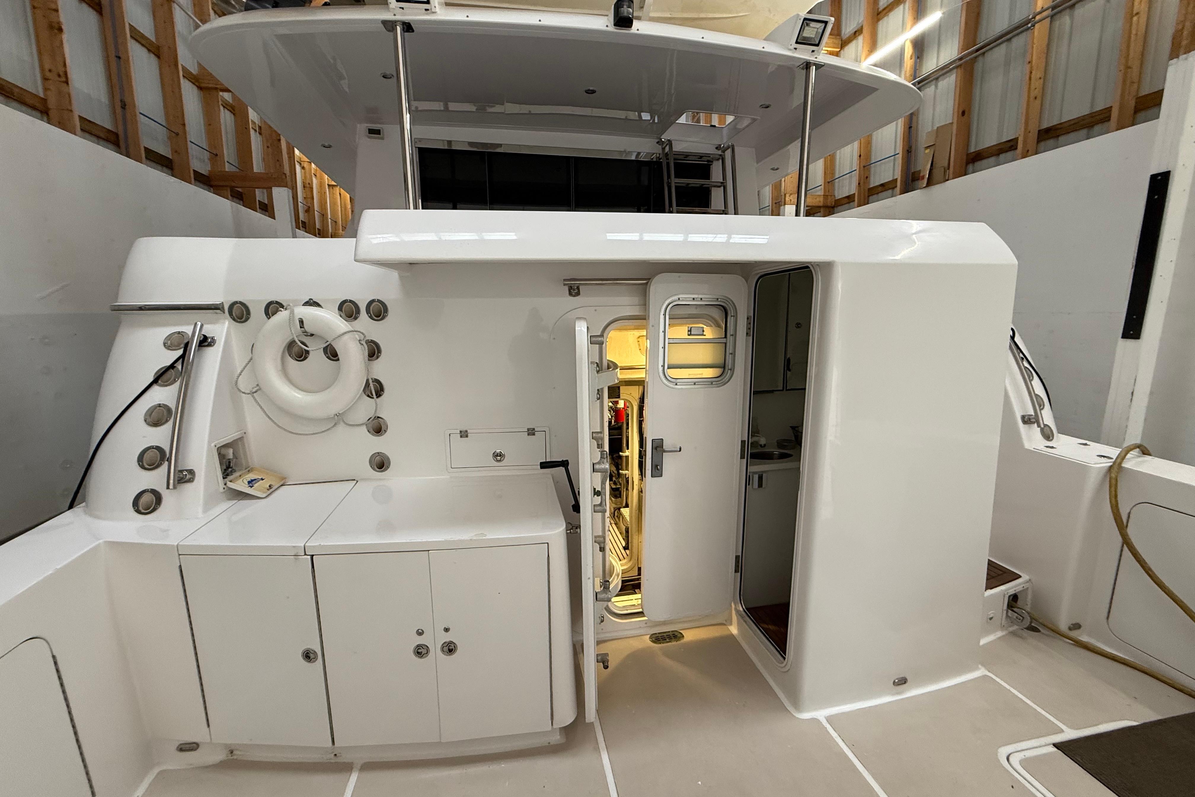 FULL WALK-IN STANDUP ENGINE ROOM WITH GREAT ACCESS AROUND THE TWIN 800HP 3406 CATERPILLER MAINS. WELL EQUIPPED MECHANICAL AREAS WITH 2 GENERATORS, 2 WATERMAKERS, NEW COMMERCIAL SIZED HOTWATER DIESEL FURNACE SYSTEM AND MANY MORE GREAT SYSTEMS.