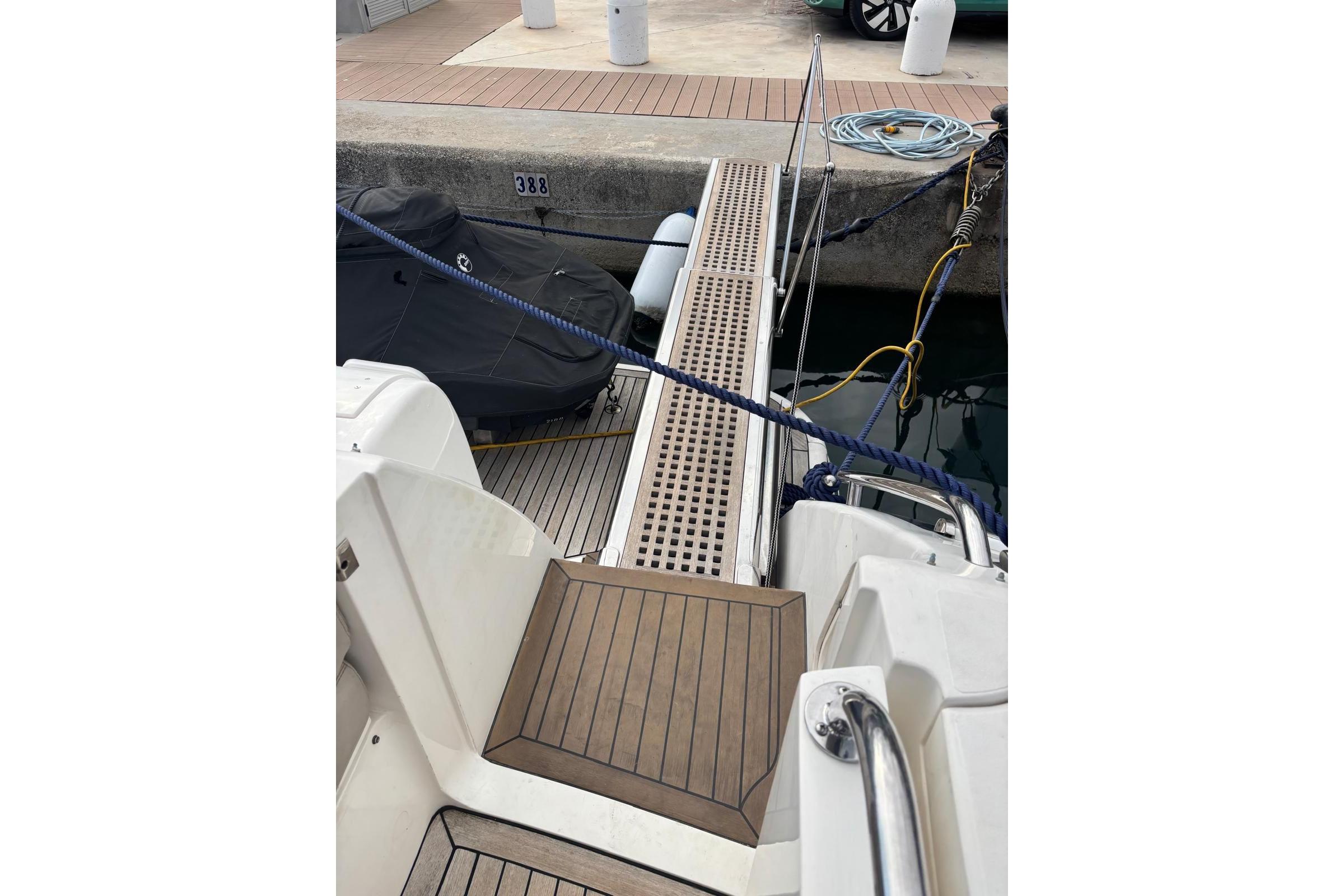 Additional Description* Self-draining * Teak-laid deck, steps to side deck and stairway to flybridge * Upholstered seat * Hatch on gas strut to lazarette stowage, hatch to engine room access * Life raft stowage locker * Cockpit cover * Twin transom doors leading to bathing platform * Side lockers for fenders * Twin electric-powered sternline docking winches in port and starboard coaming lockers, with rope storage * Locker housing 220/240v shore support inlets and shoreline stowage * Stainless steel handrails * Transom bathing platform with foldaway swimming ladder, hot and cold shower, deck light and concealed electro-hydraulic crane for tender launching and retrieval * Electro-hydraulic telescopic passerelle (2.8m – with remote control). FLYBRIDGE * Helm position with repeat engine instrumentation and controls * VHF/RT * Audible and visual alarms for bilge pump and fuel filter as well as engine systems * Log, depth and GPS repeaters * Folding chart table * Large U-shaped seating area for 6/7 with table * Wet bar with refrigerator and electric barbecue, storage, sink and hot and cold water supply * Loudspeakers linked to saloon hi-fi * Access from cockpit via GRP hatch, forward access from saloon via door * Wind deflector screens * Stainless-steel handrails * Deck-level lighting * Instrument and seat covers * Twin matching whip aerials for VHF/RT and radio * Bronze perspex screen across aft end of flybridge * Sunbed cushions * Optional flybridge crane (NB: if crane is fitted the perspex screen is not fitted and sun cushions are provided for the foredeck in place of the flybridge).