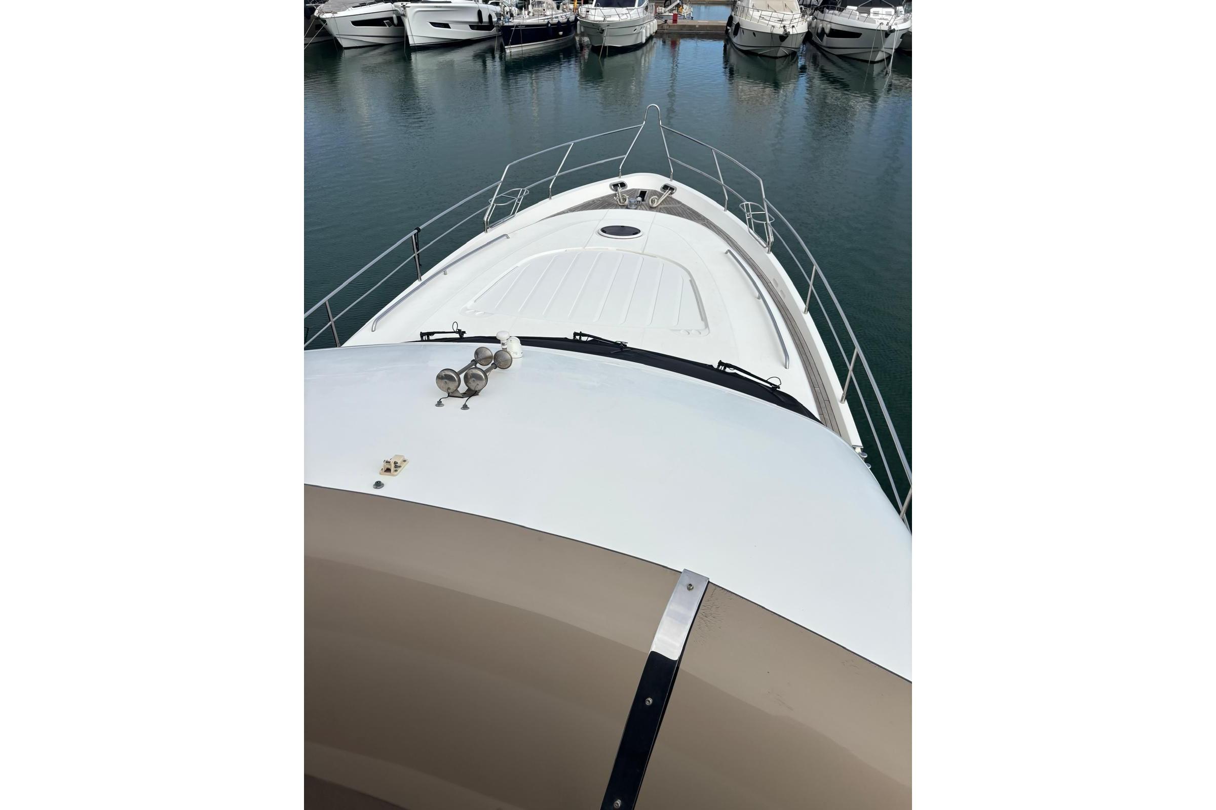 Additional DescriptionPOWER AND DRIVE SYSTEMS * Engine room soundproofed * High-volume air intakes * Engine room extractor fan with electronic time delay * Engine exhaust silencers and water-cooled exhausts * Solid engine beds integrally moulded with hull for strength and vibration absorption * Fore and aft engine room bulkheads integrally bonded * Engines flexibly mounted * Automatic fire extinguishers * Automatic and manual bilge pumps * Engine room lighting * Engine room access hatch and ladder * Propeller shafts in Temet with flexible shaft logs * 4-bladed Aquafoil propellers in nickel aluminium bronze * High-speed balanced rudders * Cathodic protection for sterngear * Sterngear, engines, fuel tanks, fillers etc, all electrically bonded * Hydraulic power-assisted steering system * Hydraulic engine and gear shift controls (electronic optional) * Bow thruster (11hp) with dual-station controls * Freshwater supply point in engine room.
