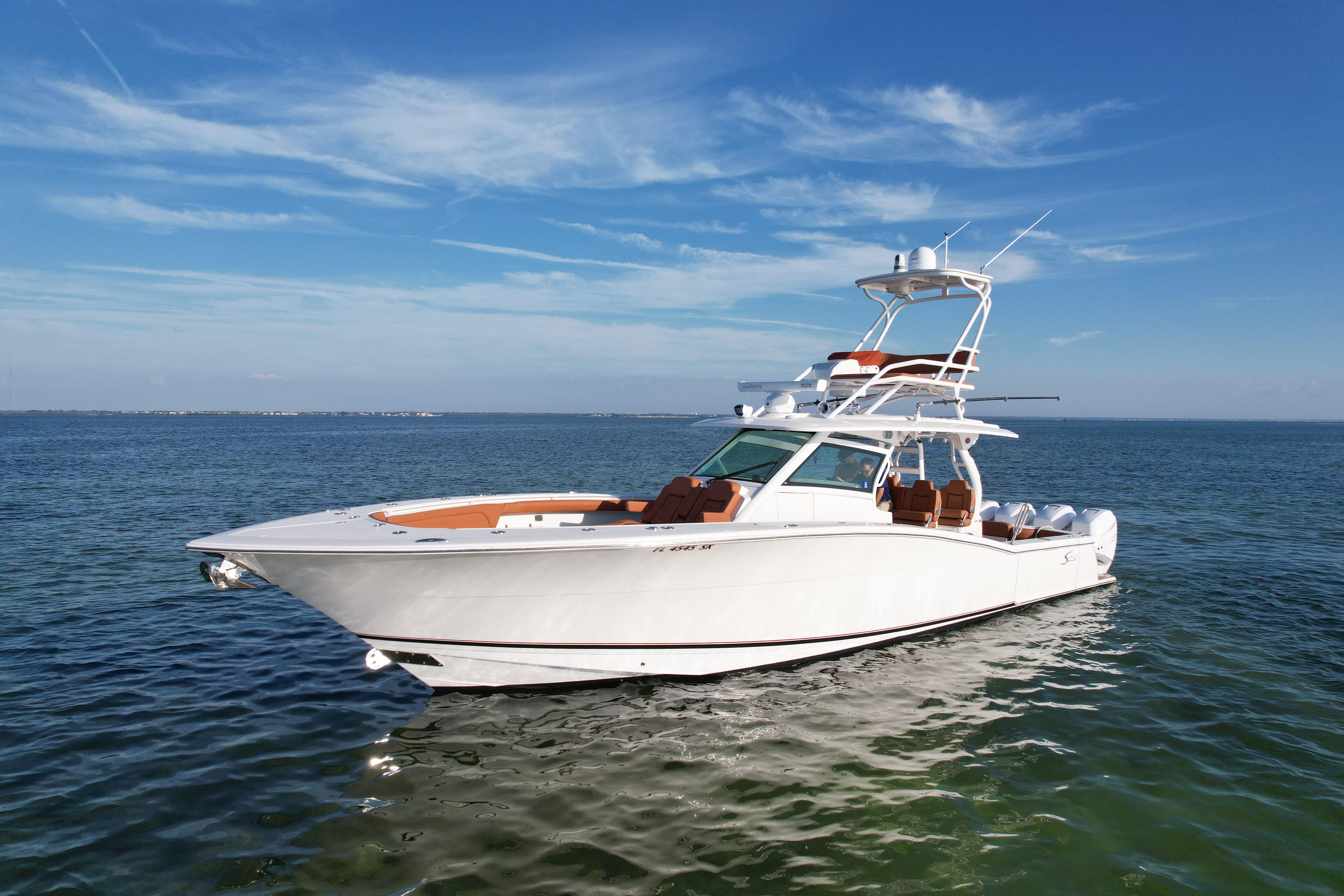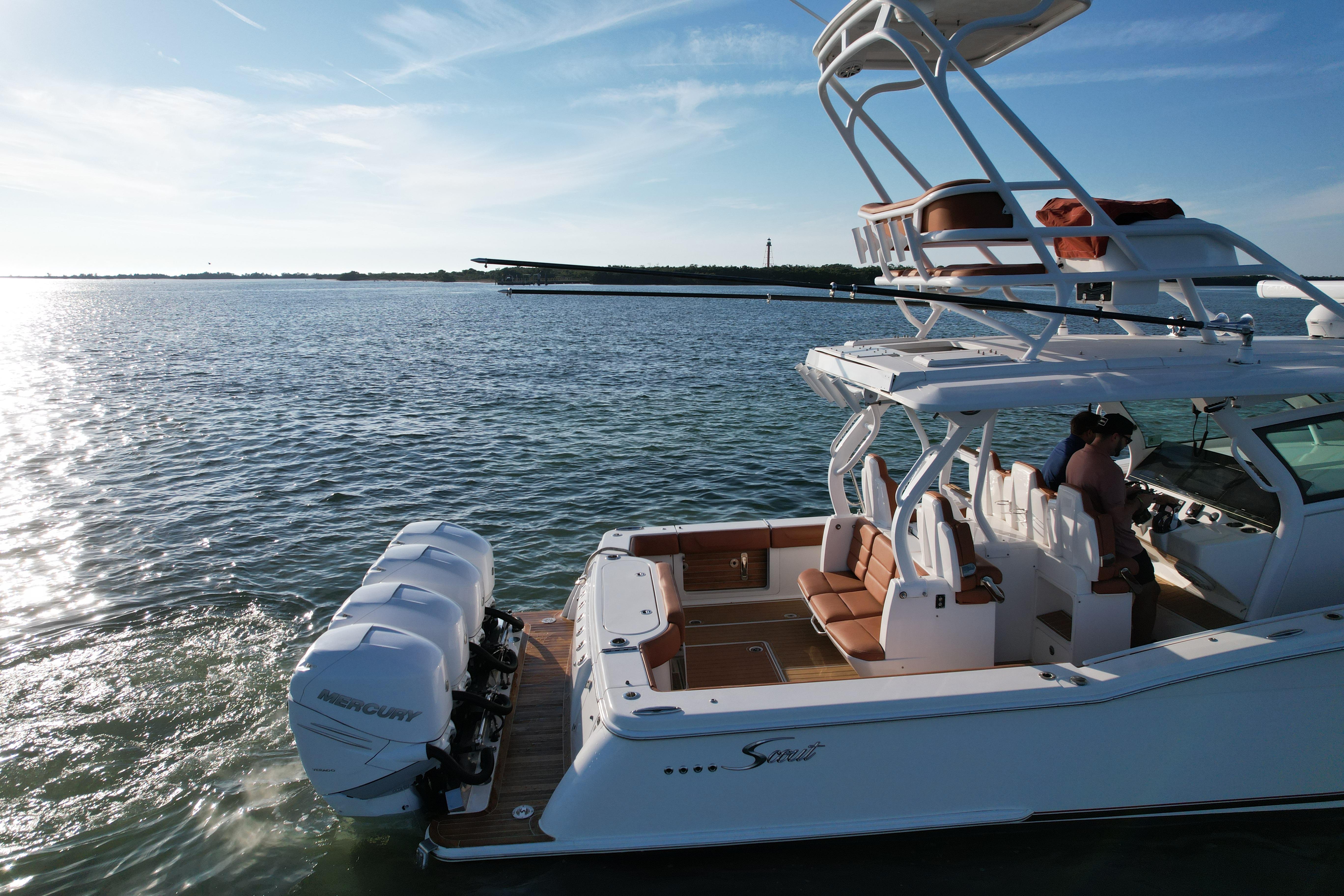 This stunning 2019 Scout 42 is the total package—luxury, performance, fishing capability, and offshore confidence all in one. Powered by Quad Mercury 400 Verados, this boat delivers exceptional speed, efficiency, and reliability. Loaded with premium options and the most desirable upgrades, she’s ready for long-range cruising, serious fishing, or family fun on the water.