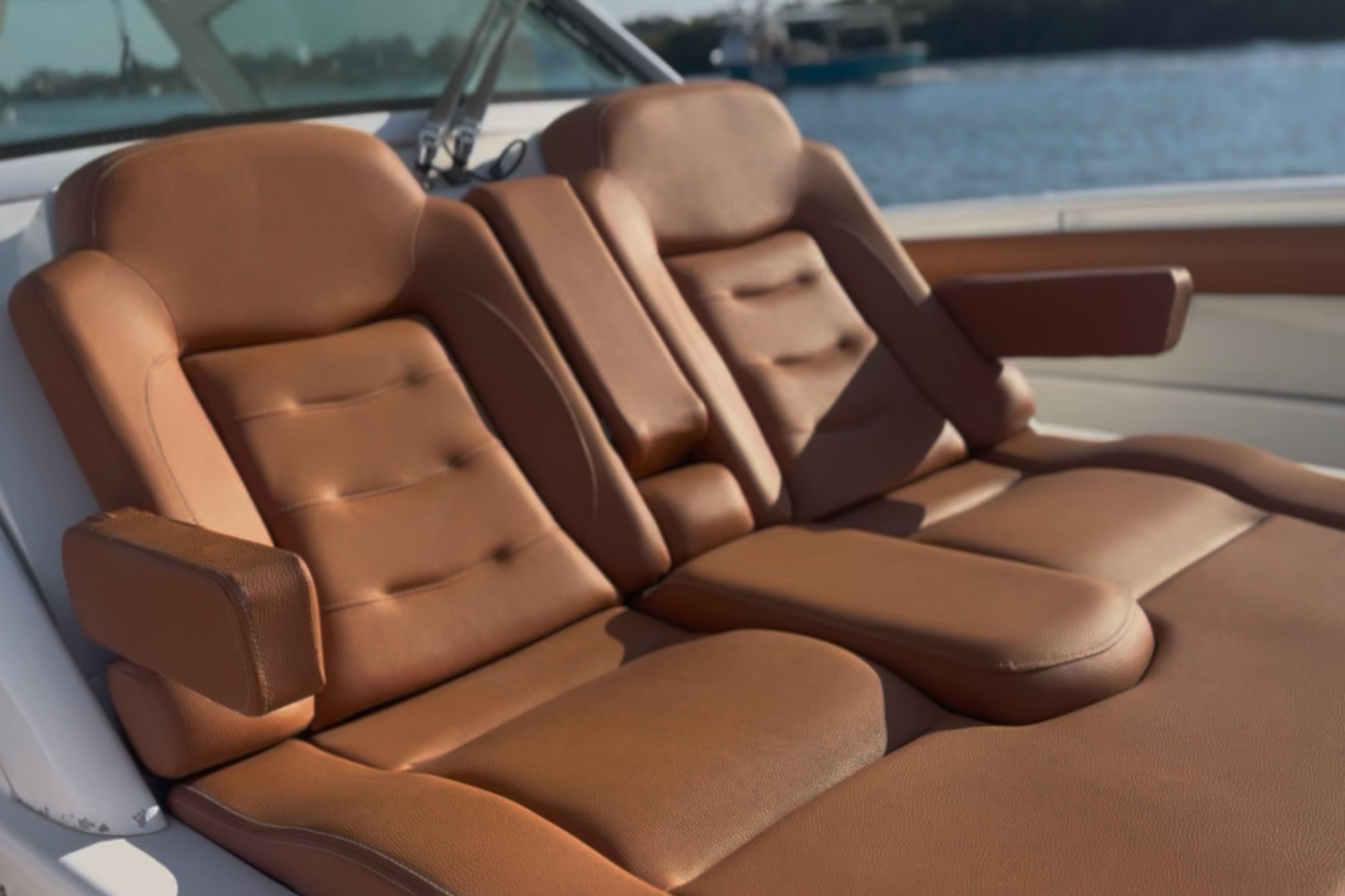 Thanks to the SeaKeeper, bow thruster, and joystick control, this boat handles like a dream whether you’re docking, running offshore, or anchoring at a sandbar. With its extended fuel range and quad Mercury power, you’re equipped for long days chasing fish or island hopping in comfort.