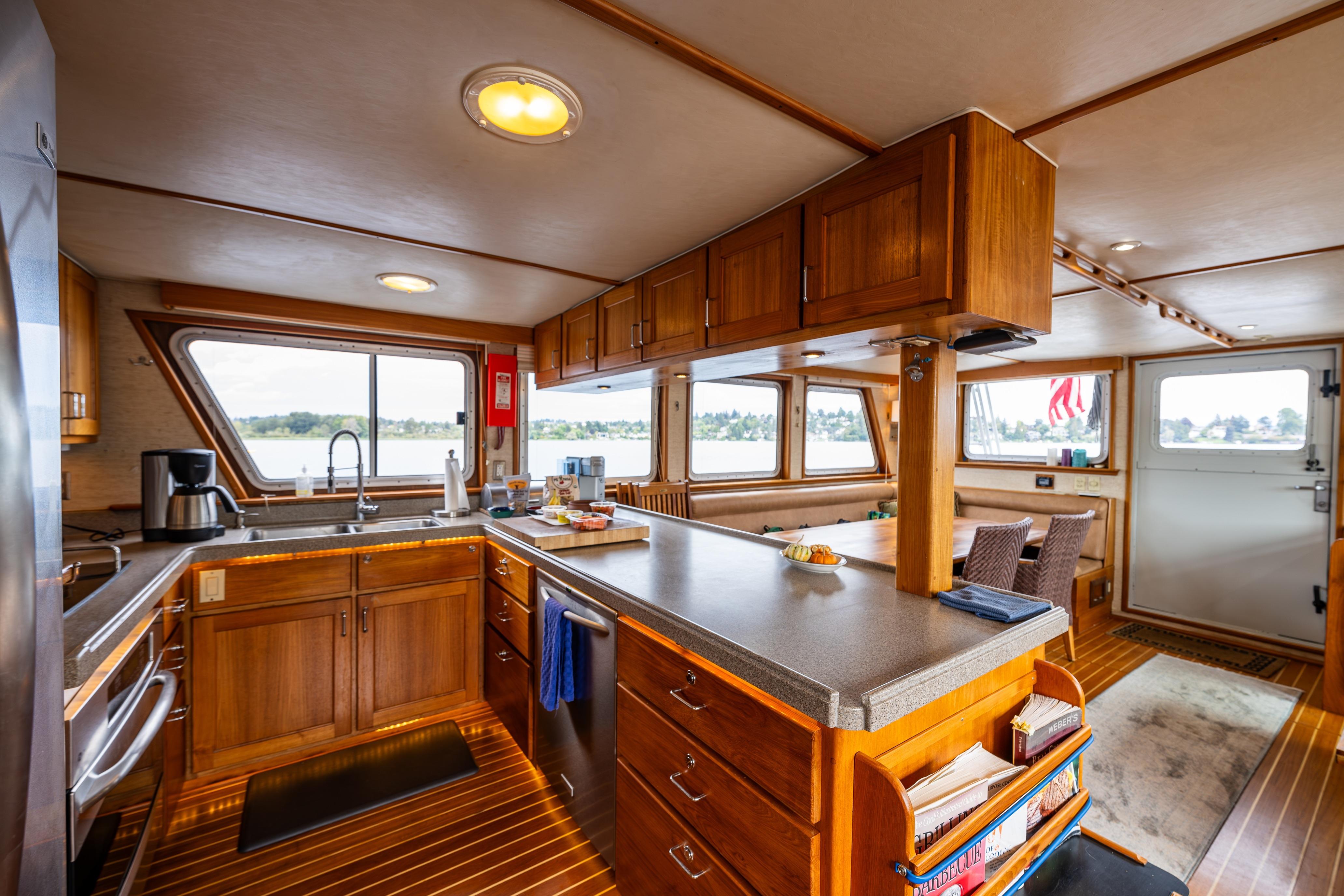 This yacht was designed and built to be an open water, long range cruising trawler so a cruising couple could get aboard and cruise to their dream destination without the fear of do we have enough boat for the task ahead.