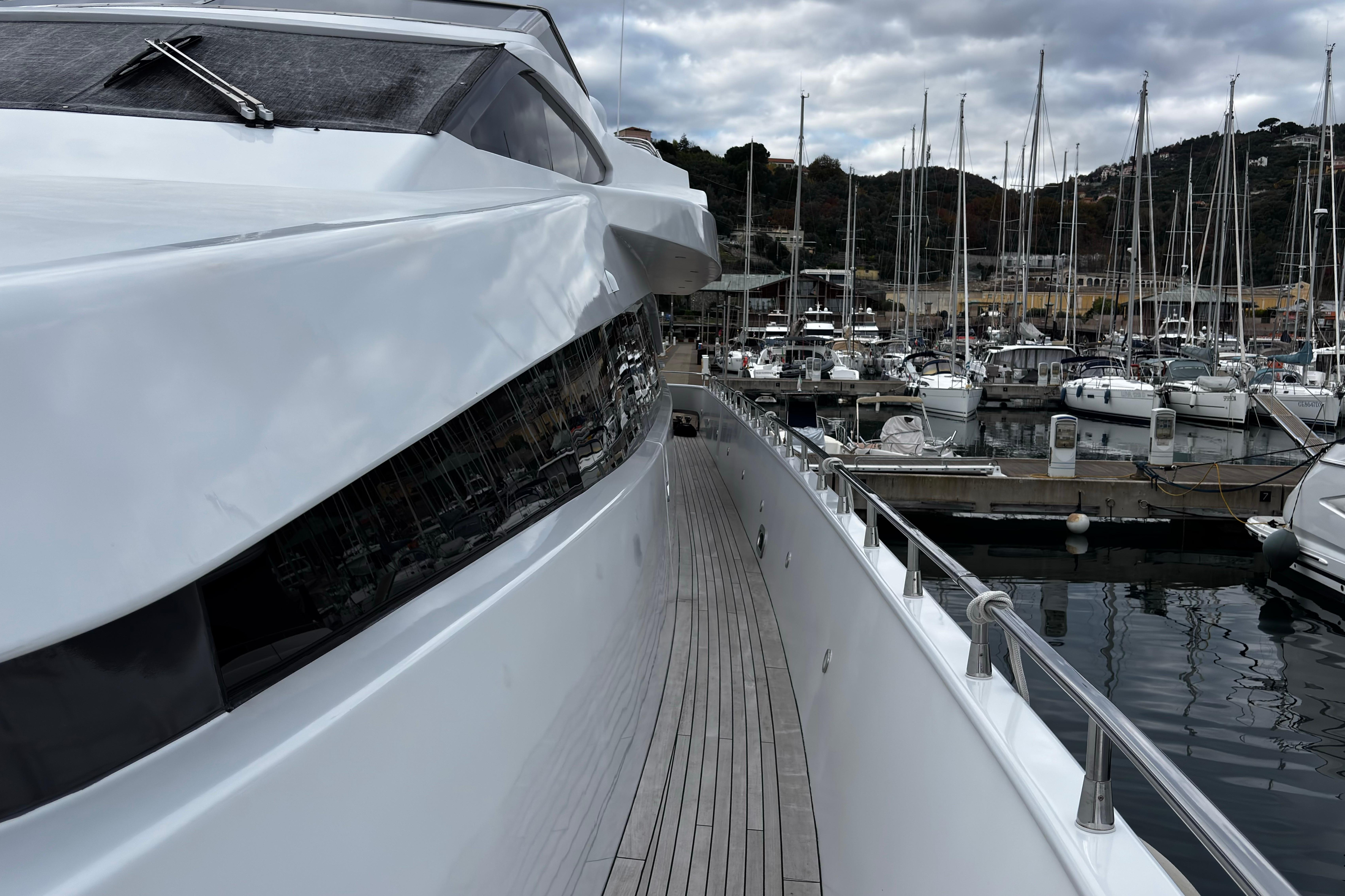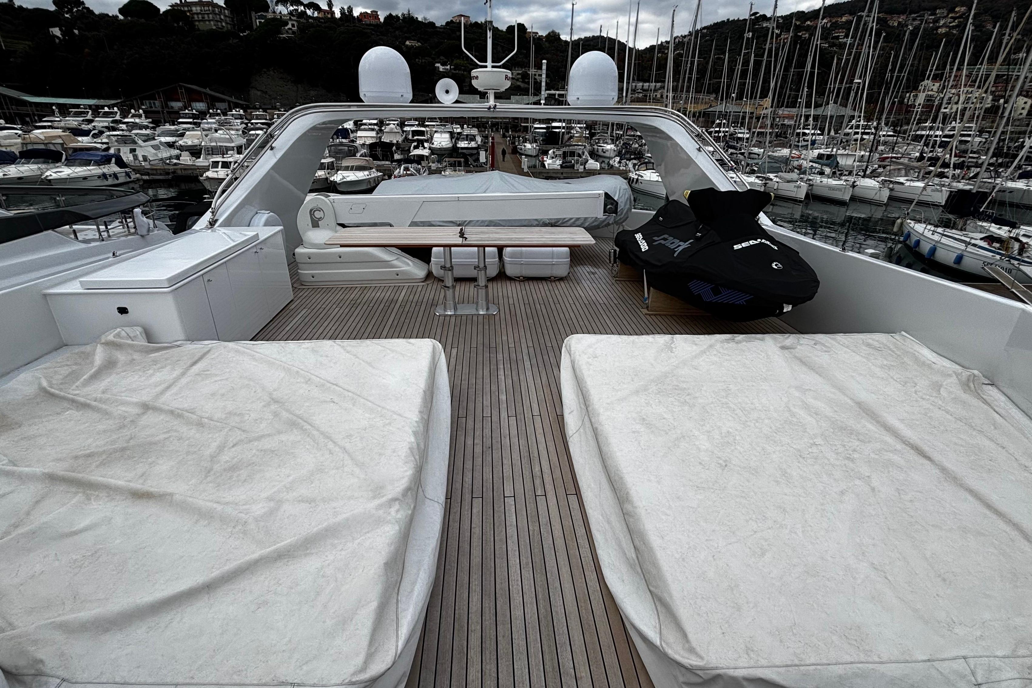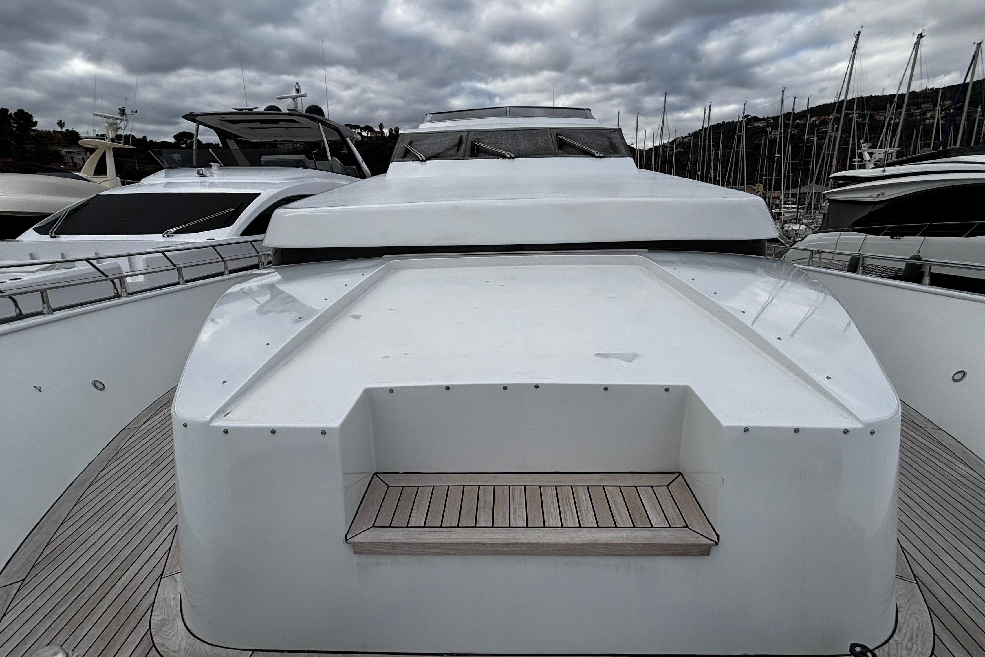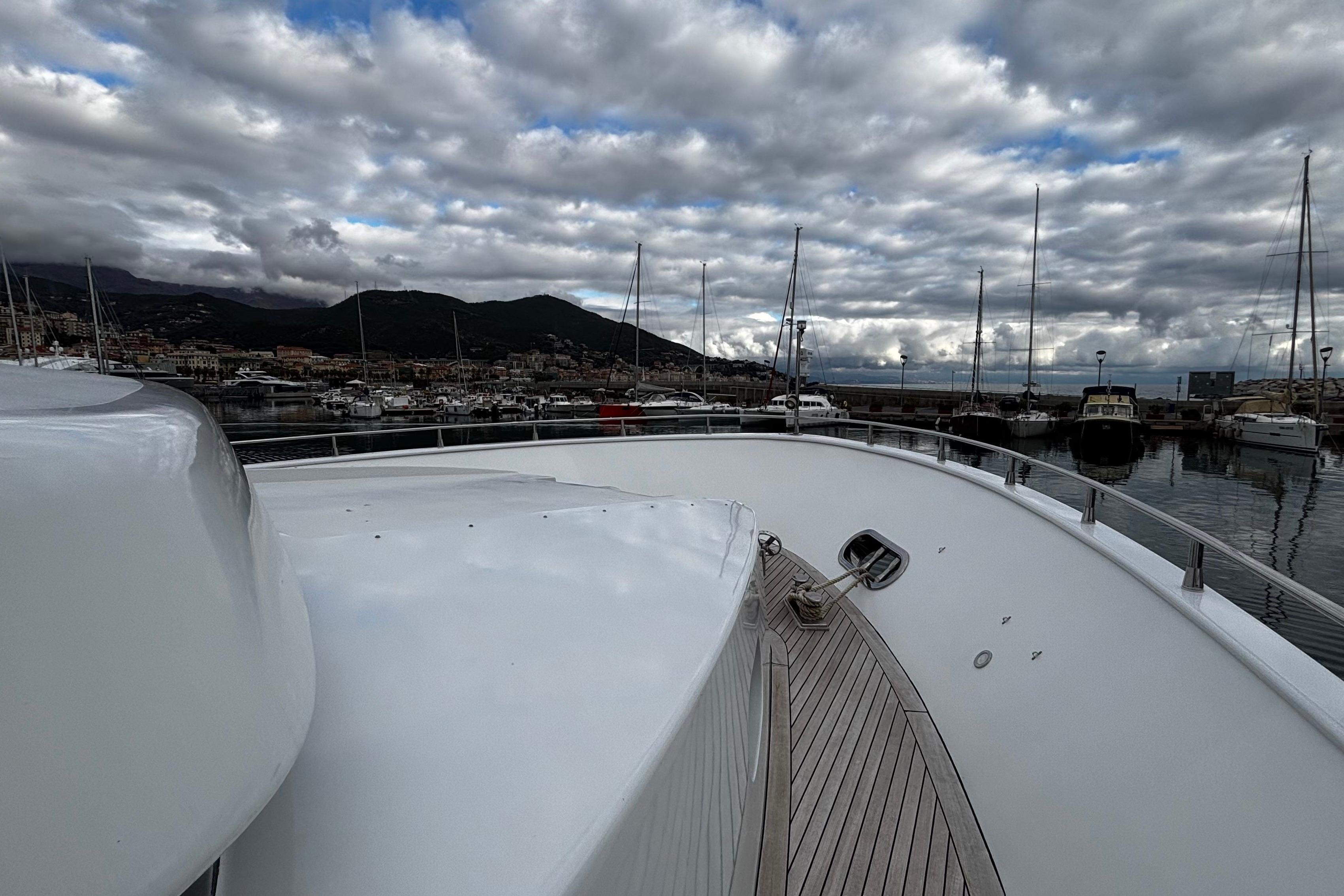 Nel 2025 è stato eseguito un refit completo che comprende verniciatura integrale dello scafo, rifacimento del teak sul flybridge e numerosi aggiornamenti tecnici ed estetici, portando la barca a uno stato di presentazione eccellente.
