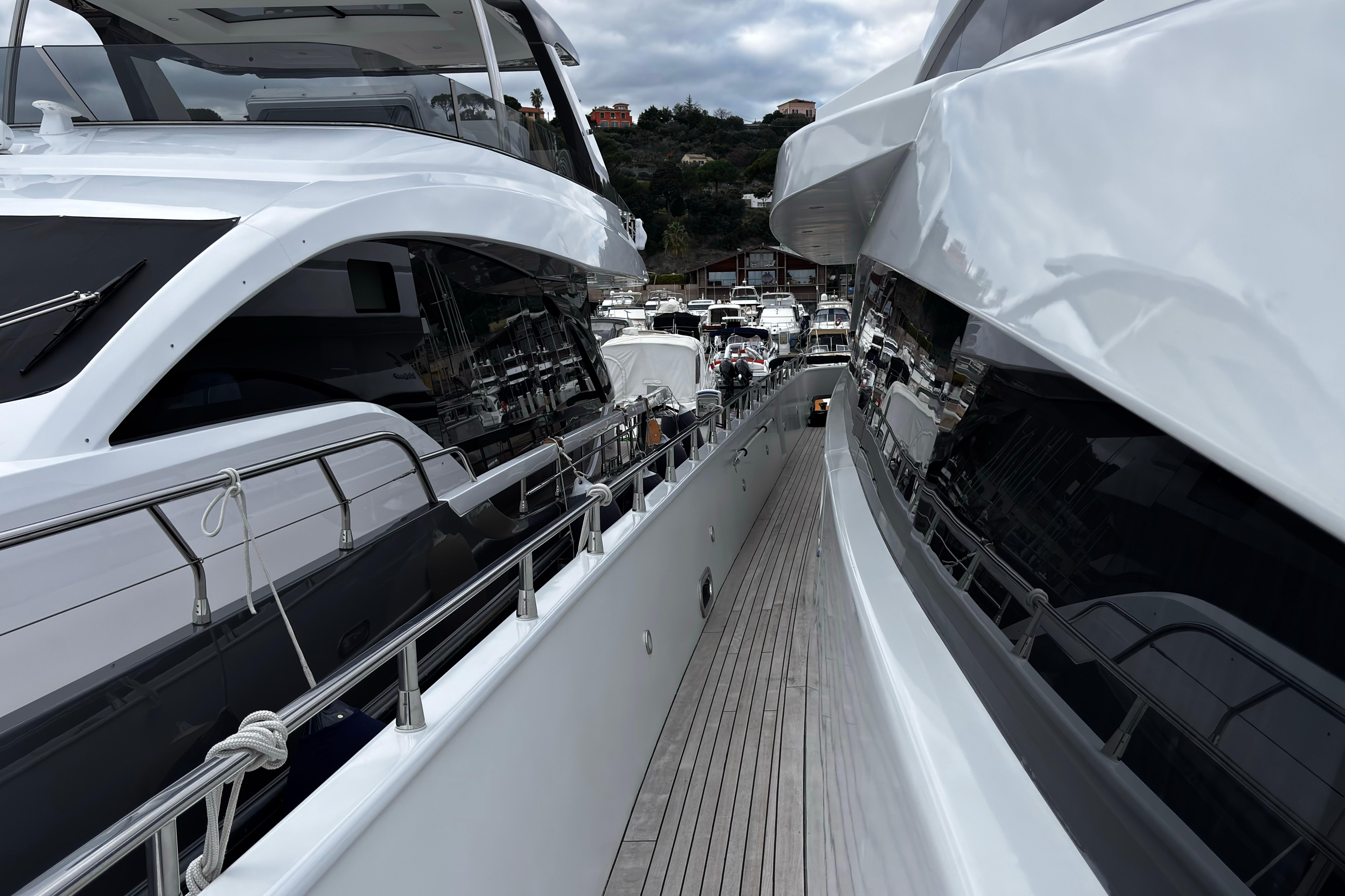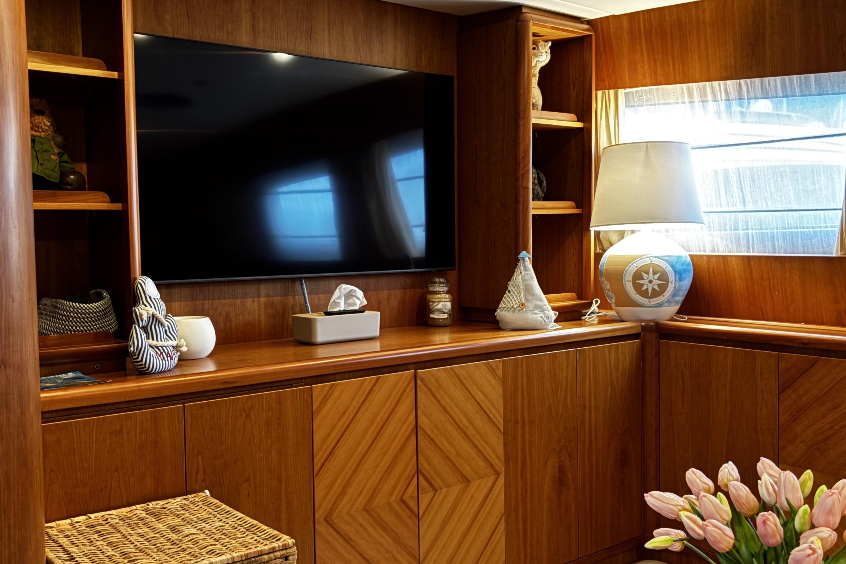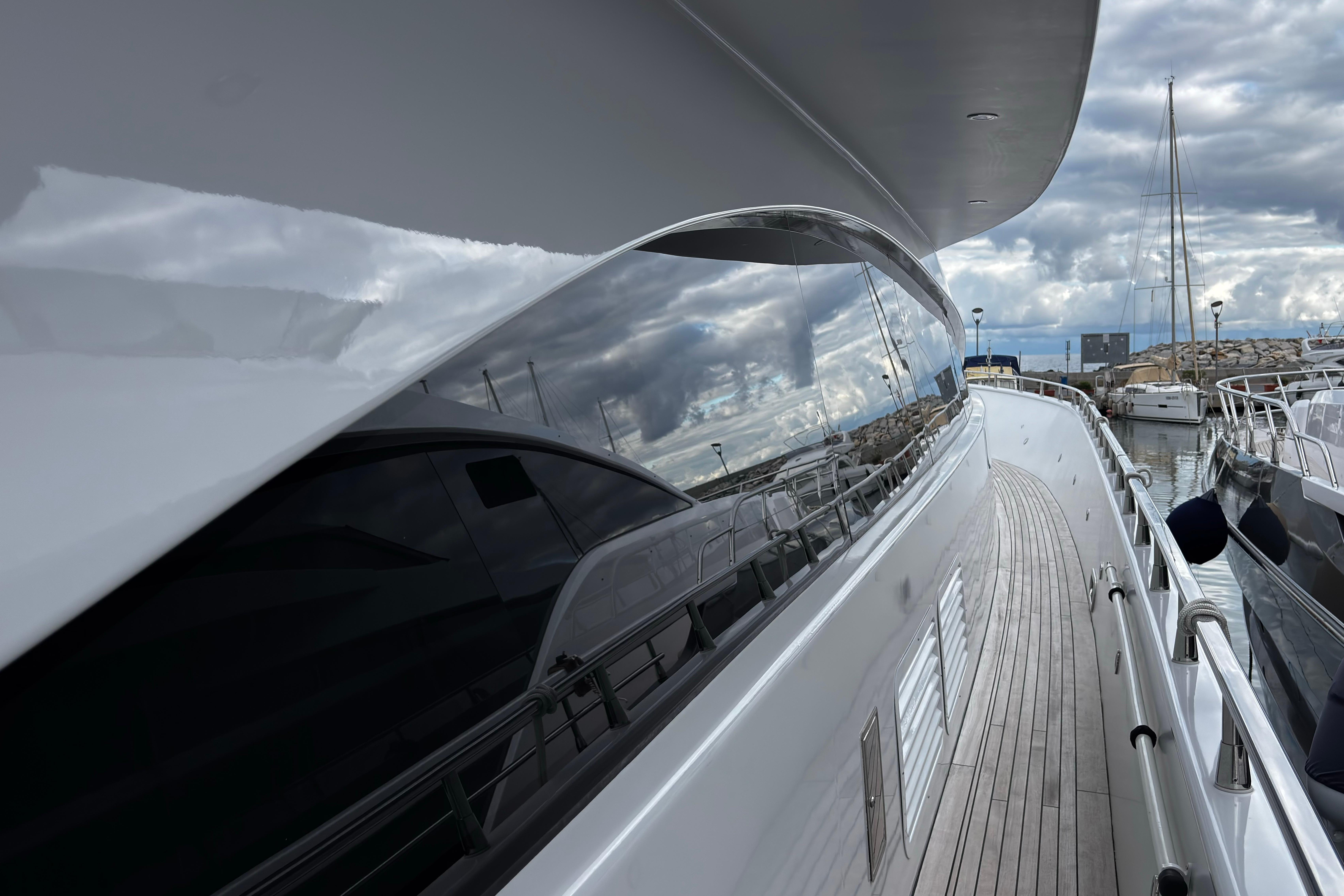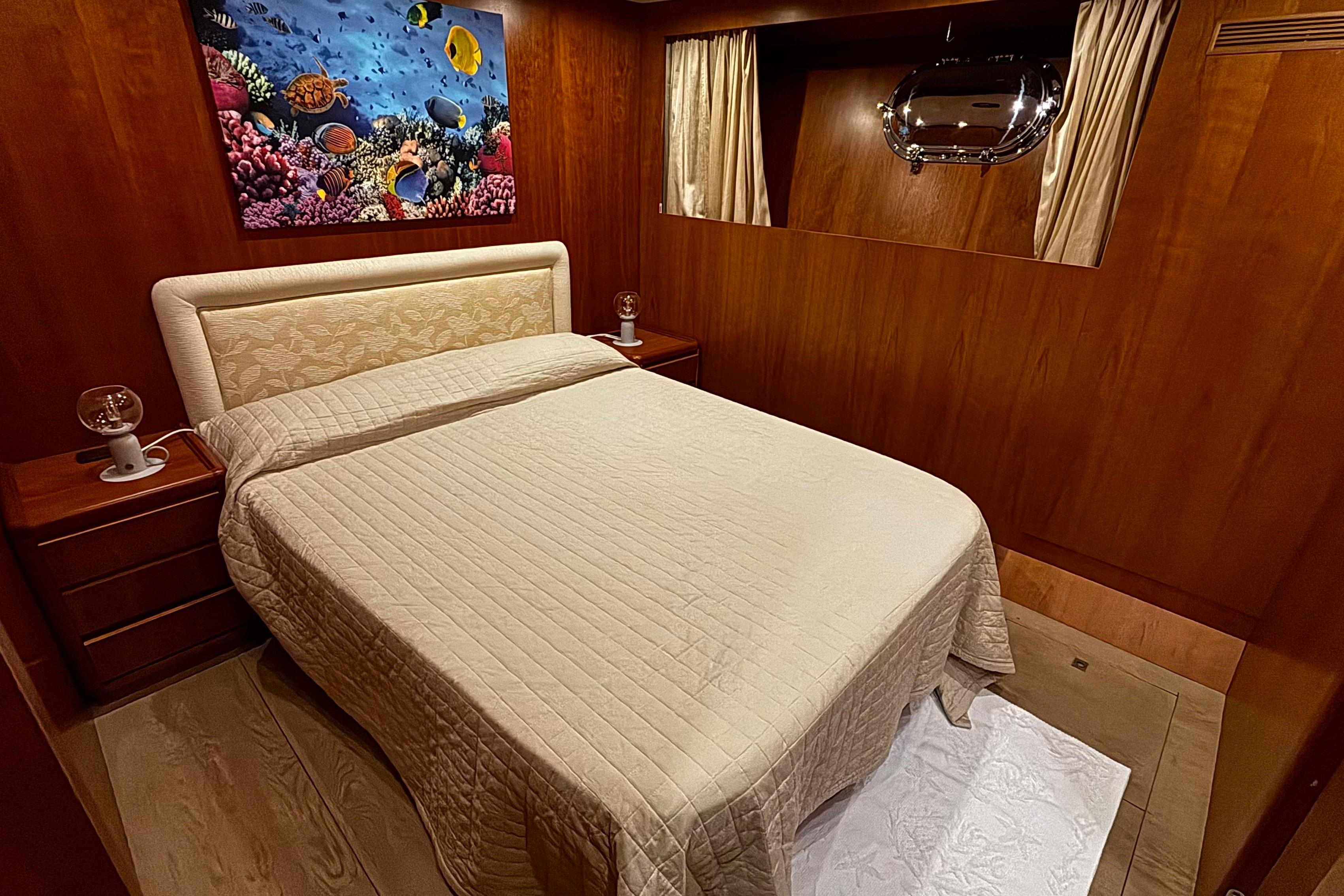 Nel 2025 è stato eseguito un refit completo che comprende verniciatura integrale dello scafo, rifacimento del teak sul flybridge e numerosi aggiornamenti tecnici ed estetici, portando la barca a uno stato di presentazione eccellente.