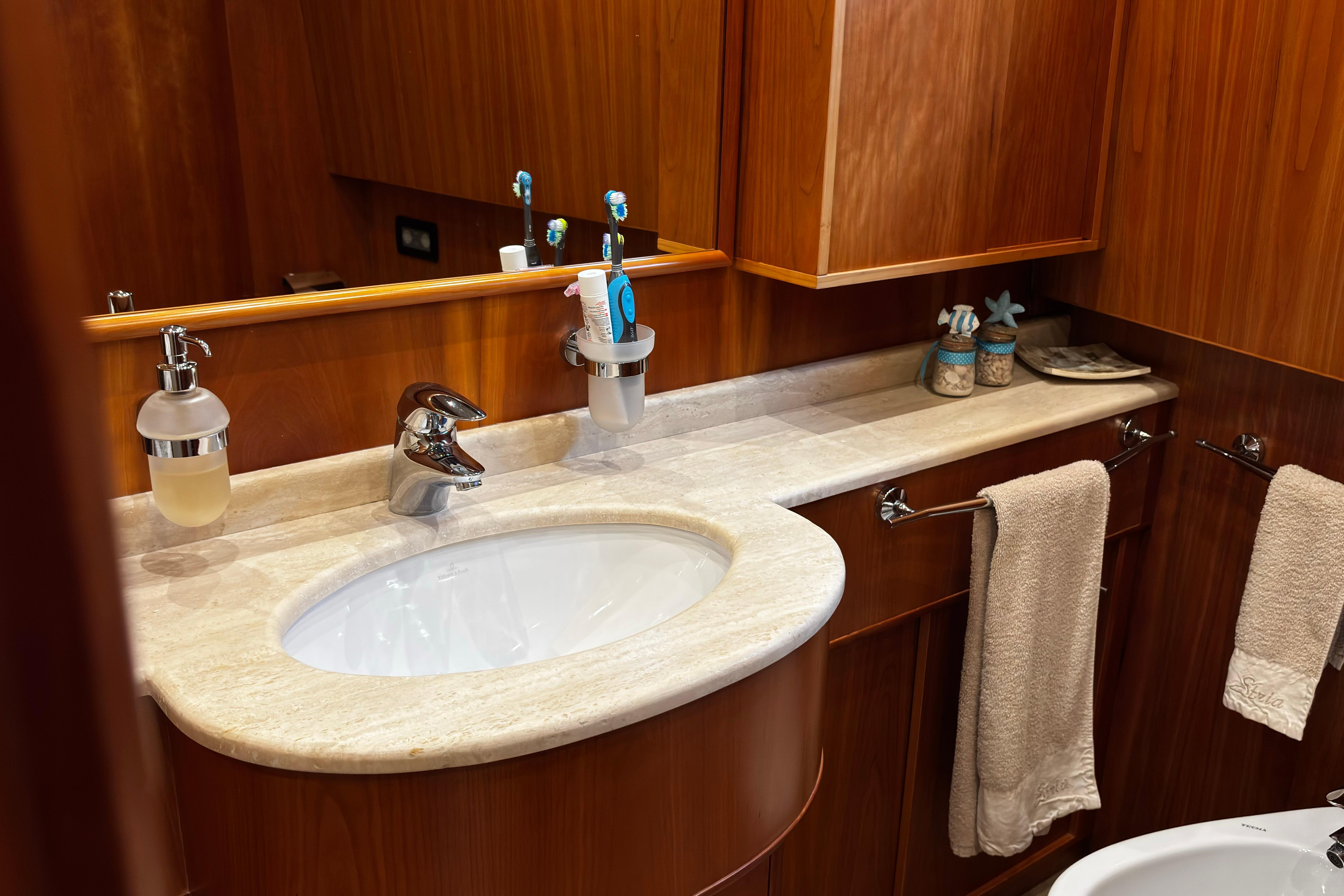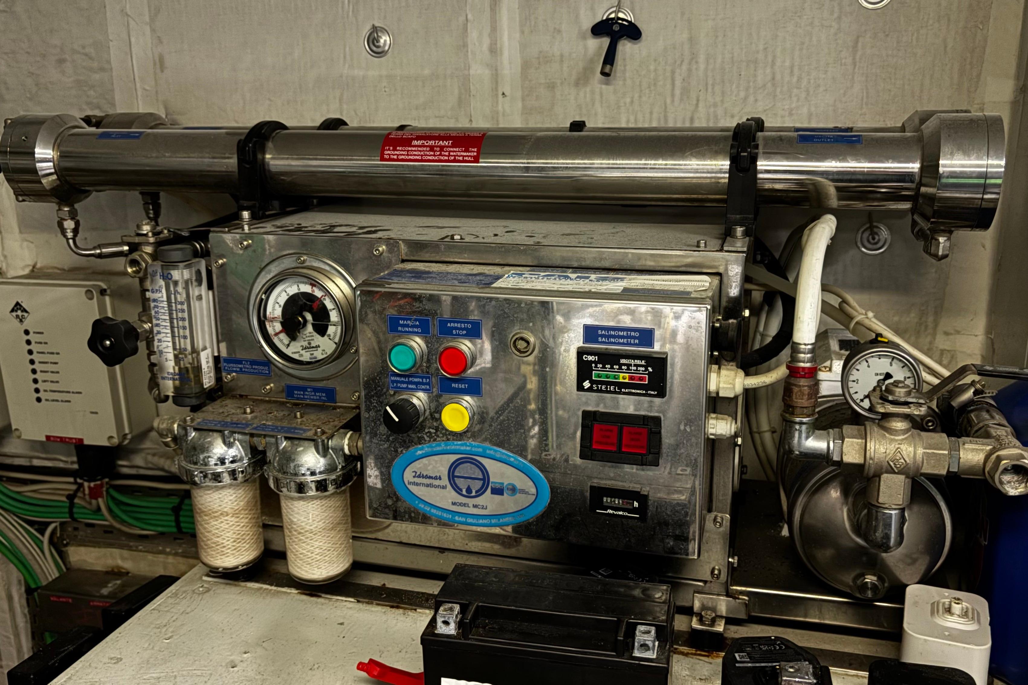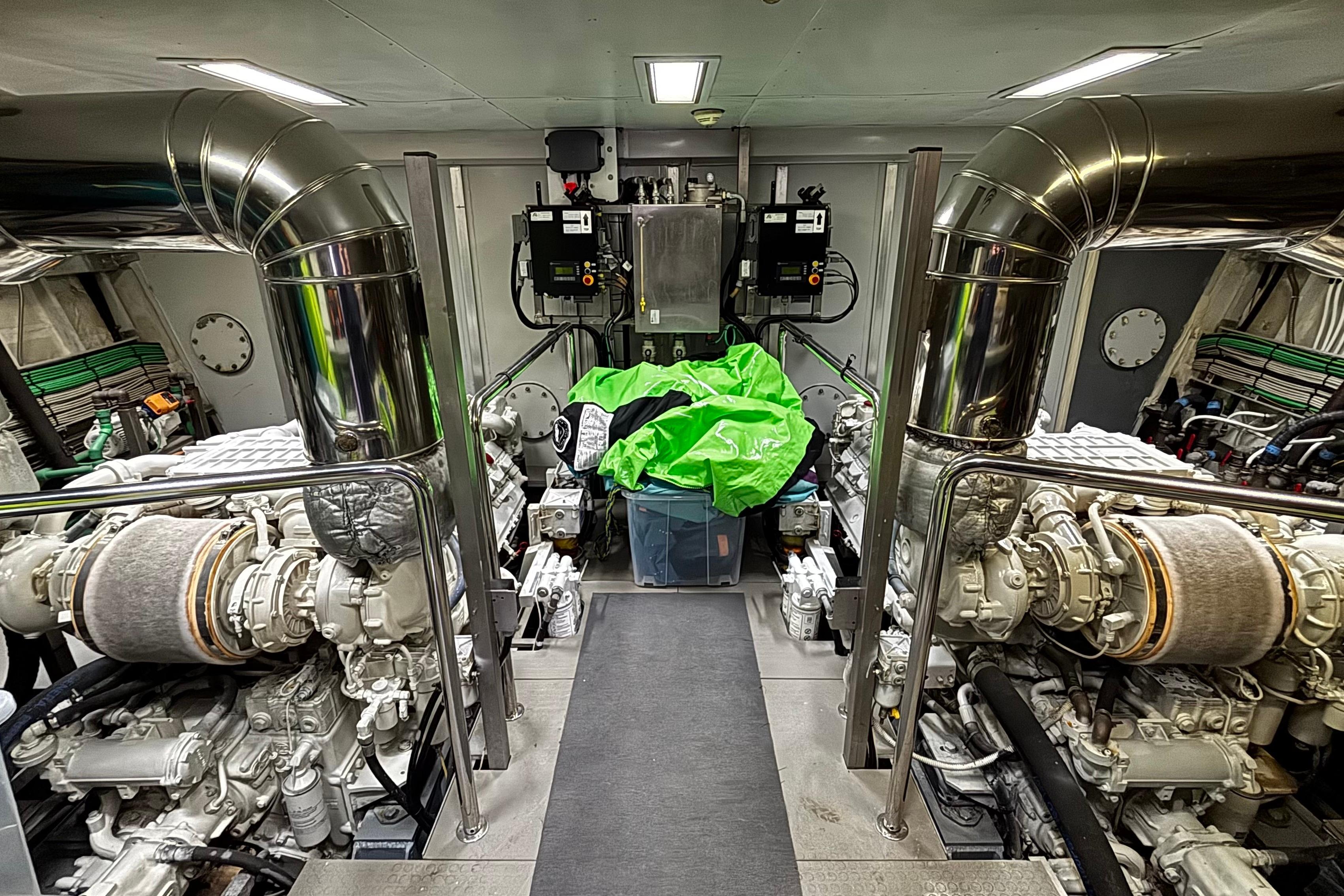 L’imbarcazione è stata utilizzata esclusivamente per uso privato ed è appartenuta a soli due armatori. La manutenzione è sempre stata eseguita con grande scrupolo: tagliandi ufficiali MAN ai due V12 da 1.550 HP (circa 2.500 ore), doppi generatori Kohler e dissalatore Idromar.