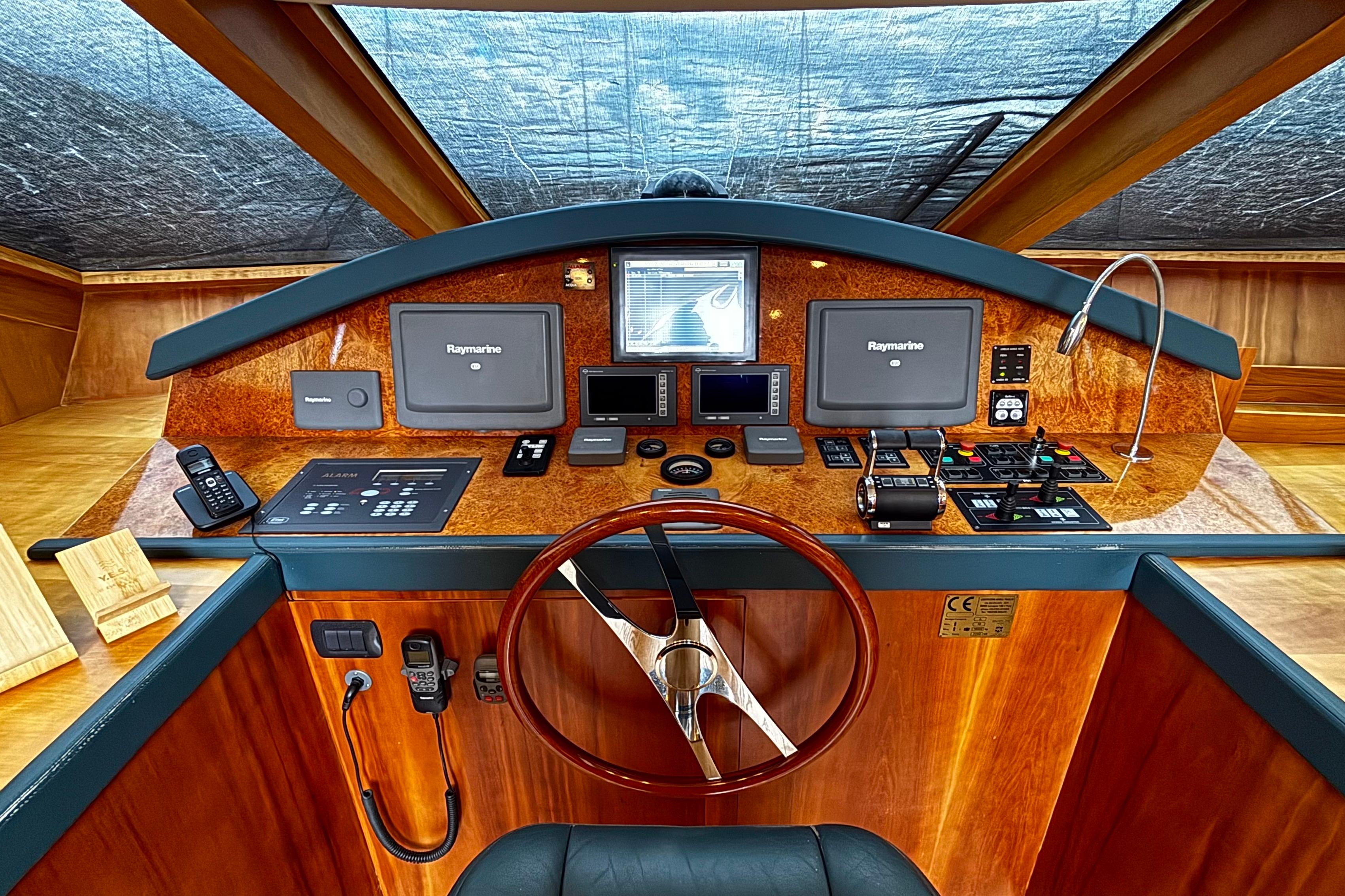 Strumentazione Raymarine completa: 3 plotter E120, doppi autopiloti, radar digitale, AIS, ecoscandaglio/log, stazione del vento, VHF, intercom.