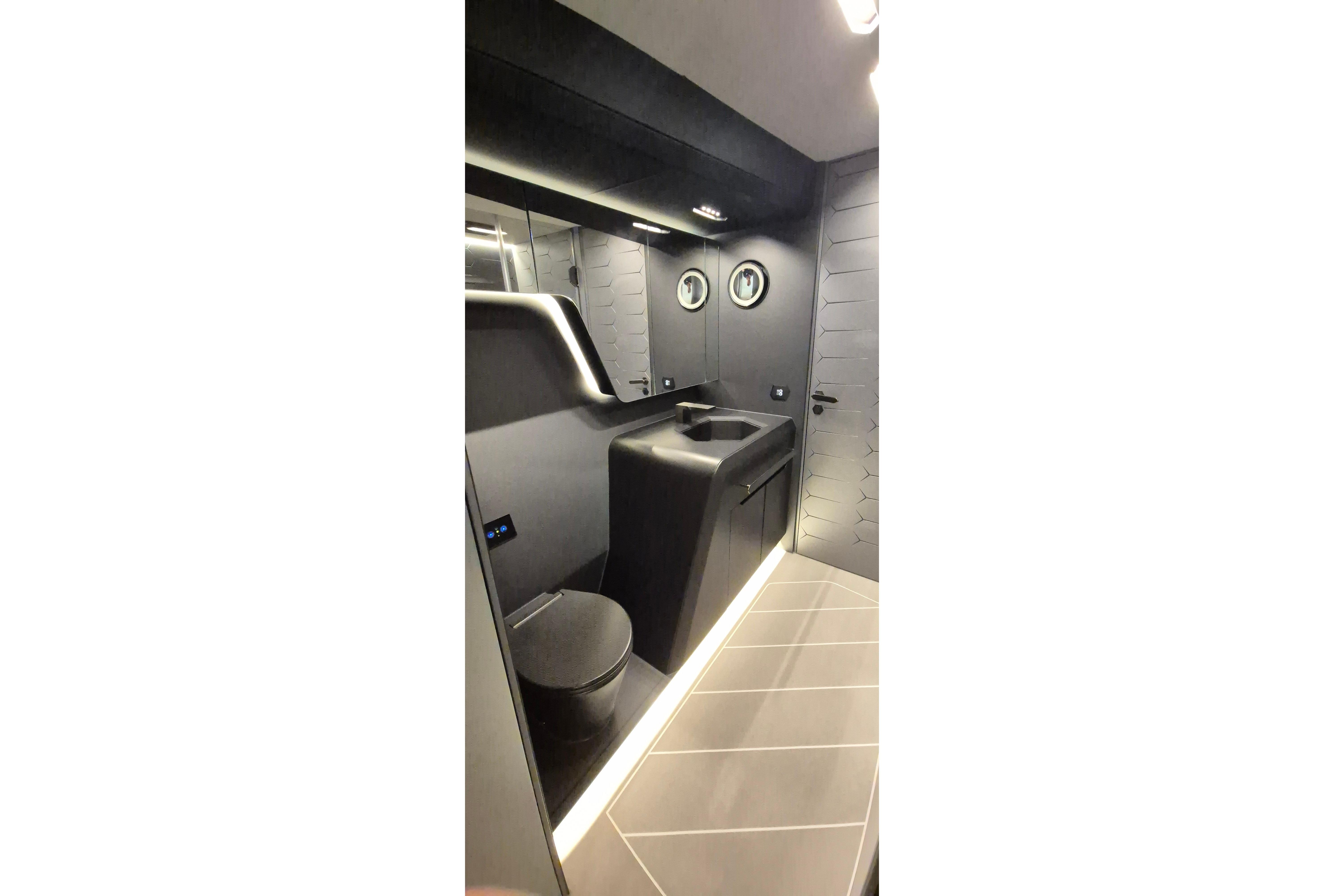 The Tecnomar for Lamborghini 63 is a yacht strongly inspired by Lamborghini’s design language, with sharp lines, a sporty silhouette and a cockpit reminiscent of the brand’s supercars.