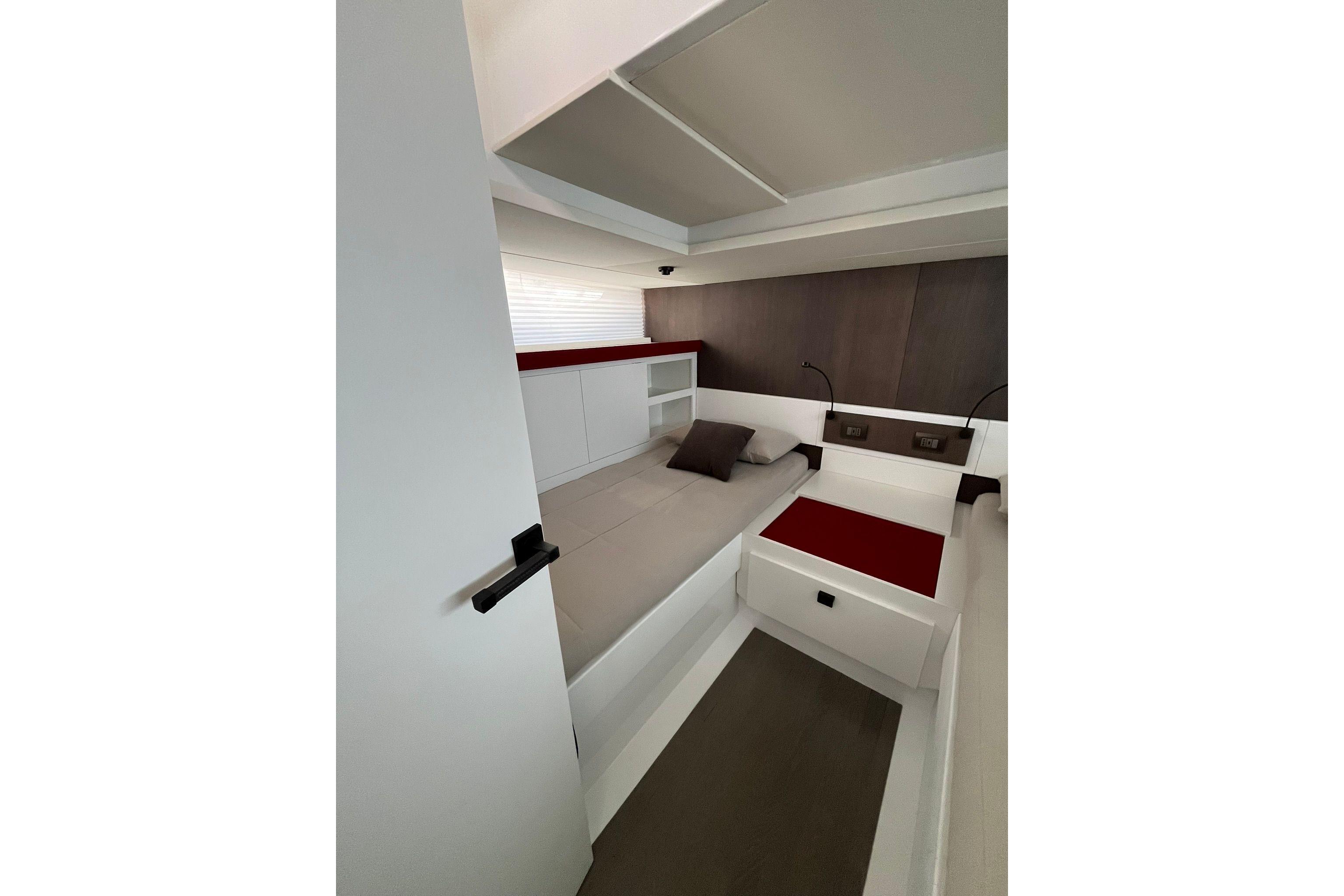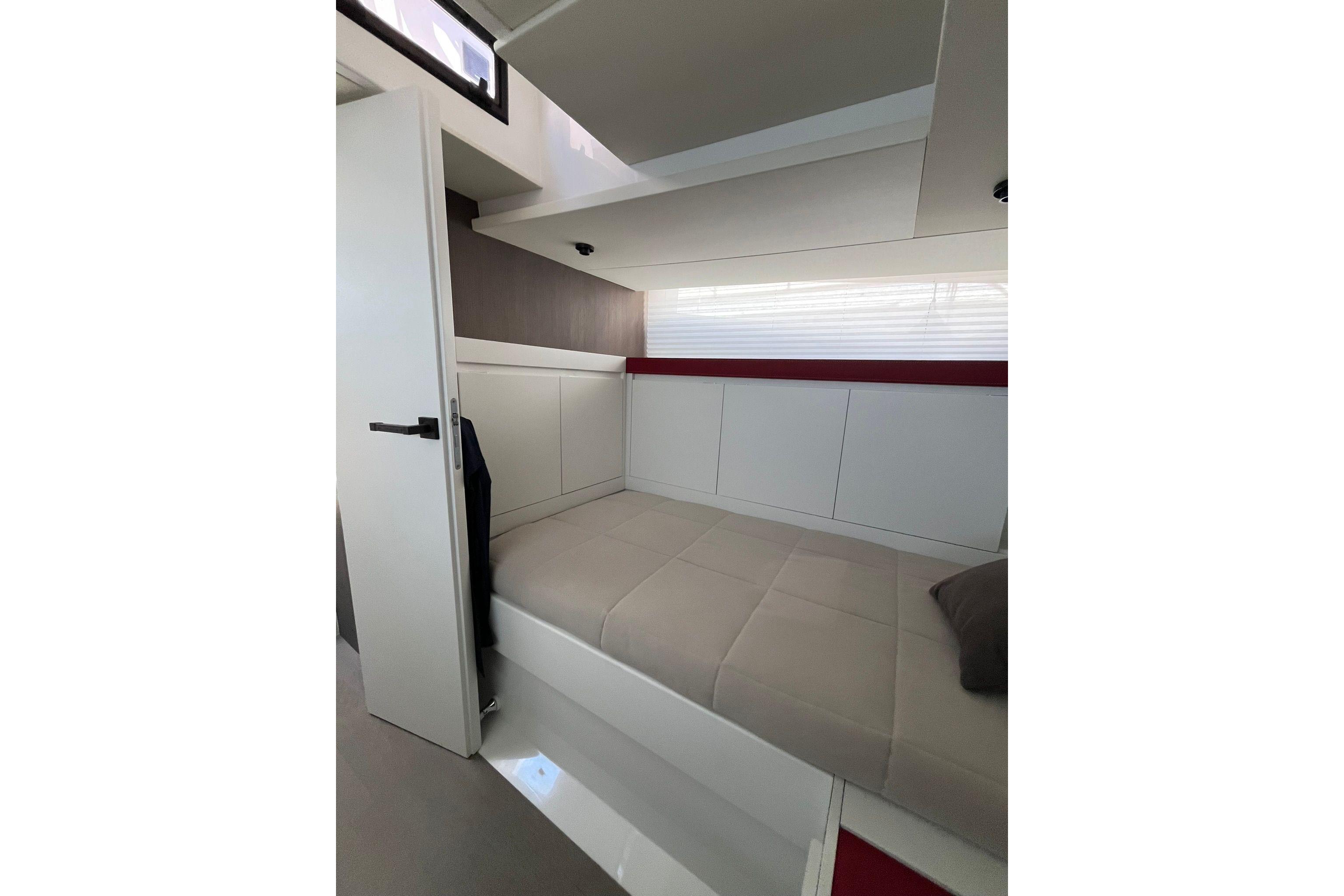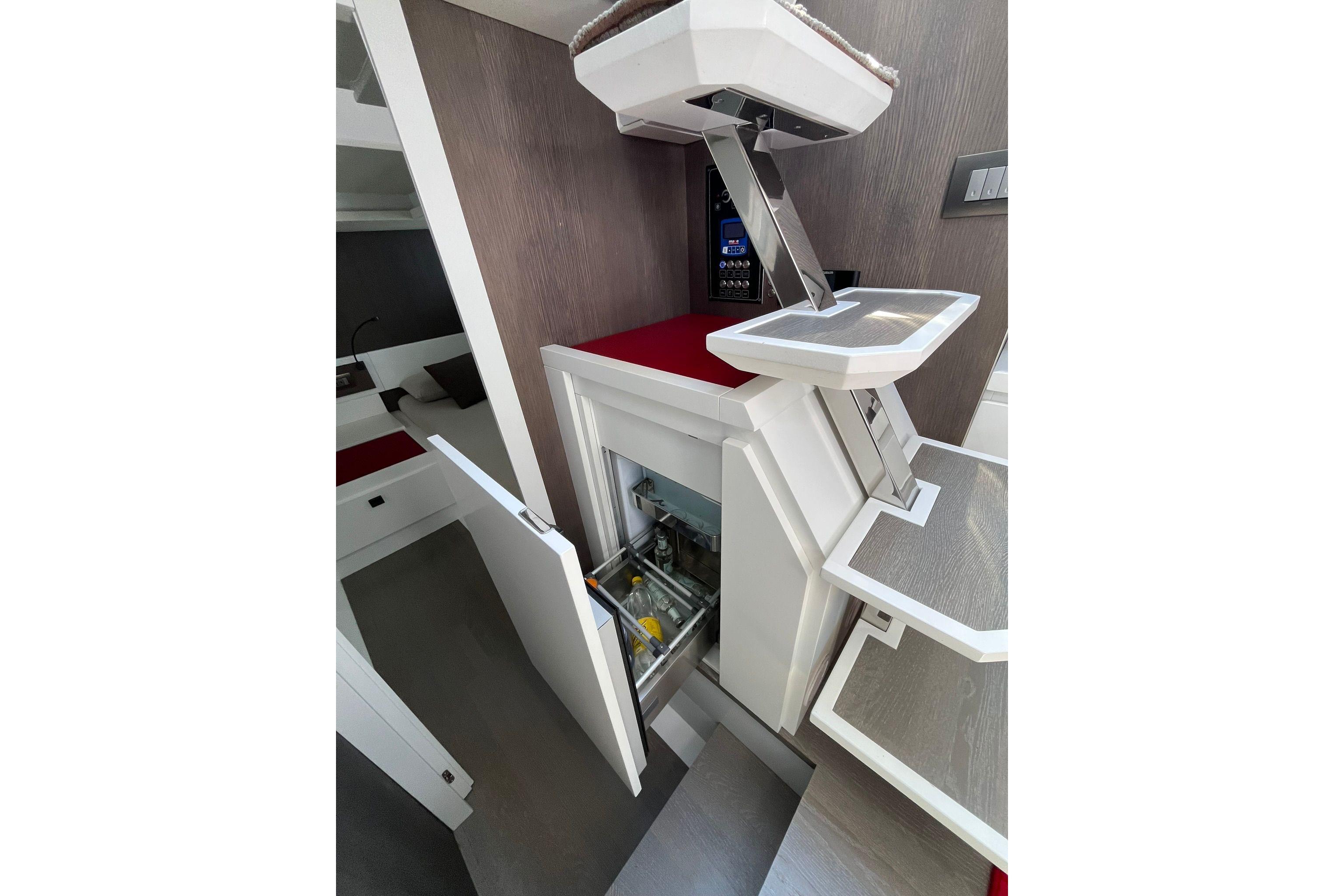 Barca con dotazioni premium: Cantina vino, telecamere a prua per salpare l’ancora direttamente dal posto guida, generatore 7 kw con inverter 1500 W, impianto stereo Fusion, luci di cortesia camminamento laterale, luci subacquee, frigo e ghiacciaia, grill e piano induzione nel pozzetto, plancetta affondanile elettroidraulica Besenzoni e tanti altri optional