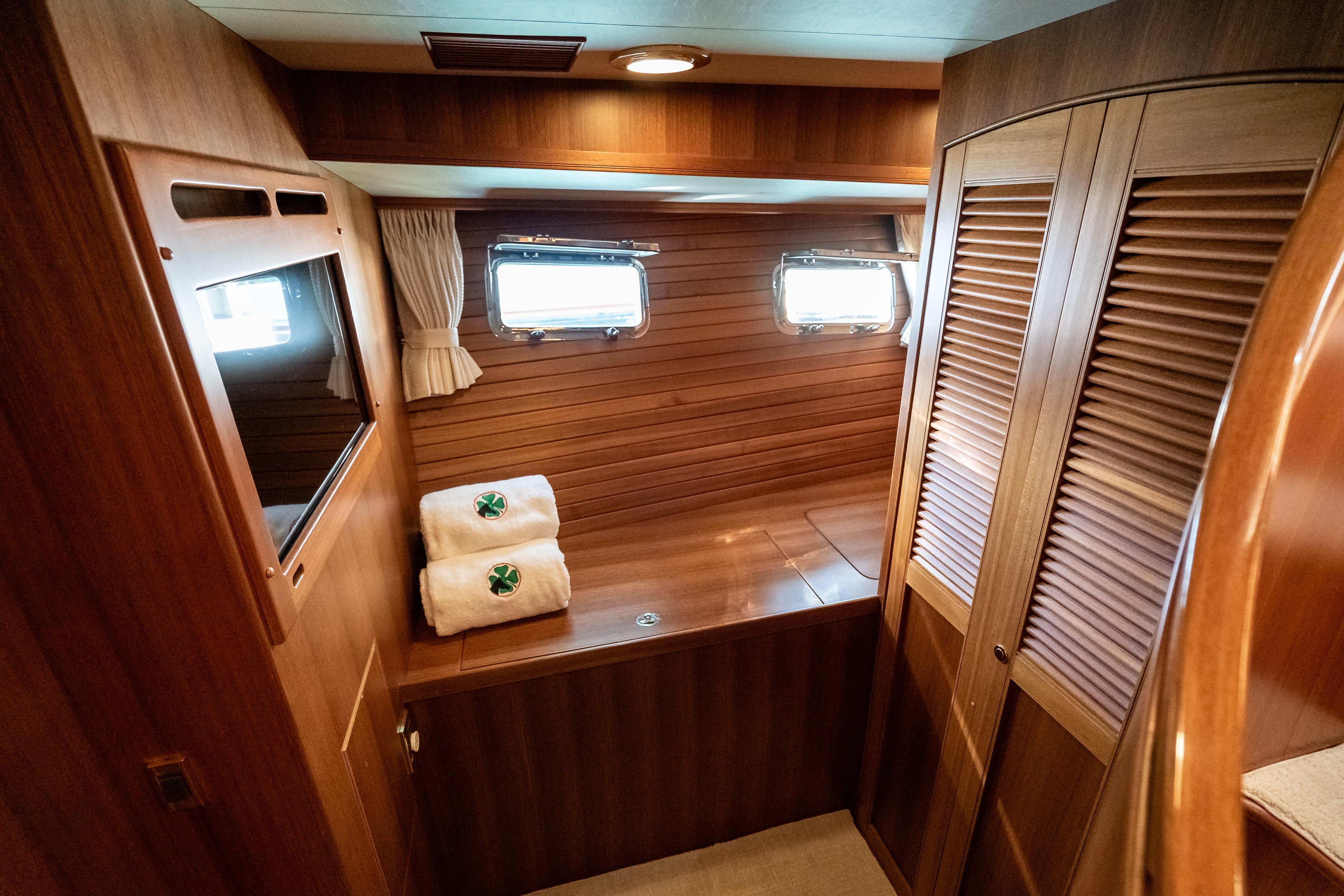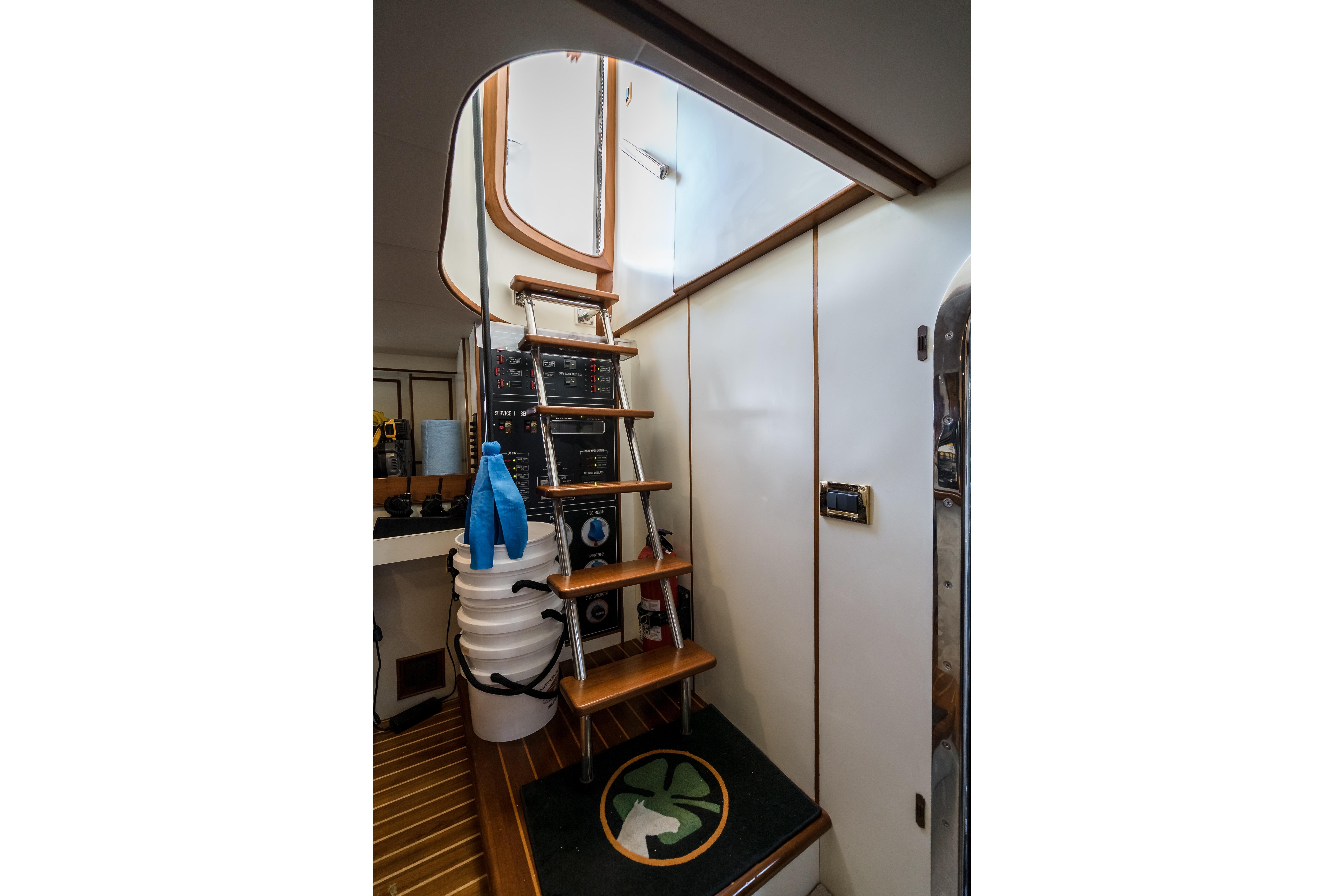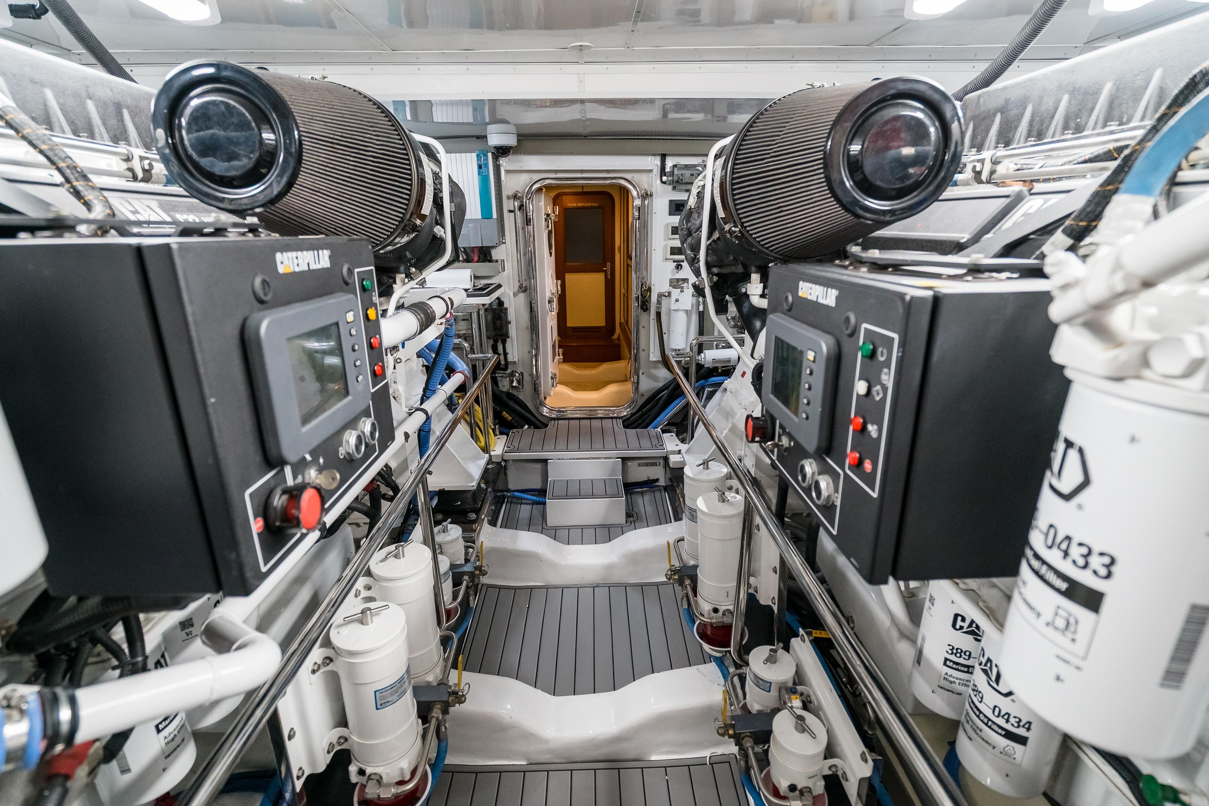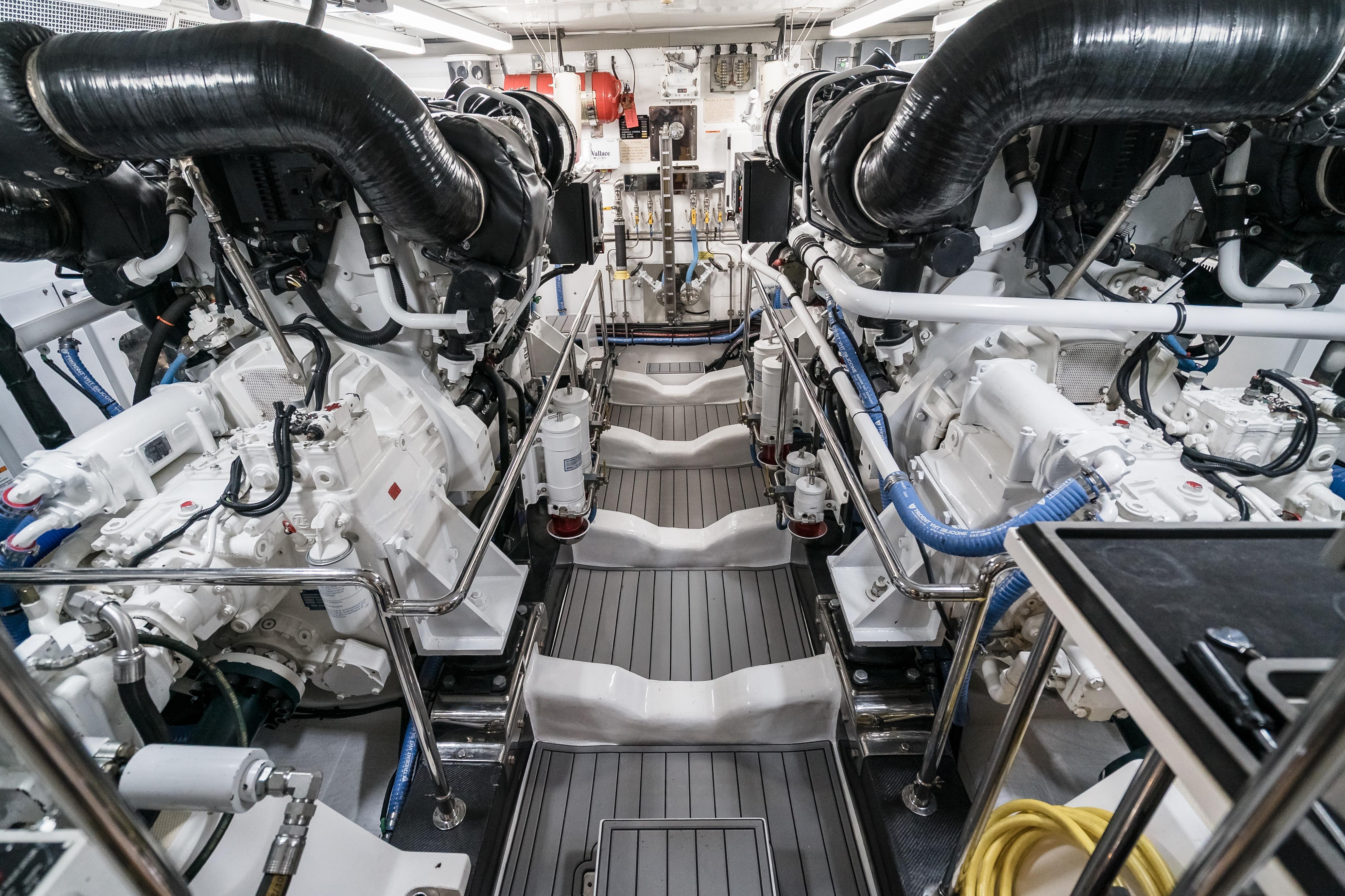 Forward through a watertight door is the large, well-laid-out engine room with 6'6" of headroom and space to get to all necessary equipment including the two generators.