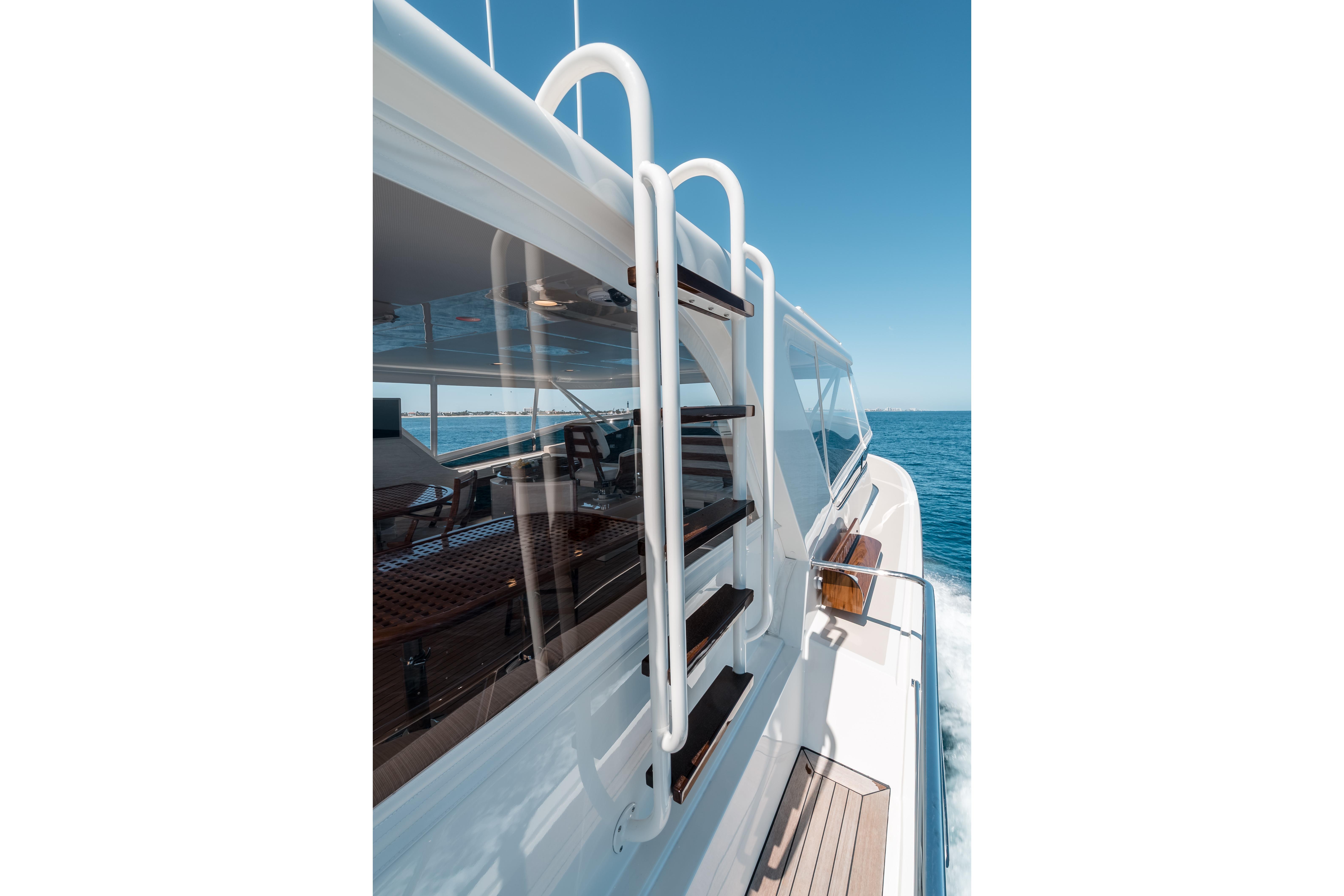 - Molded Teak Staircase to Flybridge with Sliding Hatch
