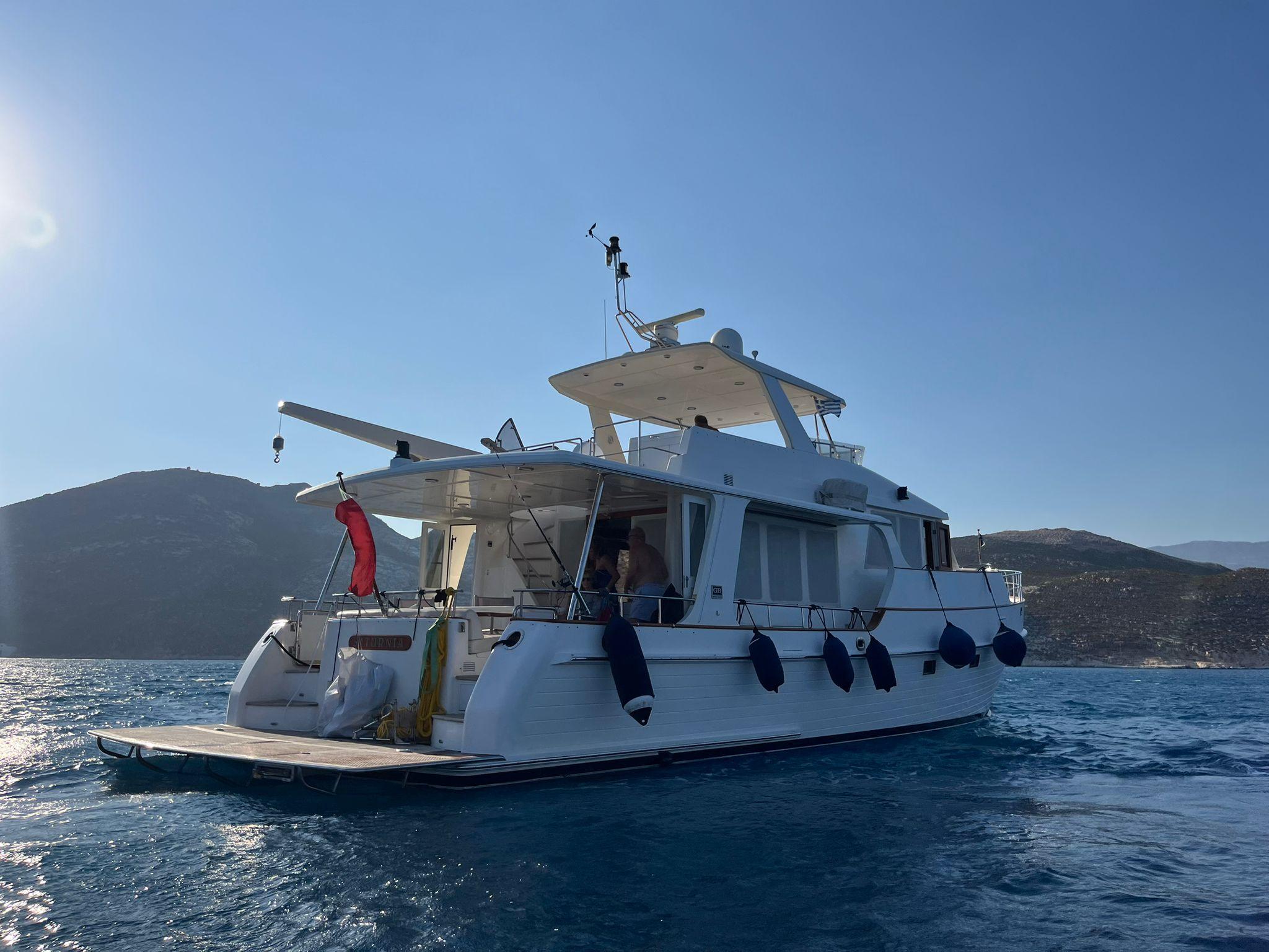 MANTAINANCE STATUS2023 Painting of external wood Creation of stern spoiler Replacement of battery switch on services davit and inverter Generator service and replacement of heat exchanger Service of watermaker and replacement of high pressure pump Naiad stabilizer overhaul and oil change Complete service of tender outboard motor Complete service of engines Installation of Glomex 5g wi fi antenna Wintering in the shipyard Full boat polishing
