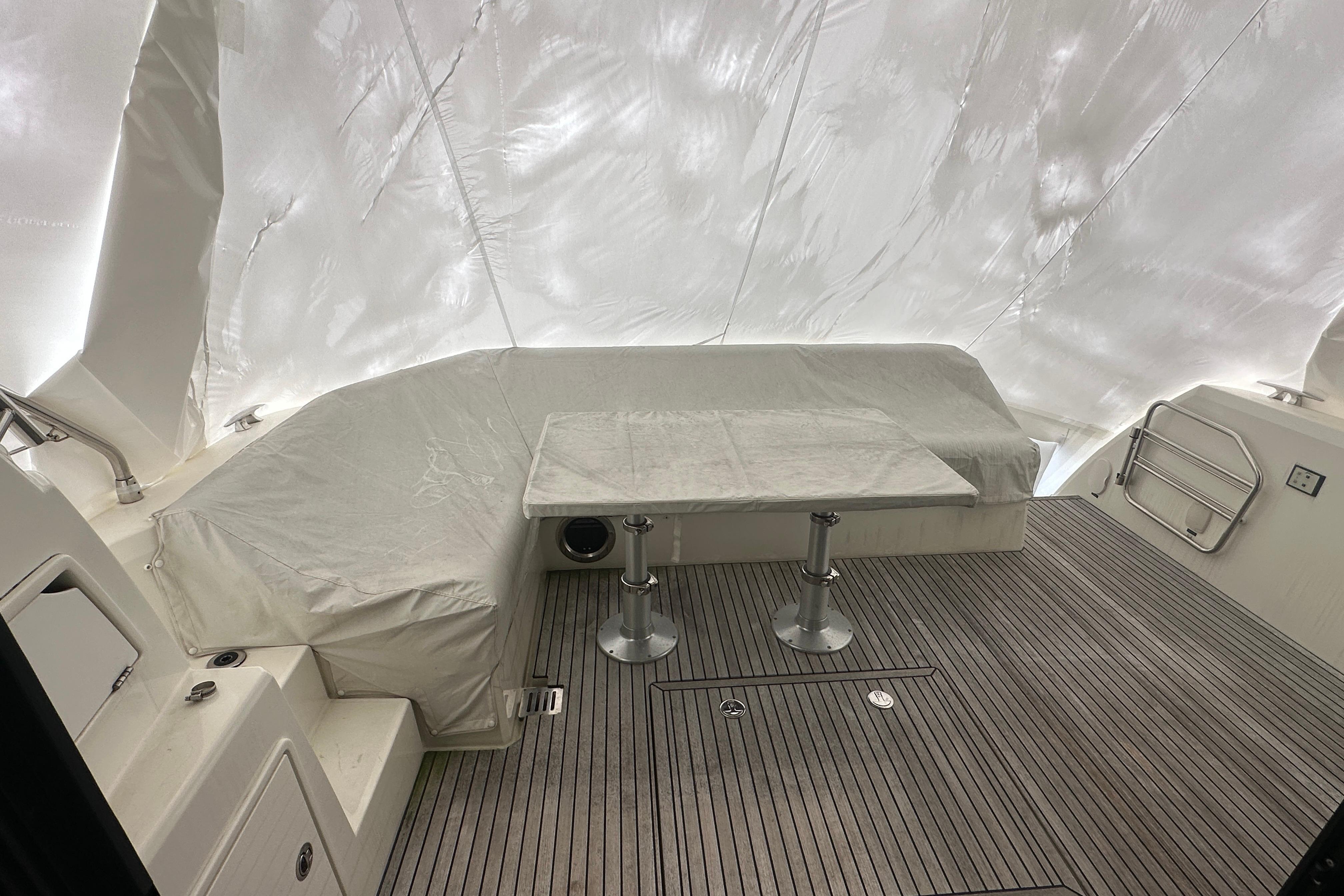 - Teak cockpit table coverts to sunlounge