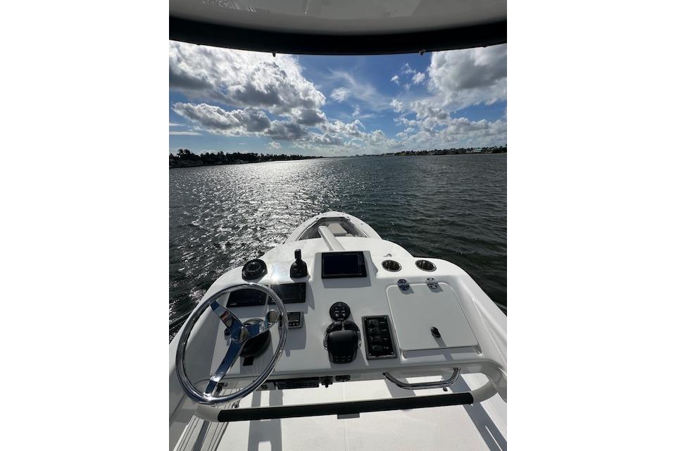 - Fiberglass hardtop with aluminum powder-coated frame, including LED lights, spreader lights, and rod holders