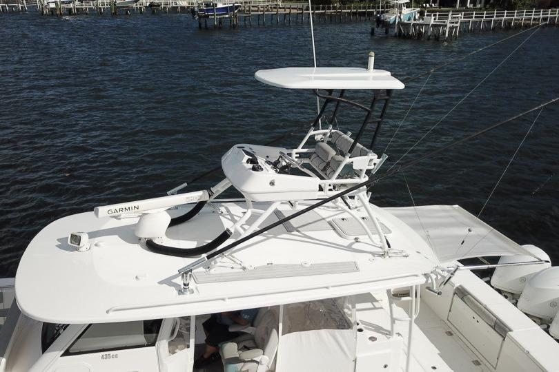 New to the large center console market is a 2016 Everglades 435 CC powered by quad Yamaha F350 engines with 1800 hours. The majority of the hours are logged at low RPM intervals while trolling. This boat is rigged with a Kohler 5KW generator which powers the SEA KEEPER 6 stabilizer along with the A/C system.