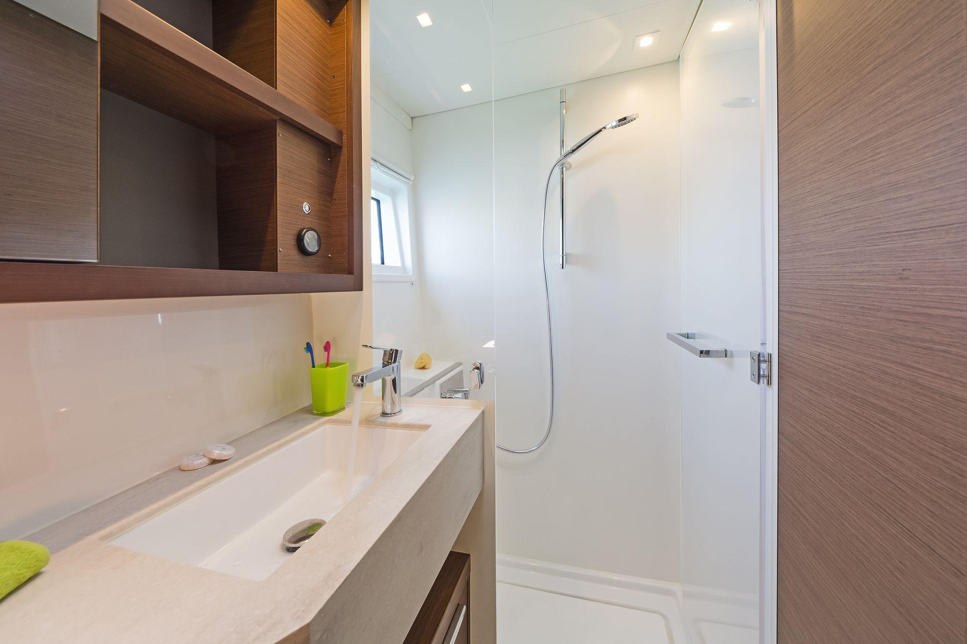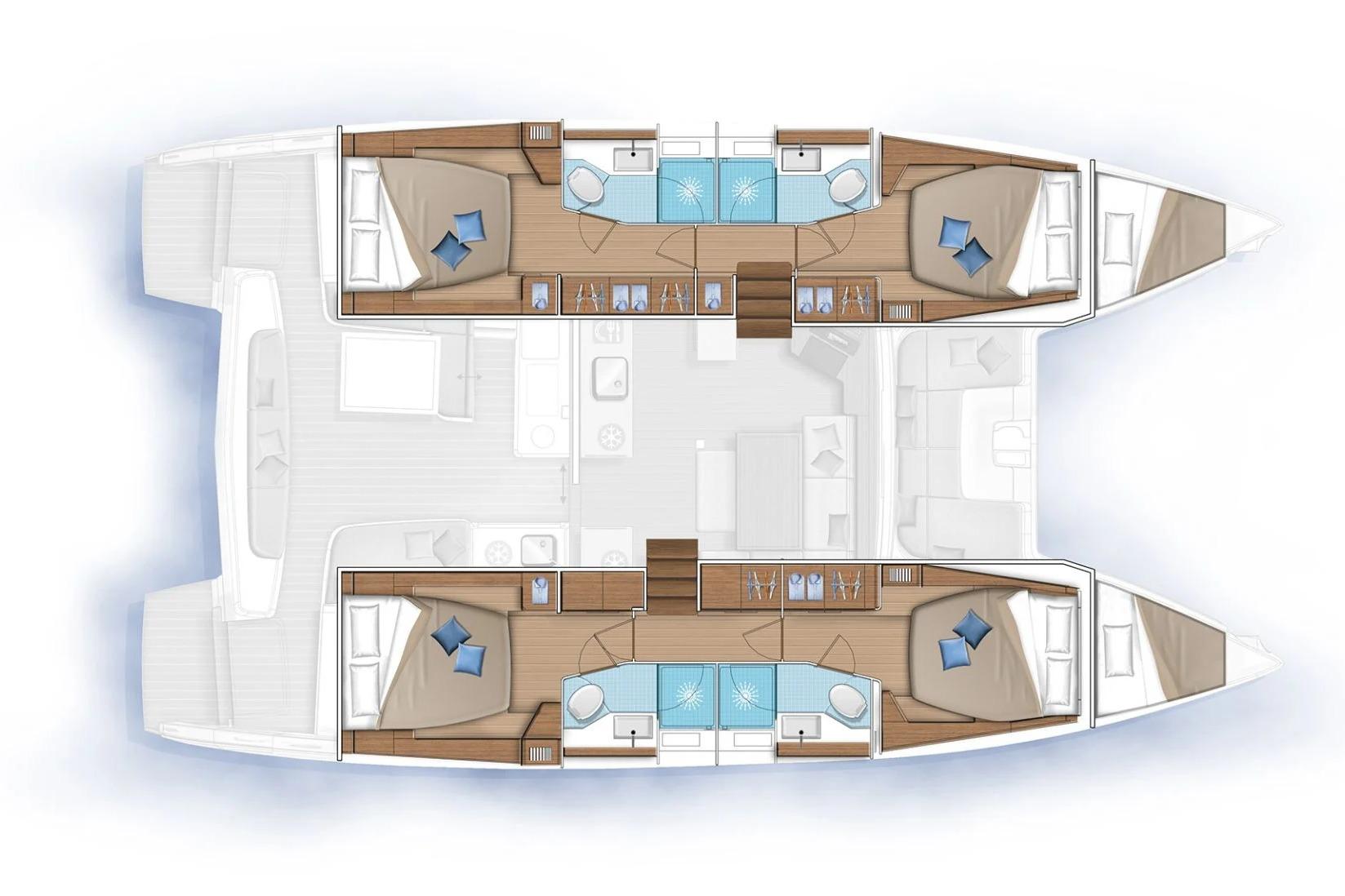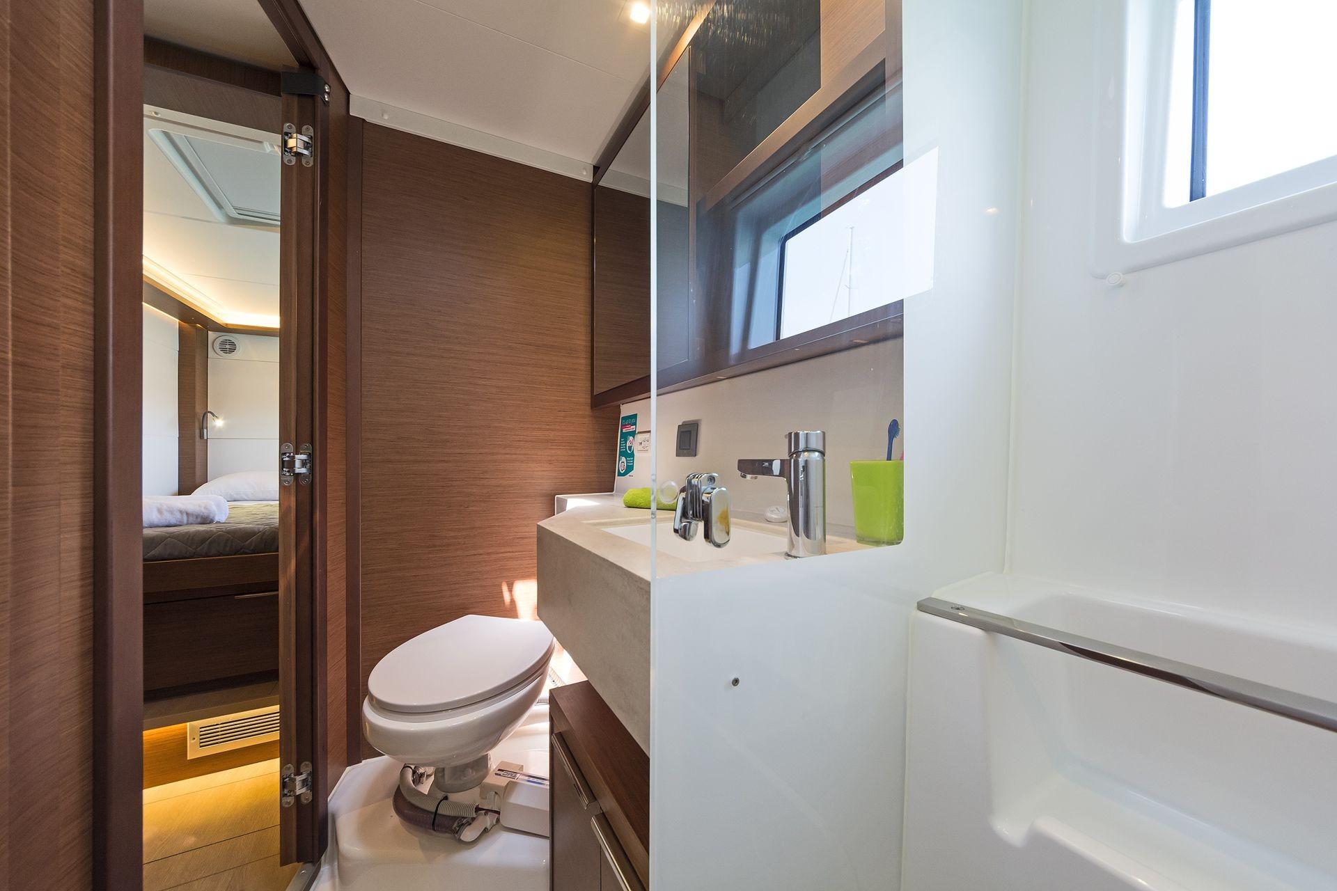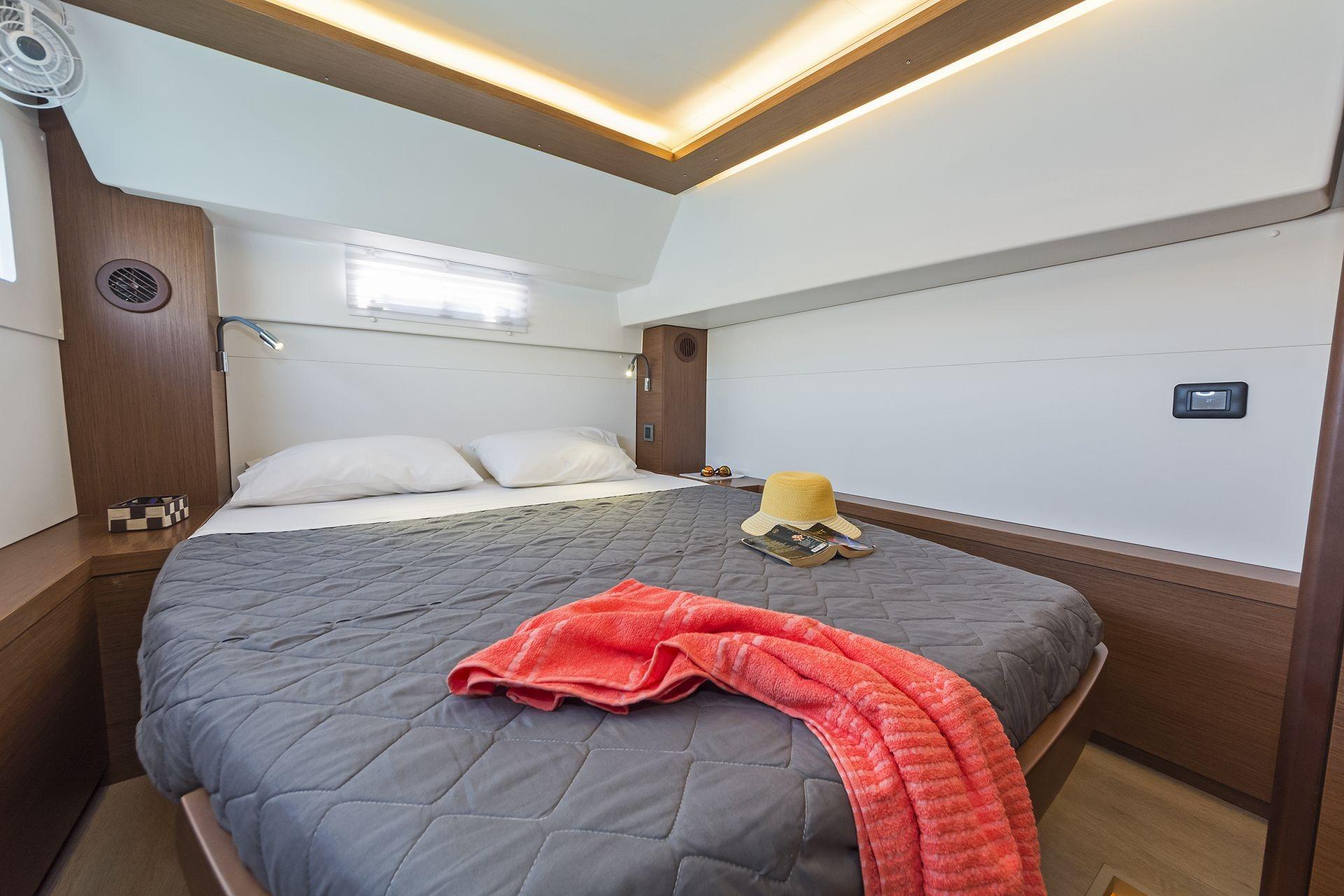 The feel at the helm is gentle, and you feel the fact that the sails have been brought aft because it tends to head up. It is an excellent feeling, not least because it is on the flybridge and the helm is centrally positioned. Visibility, both forwards and to the side, is always excellent.