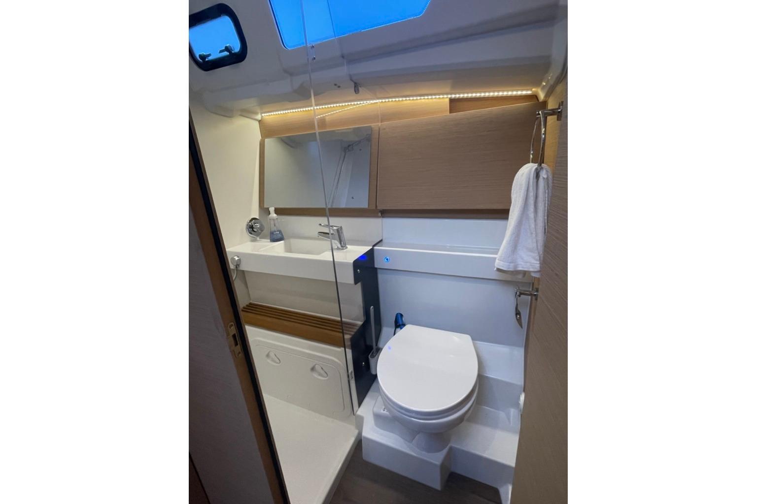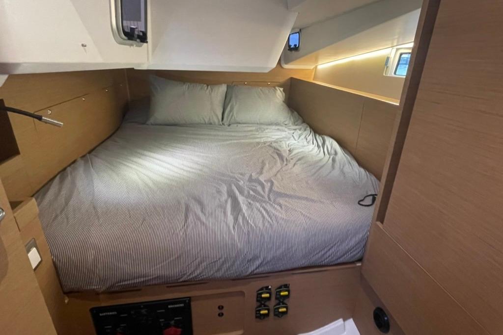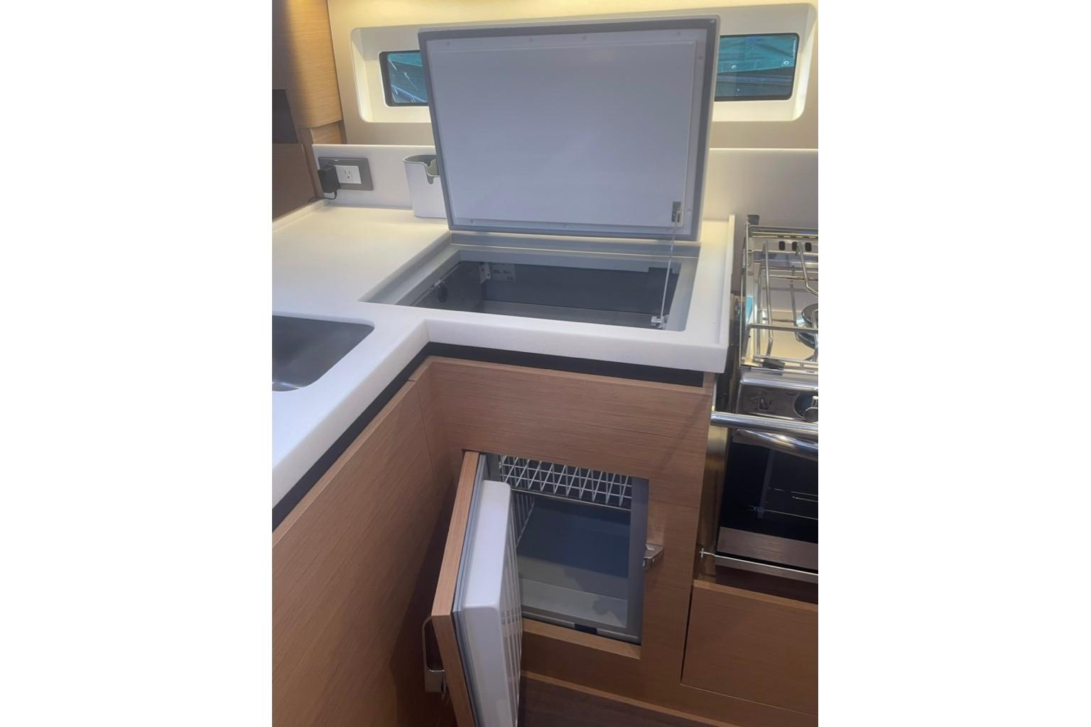 As with every Sun Odyssey, the cockpit ergonomics are second to none. Every sheet is cleverly led to the helm station, where the boat can be easily single or double handed. The massive cockpit lounge is framed by the iconic walk around decks, which make movement around the boat easier than ever before. However, the game changer comes when the convertible coamings, the unfolding seat backs, are set up as beds. The entire aft eight feet of the boat transform into a cushioned sun bathing deck.