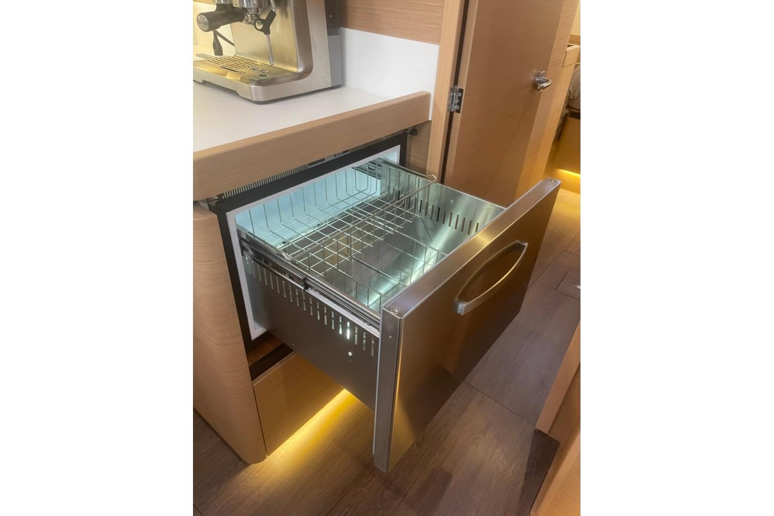 The open concept interior is bathed in light, as the main salon features many rows of windows and hatches. The central U-shaped galley is optimally placed for comfort while under way, as well as serving meals in the salon. In the 490, the nav station is particularly emphasized, as there is an aft facing bench added to it, elevating this feature into a coffee nook or home office.