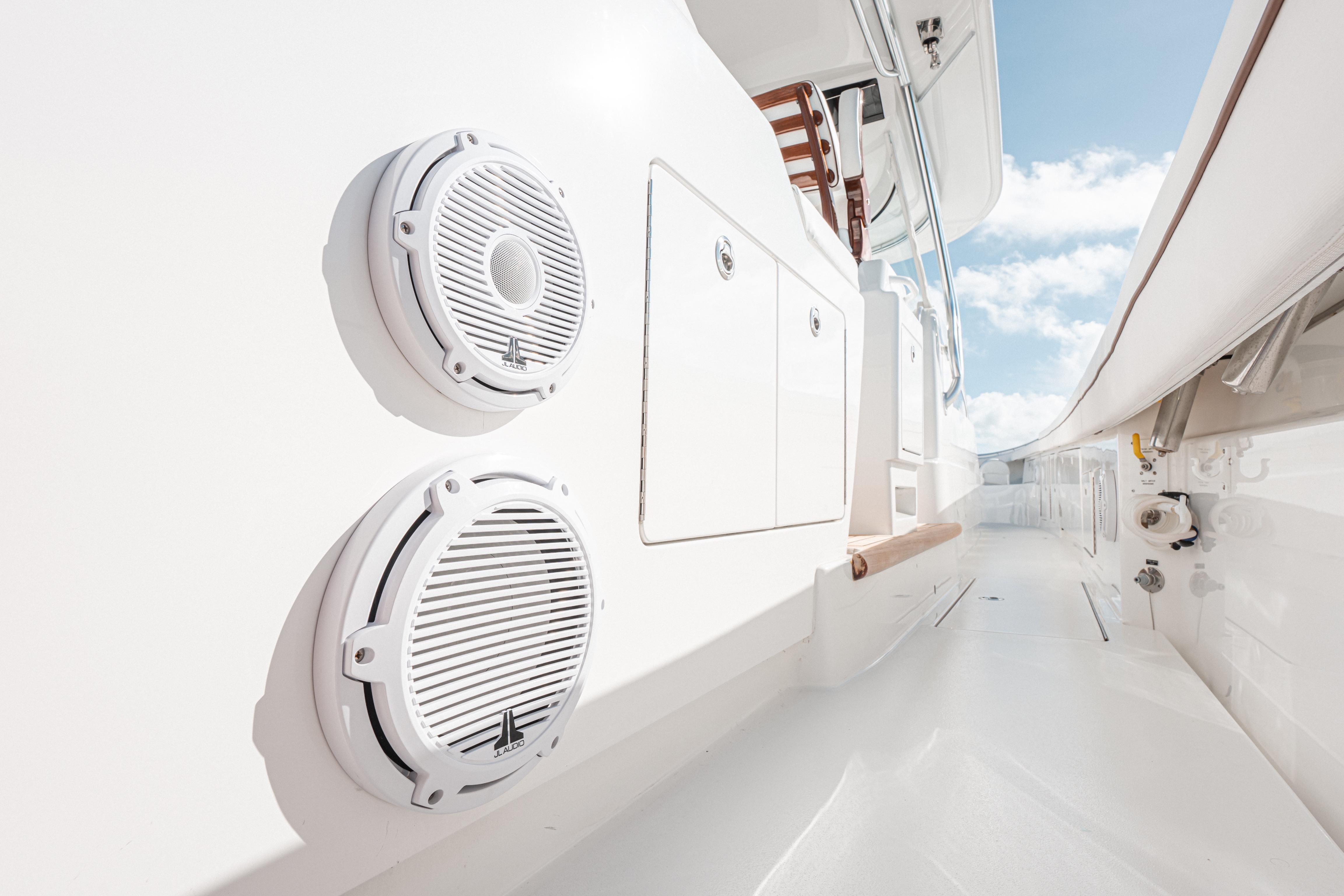 Deck- Twin insulated 110 gallon fish boxes to port and starboard of Seakeeper in cockpit