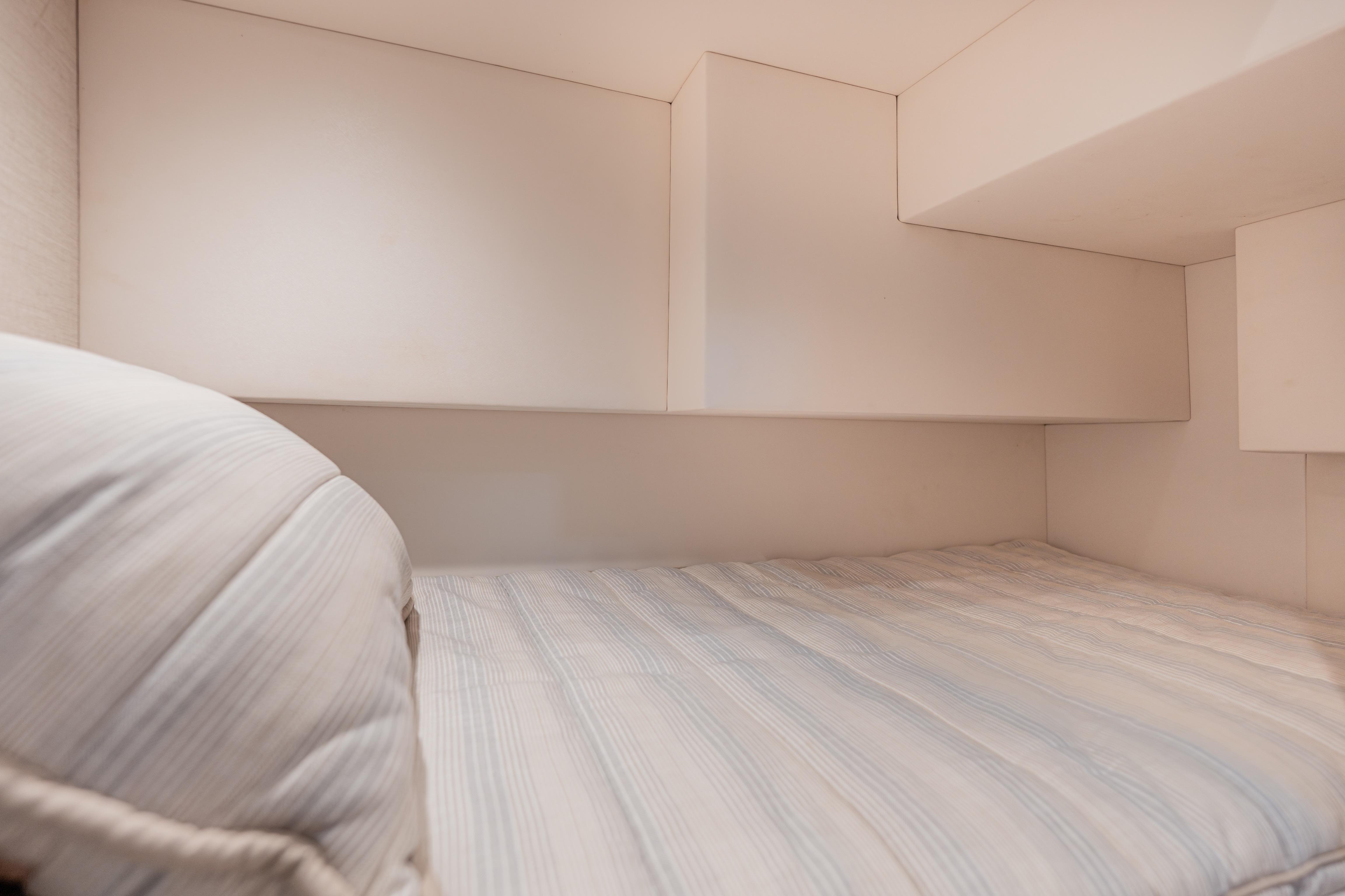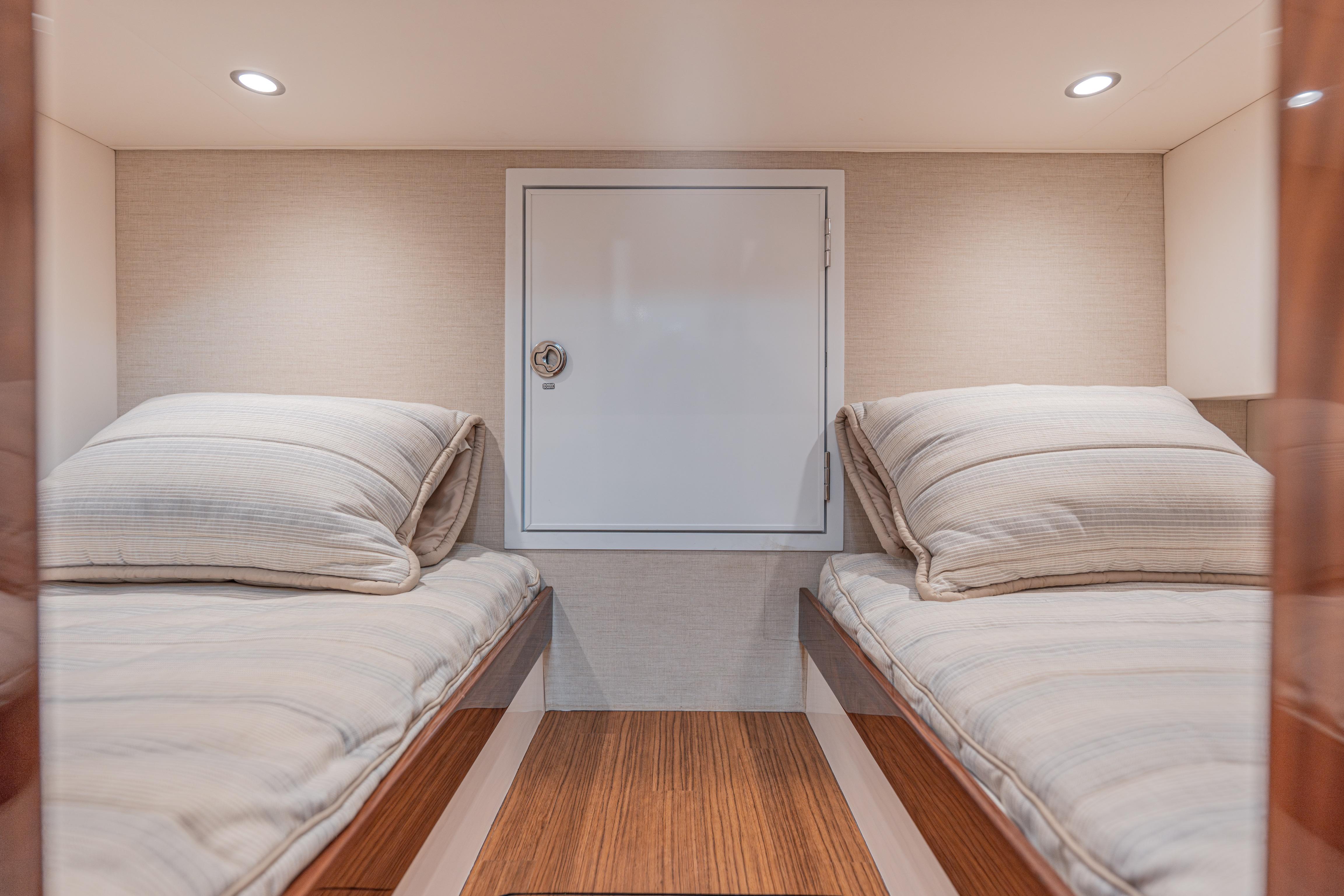 - Additional sleeping area with two bunks aft and access to dedicated machinery space