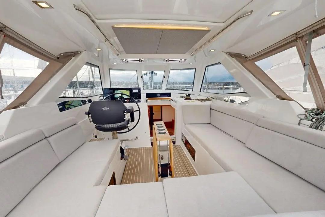 Le guindeau électrique facilite les manœuvres d’ancrage, tandis que l’hélice repliable améliore les performances et l’efficacité sous voiles.