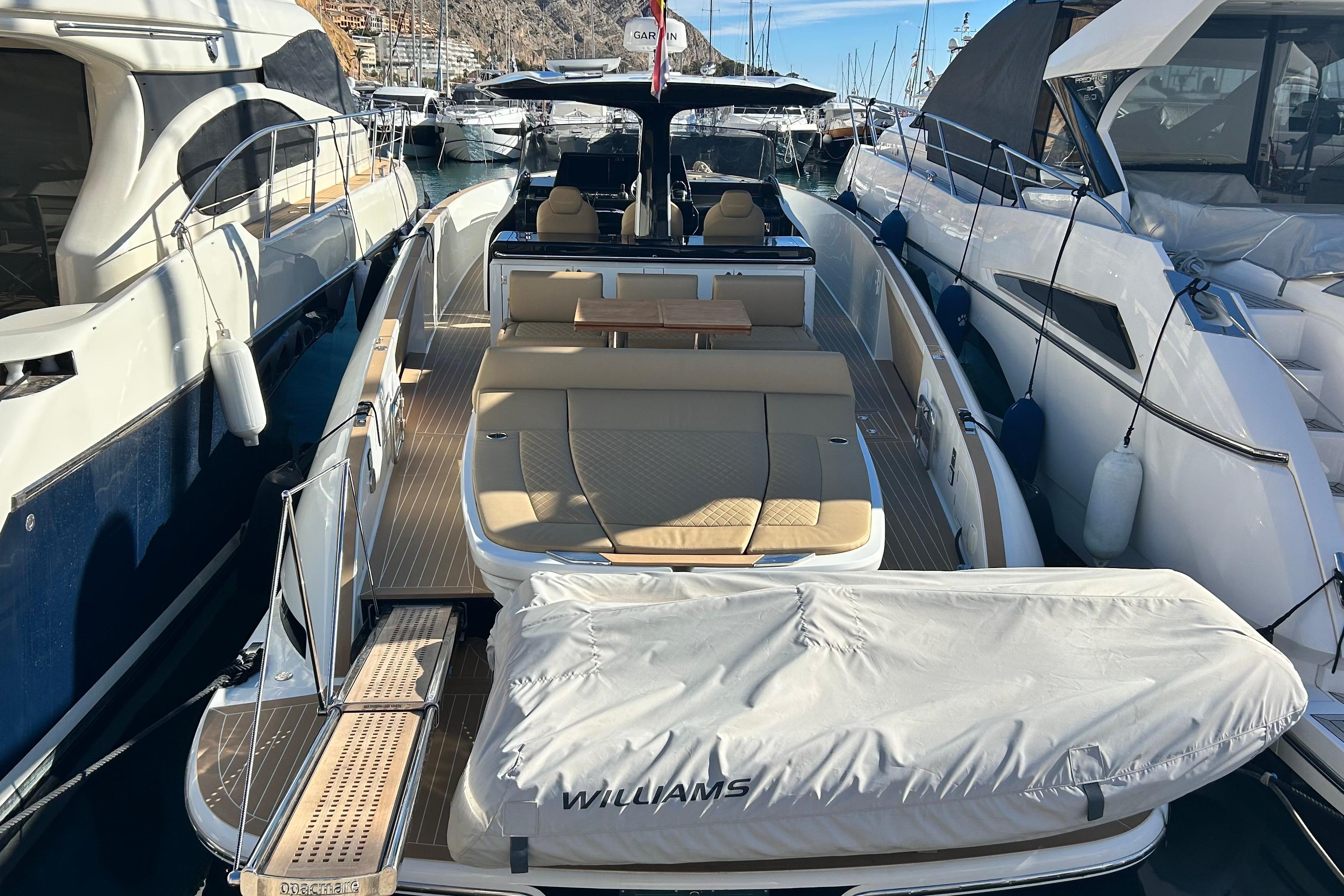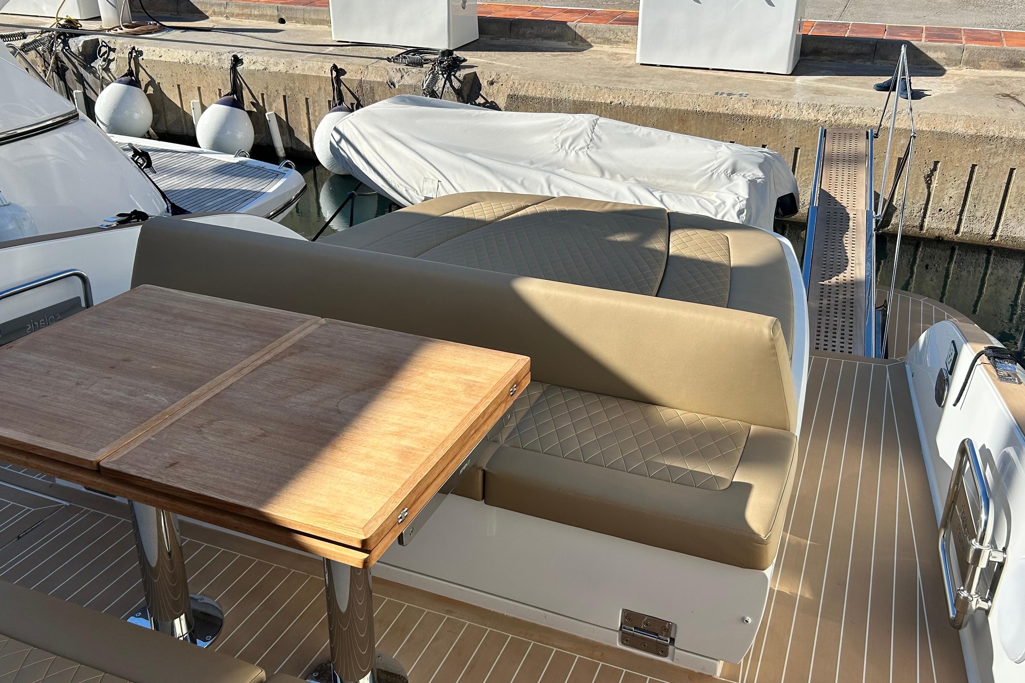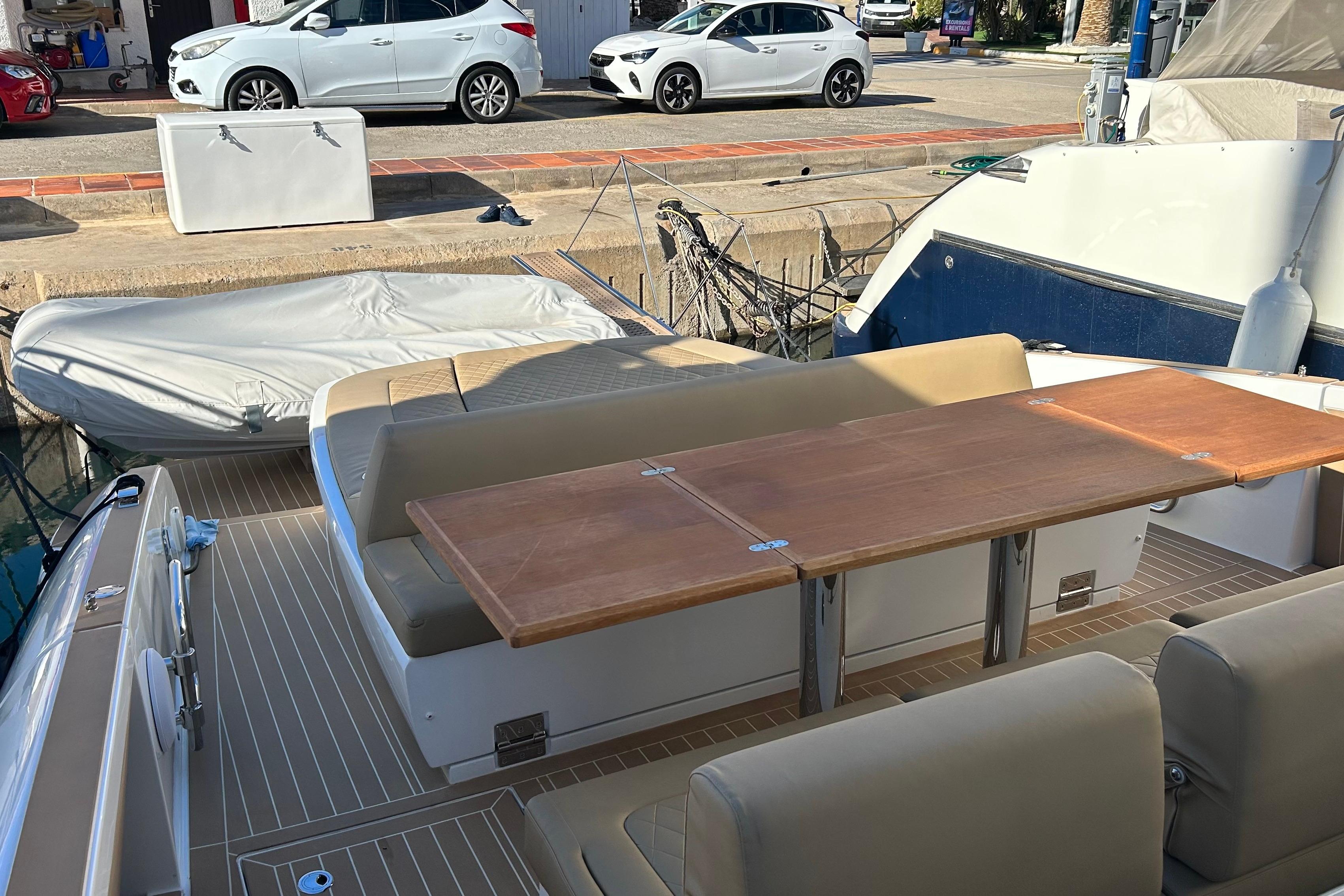 Deze nieuwe boot heeft een walkaround met een modern en elegant ontwerp, met opklapbare zijbalkons voor lunch of diner op een enorm privéterras met uitzicht op zee. Er is geen tekort aan ruime zonneweiden en een handige wet-bar in de schaduw van de T-Top. Ontdek de ongelooflijke Solaris Power 44 Open boot, verkrijgbaar bij Náutica Mengual, officieel distributeur van Solaris Power in Spanje.
