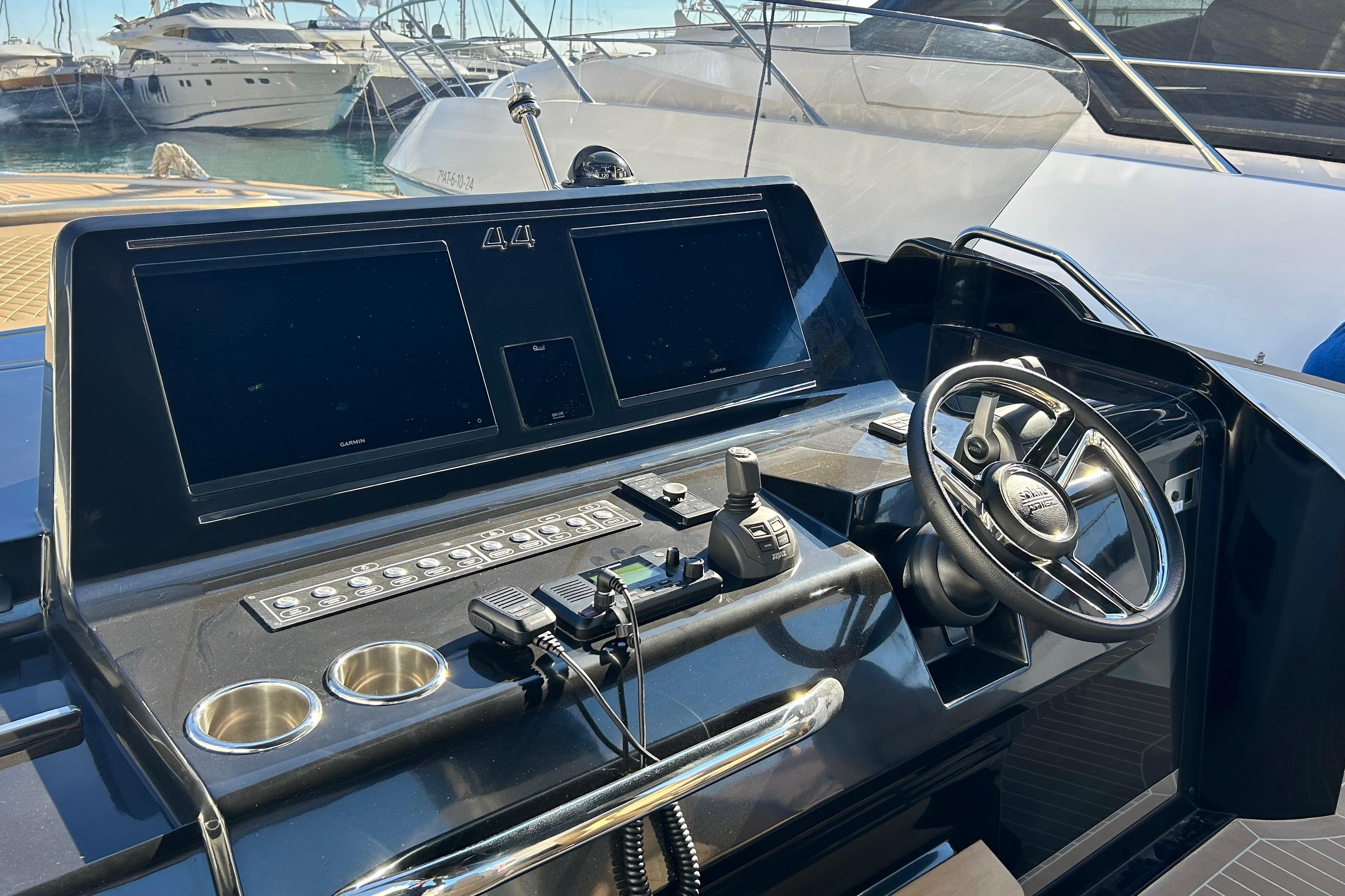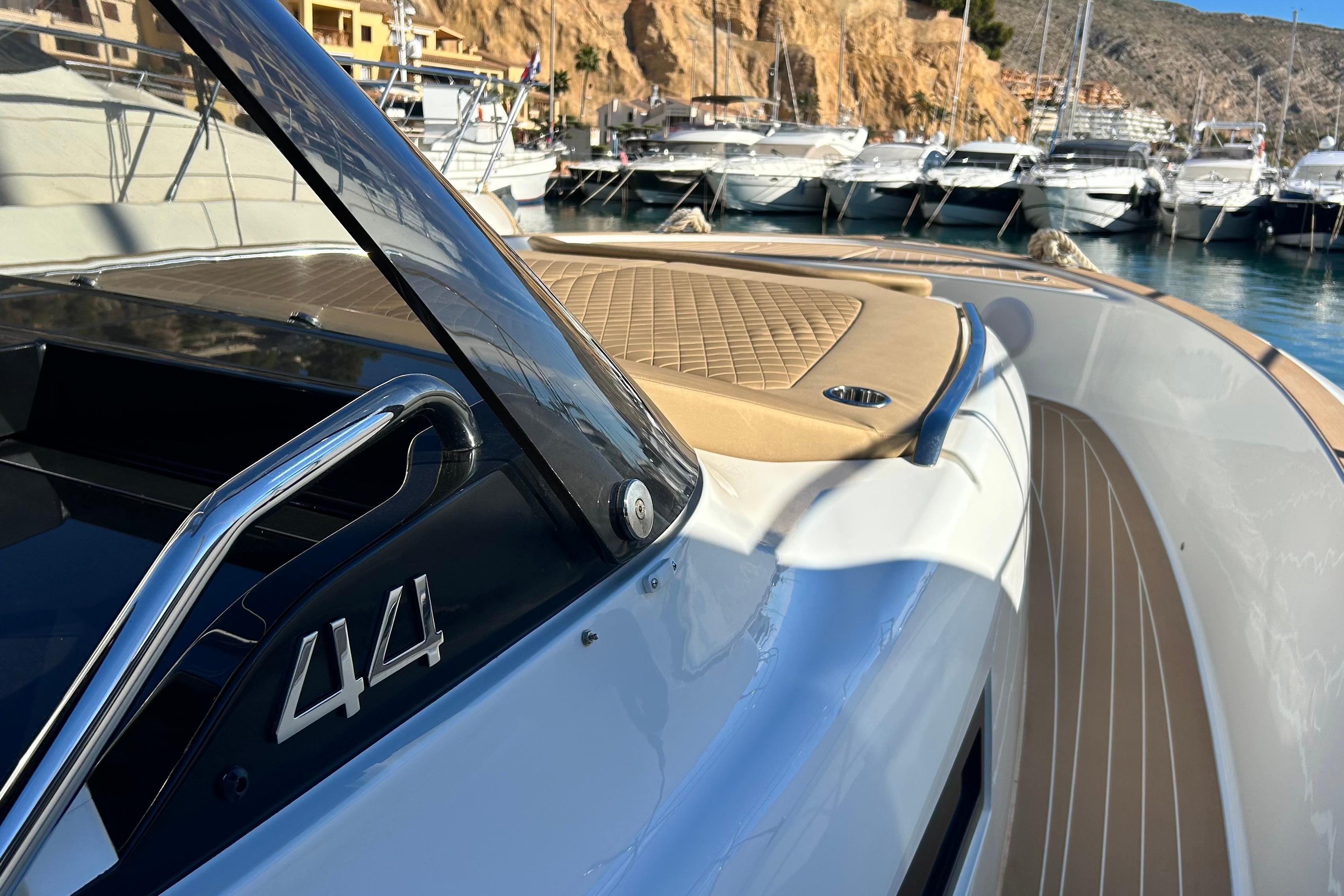Dieses neue Boot hat ein modernes und elegantes Design mit klappbaren Seitenbalkonen für das Mittag- oder Abendessen auf einer riesigen privaten Terrasse mit Blick aufs Meer. An geräumigen Liegeflächen und einer praktischen Wet-Bar im Schatten des T-Tops mangelt es nicht. Entdecken Sie die unglaubliche Solaris Power 44 Open, erhältlich bei Náutica Mengual, dem offiziellen Vertriebspartner von Solaris Power in Spanien.